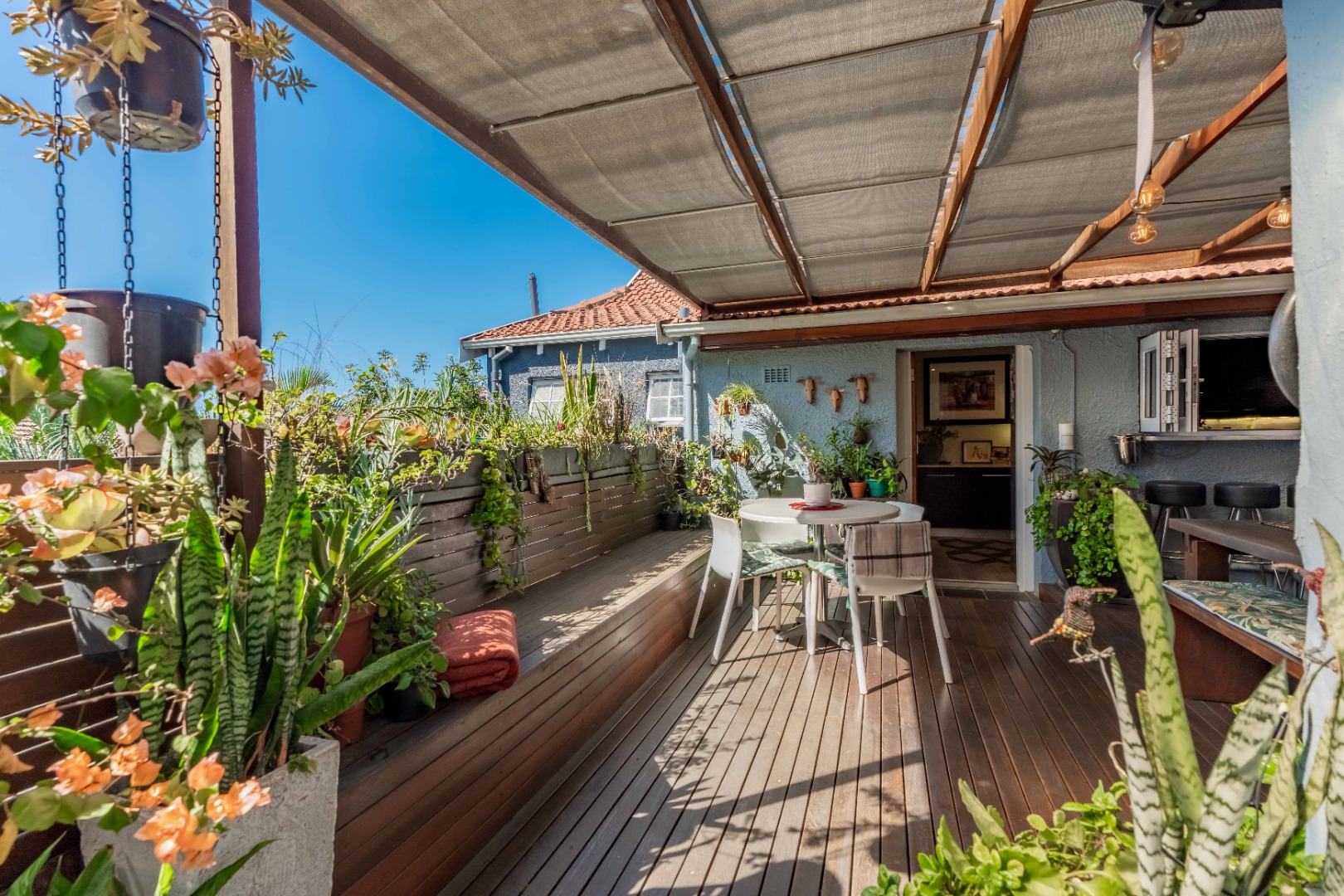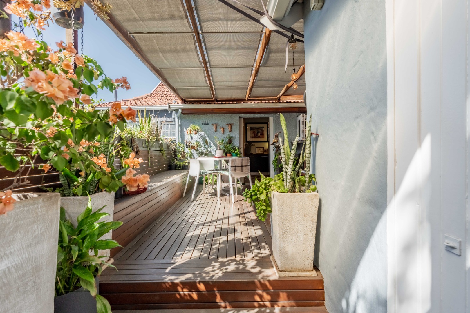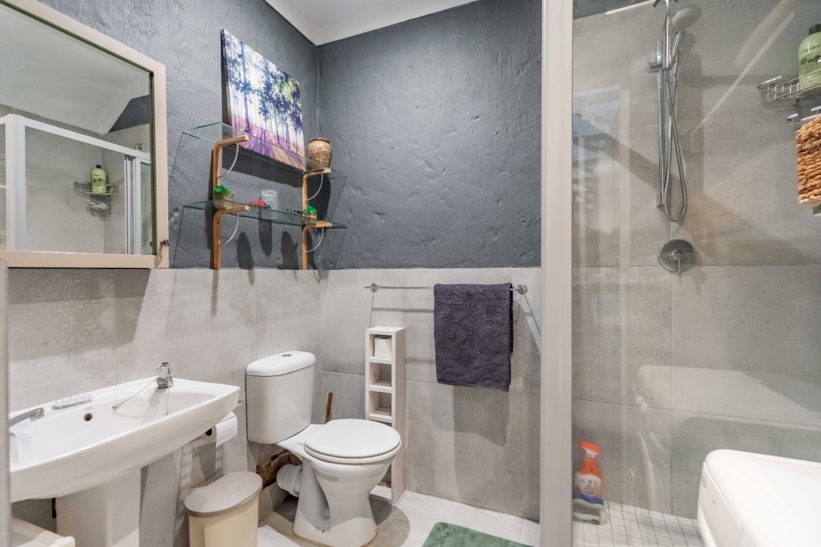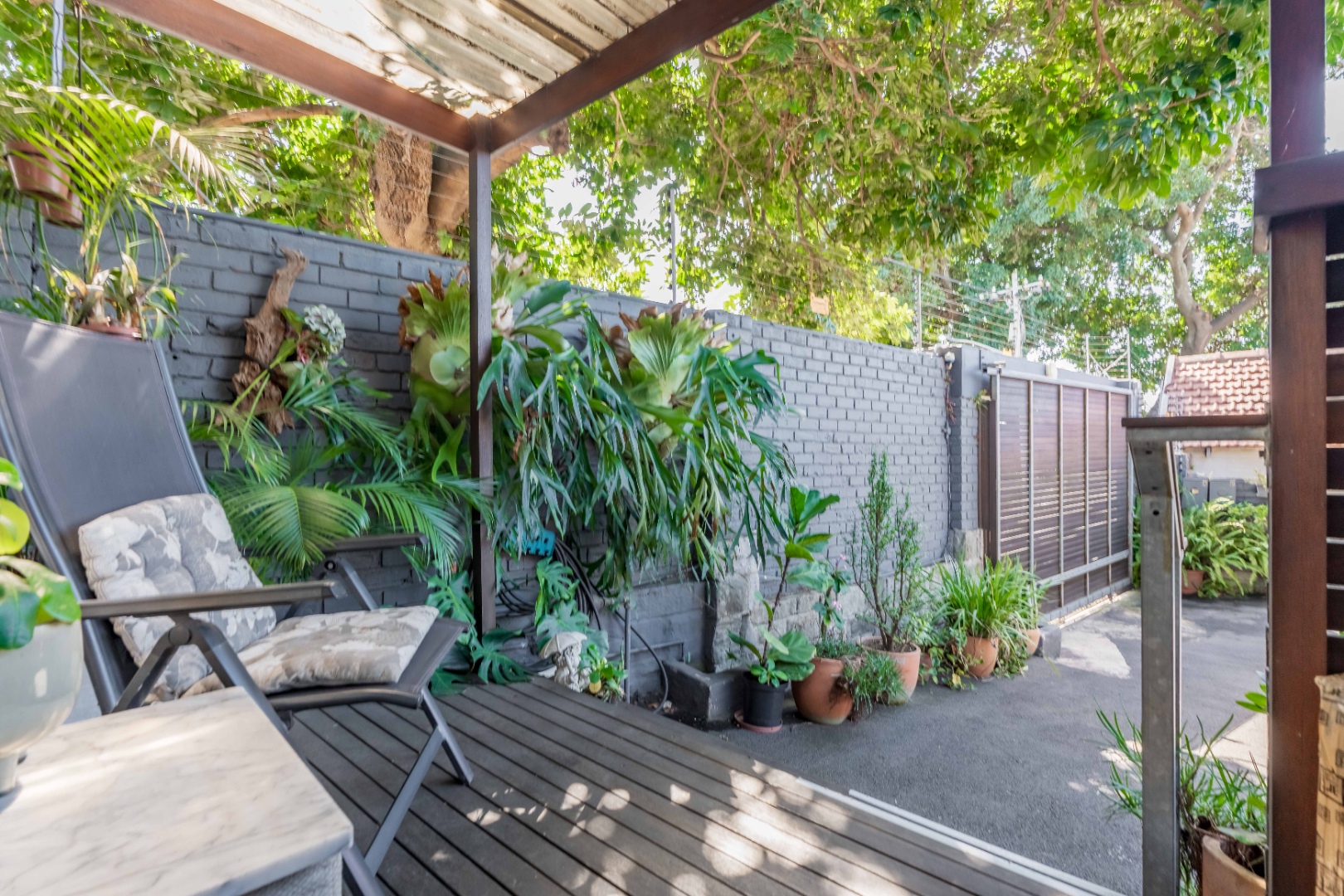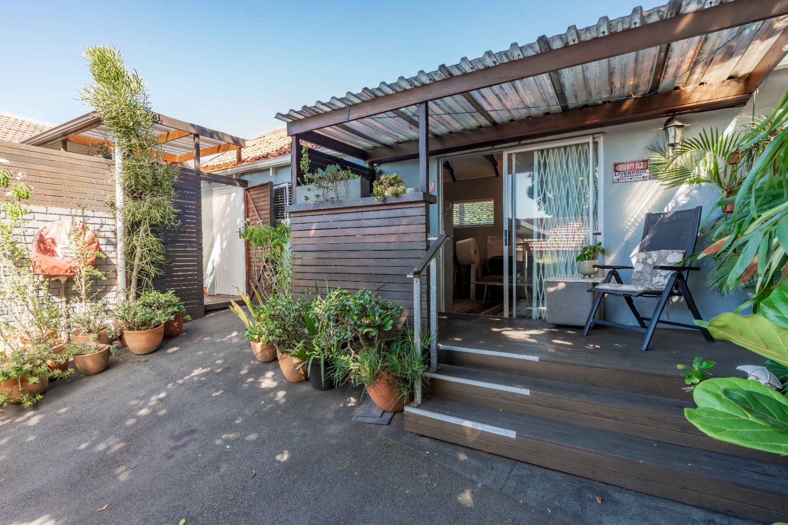 The main residence features two and a half bedrooms and two bathrooms, complemented by a self-contained granny flat that serves as the third bedroom. The granny flat is open plan in design and includes its own private balcony, offering flexibility for extended family or guests.