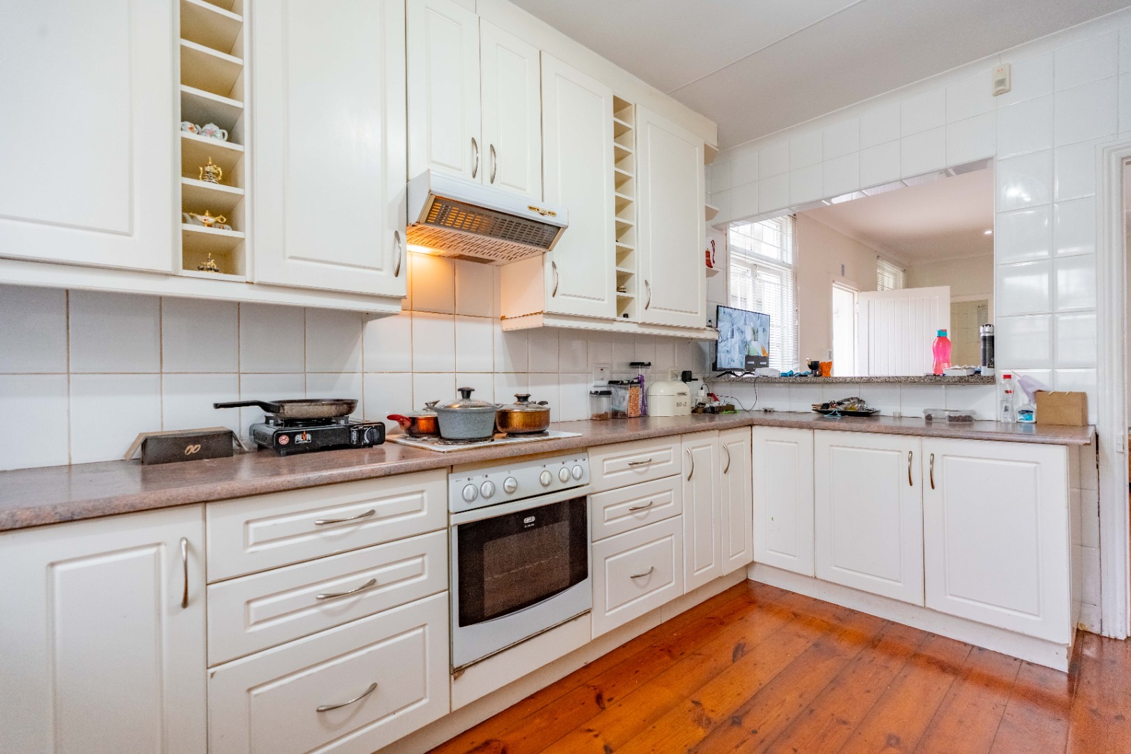 The single-story home features double-volume ceilings throughout, creating an open and airy feel. The spacious, fully fitted kitchen flows into the dining room and seperate lounge area. The main bedroom en suite comes with ample cupboard space, while the other three bedrooms are generously sized. Beautiful wooden flooring throughout adds warmth and elegance to the home.