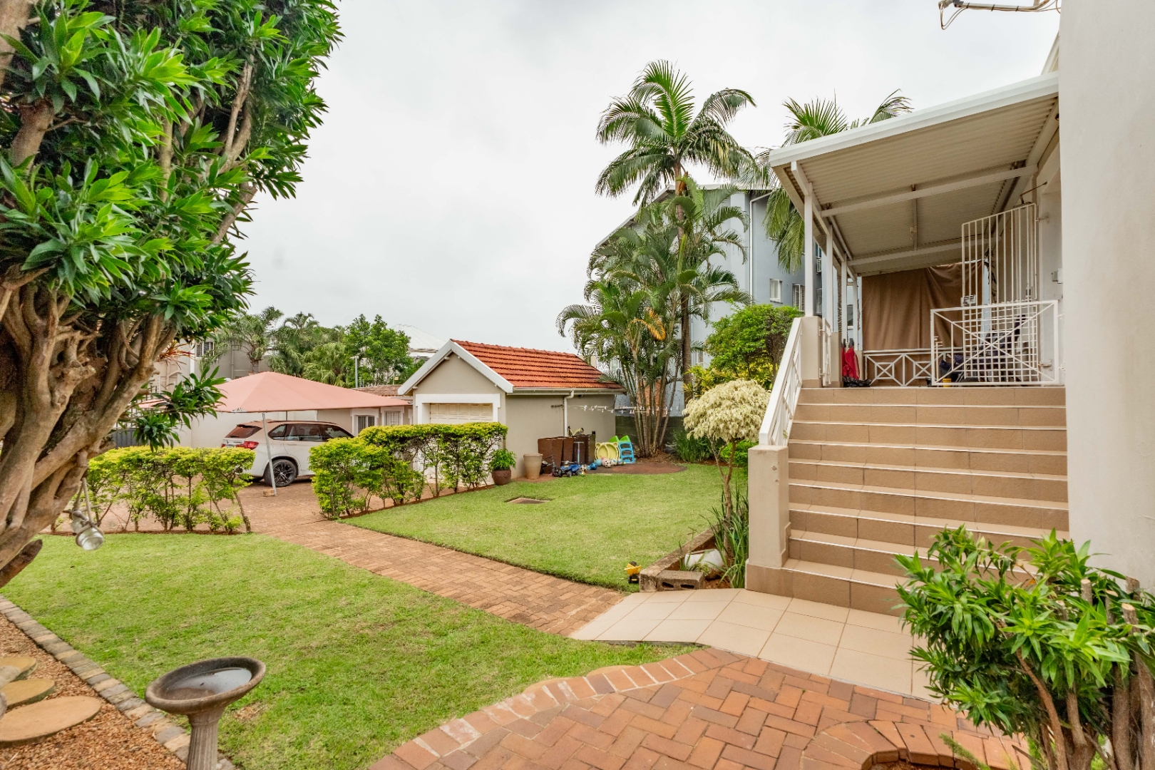The property also includes a self-contained granny cottage, perfect for guests or additional rental income. Secure drive-in access leads to parking for up to seven cars, and the manicured garden provides a peaceful outdoor space.