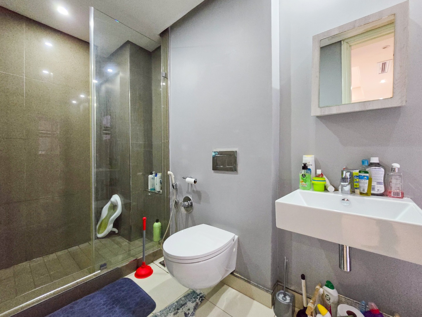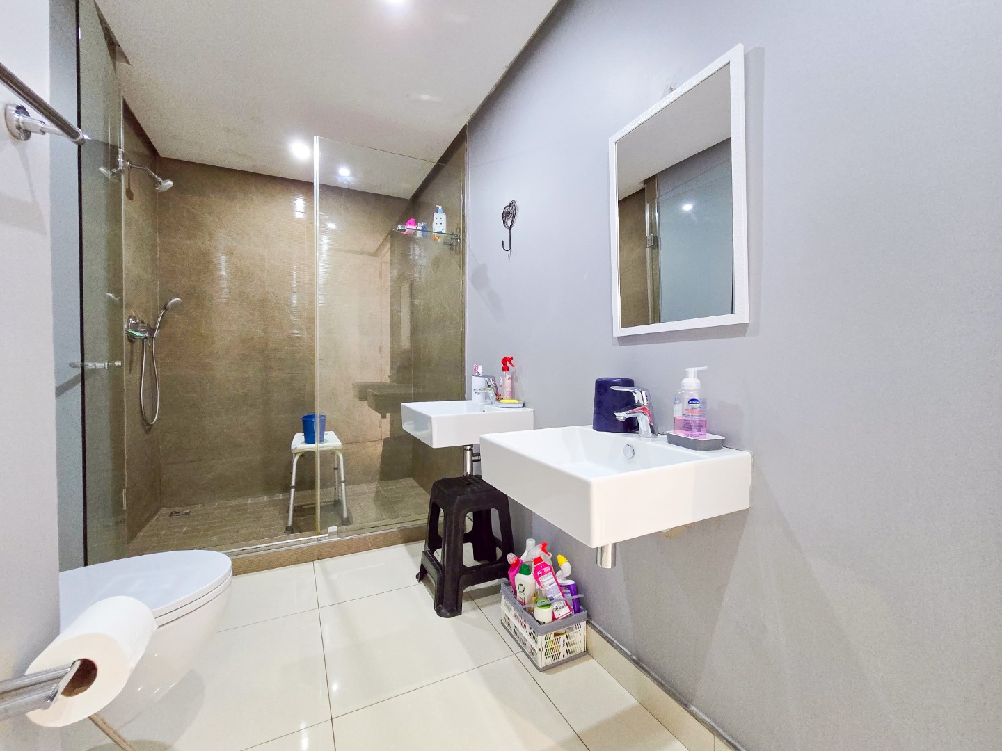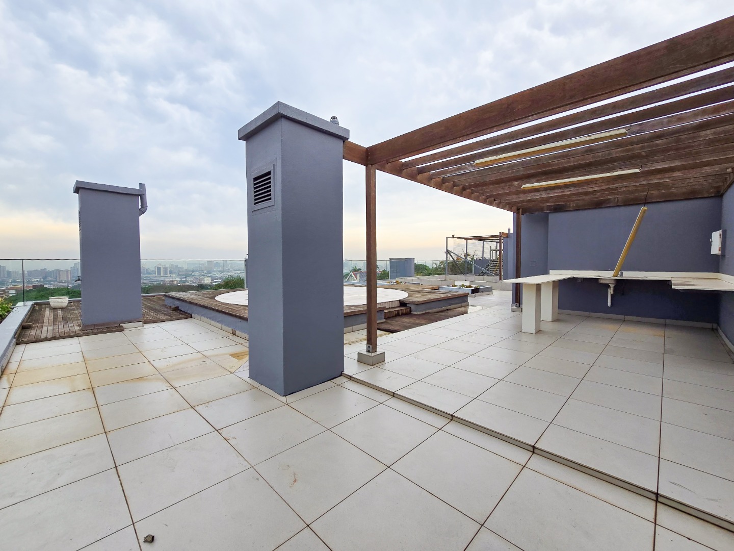 Residents enjoy access to a communal pool area and a rooftop level with breathtaking sea and city views. There's also a secure, net-enclosed jungle gym area for kids.