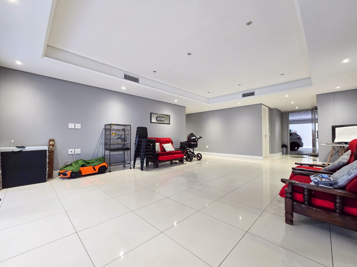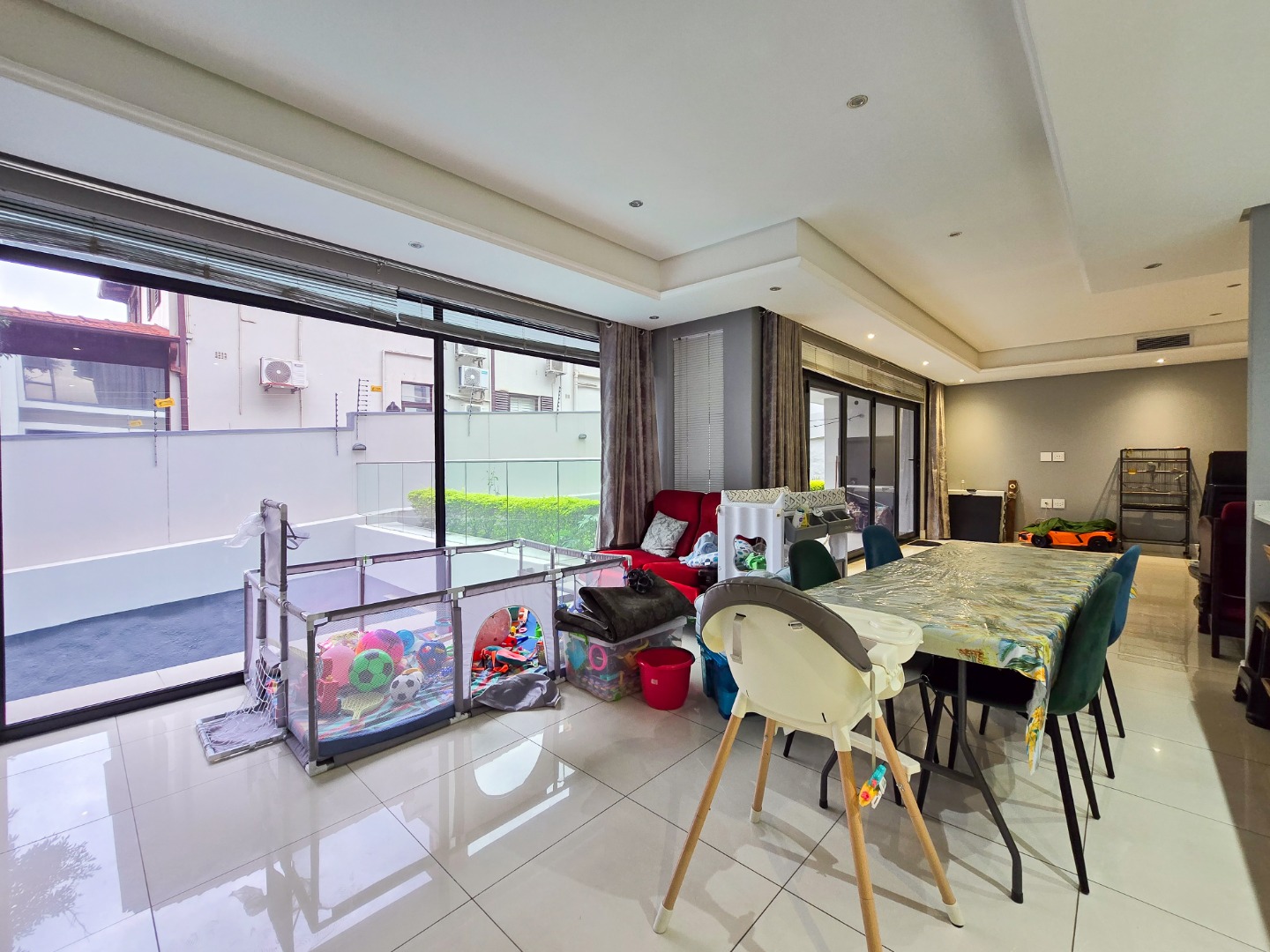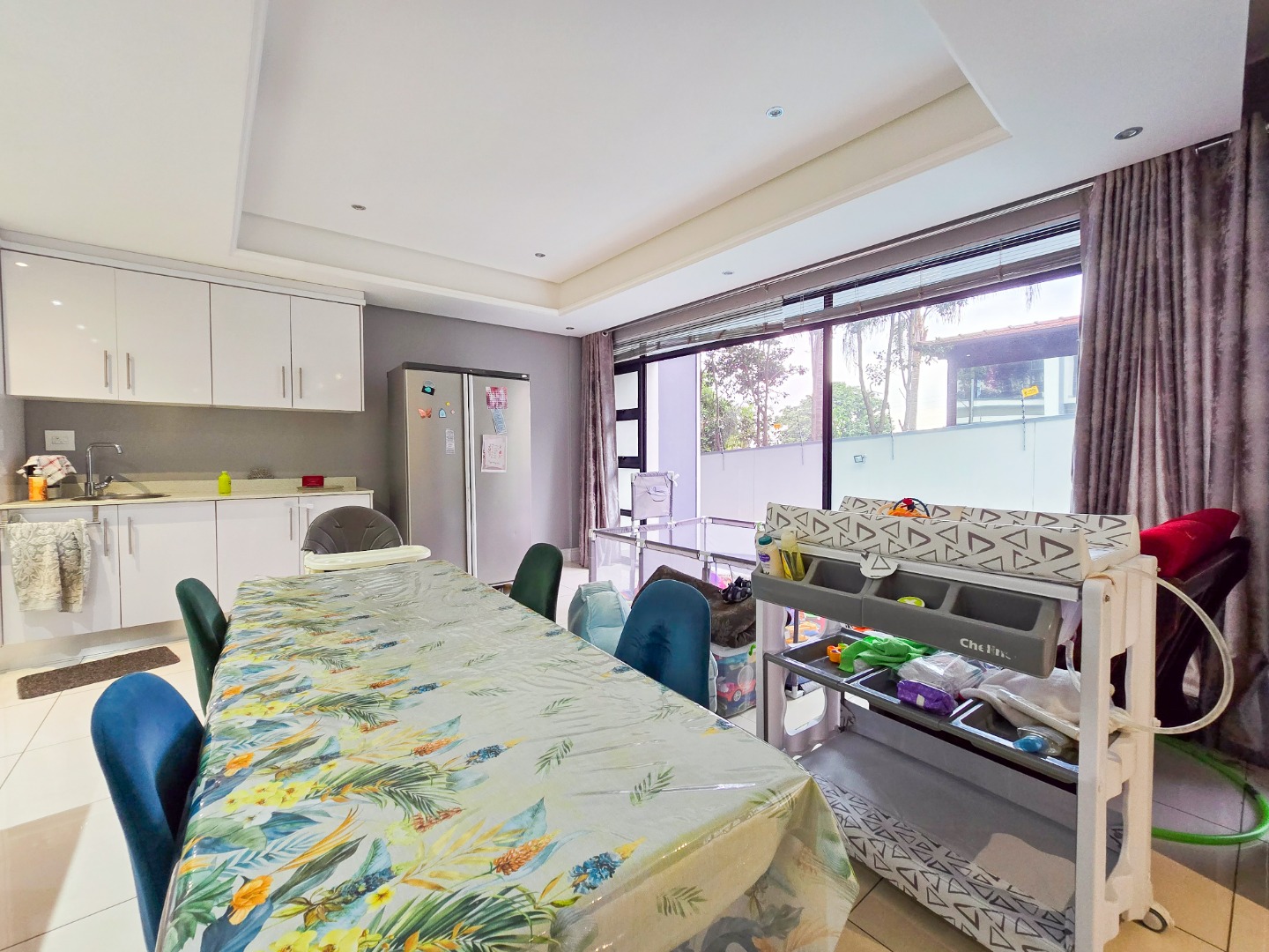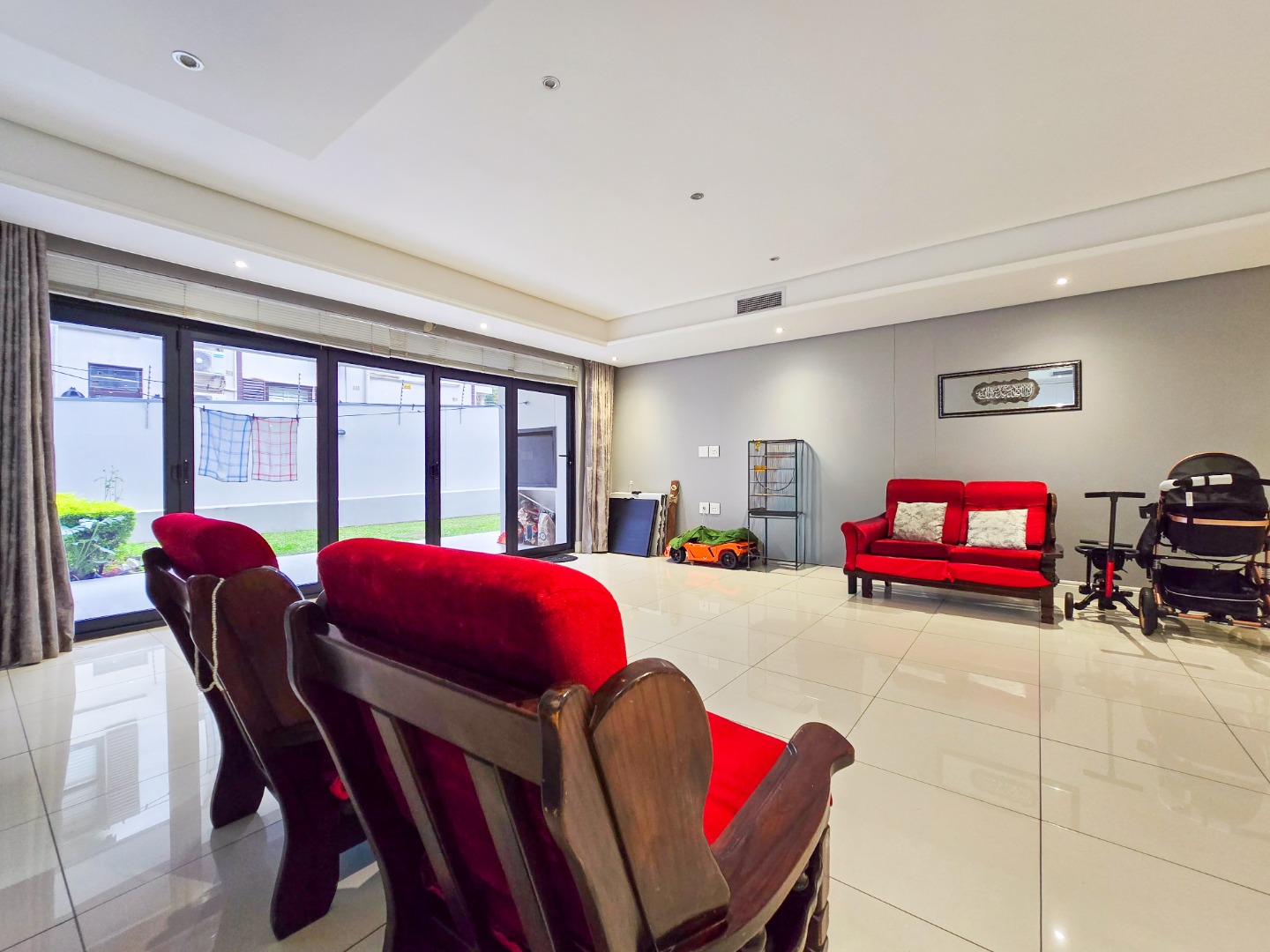 Step inside and be impressed by the sleek, contemporary finishes throughout. The apartment offers fully tiled floors and a guest loo upon entry. A passage leads to a spacious lounge area filled with natural light, featuring stackable doors that open onto a private garden area perfect for entertaining family and friends or for kids to play in.