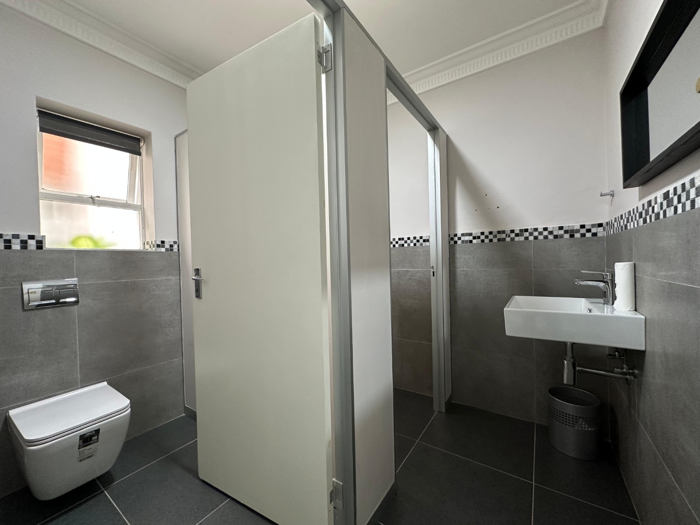 The office includes a fully upgraded kitchen, designed to meet the needs of your team, while the restroom facilities are neatly divided into male and female sections for added convenience.
