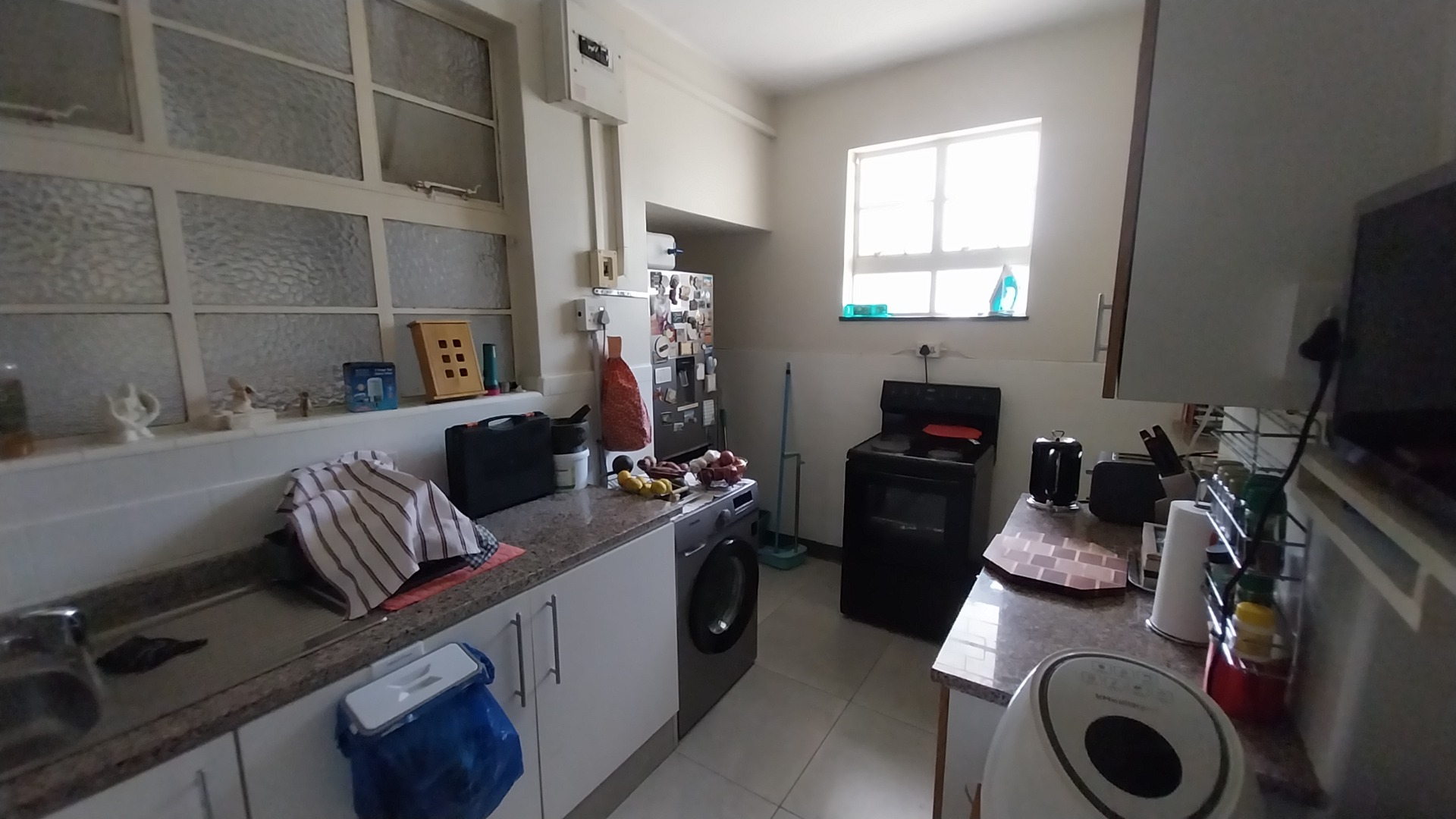 - Fully-fitted kitchen with sleek granite countertops, plumbed for a washing machine, and perfect for culinary creations
