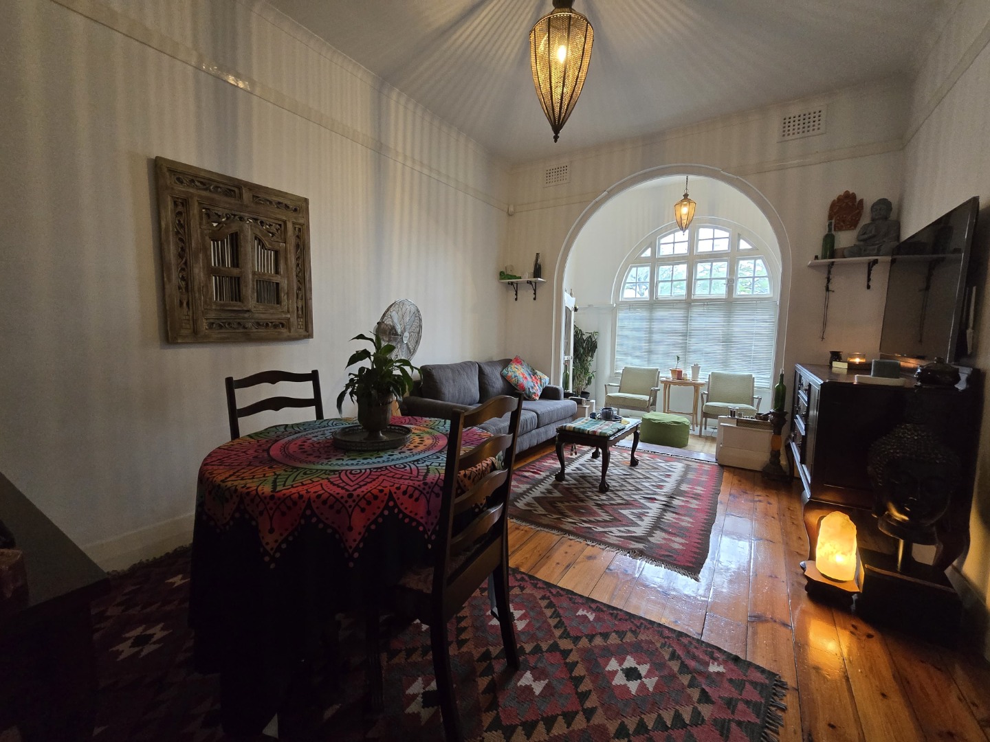 Inside, the apartment feels both welcoming and timeless. The spacious bedroom offers a restful retreat, complemented by classic wooden-framed windows that feature built-in burglar bars for added peace of mind. The thoughtful layout makes it ideal for anyone seeking a home that offers both comfort and a sense of privacy.
