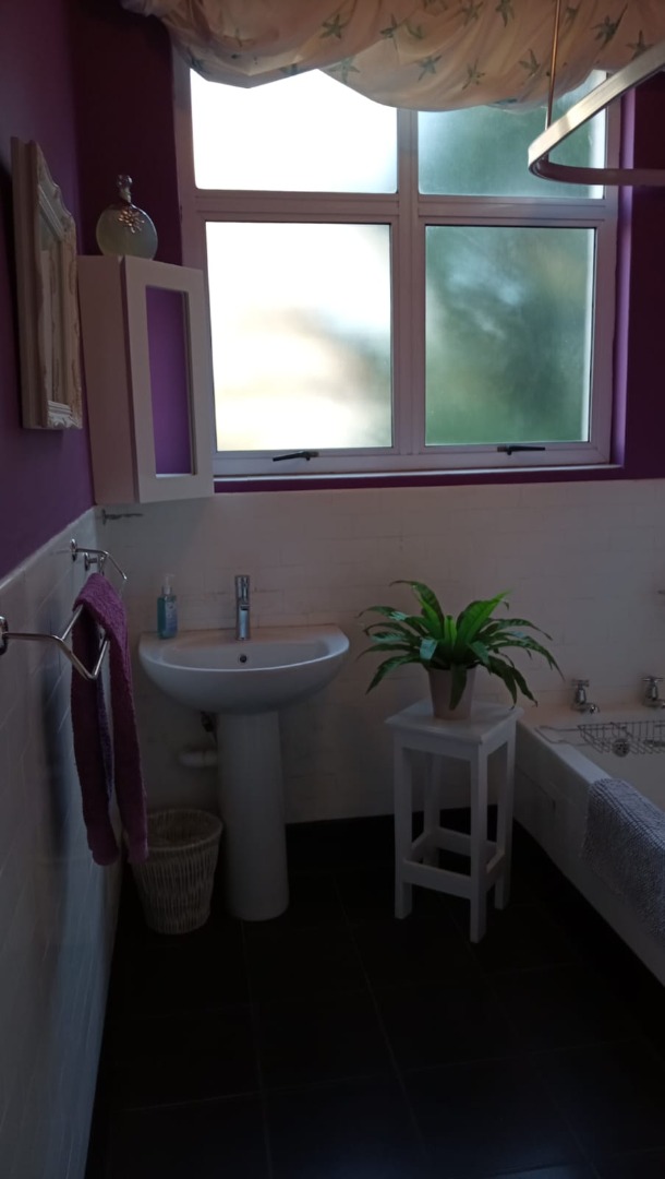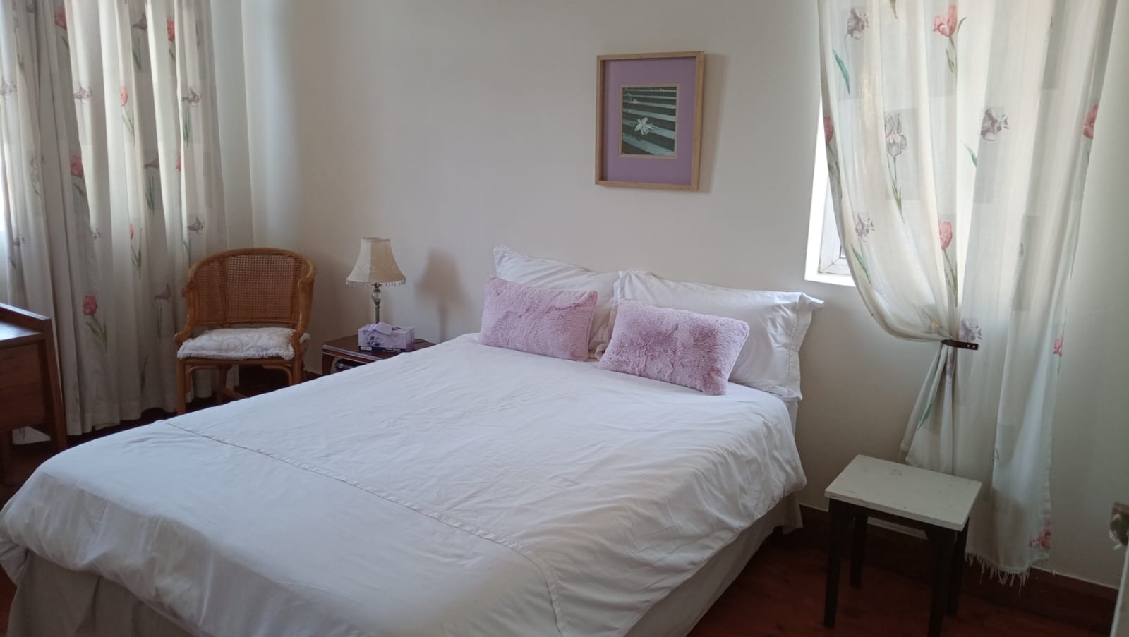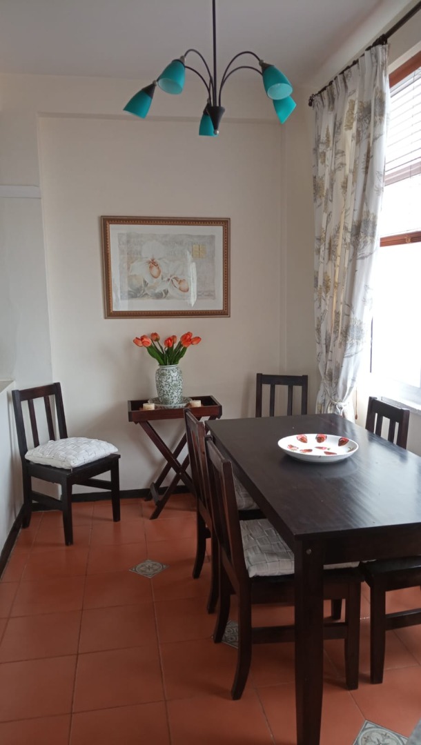 Step inside to find a spacious layout featuring a separate lounge and dining room, both offering lovely elevated views. The dining area is tiled, while the lounge invites natural light and a sense of openness. The fitted kitchen is neat and functional, with ample storage.