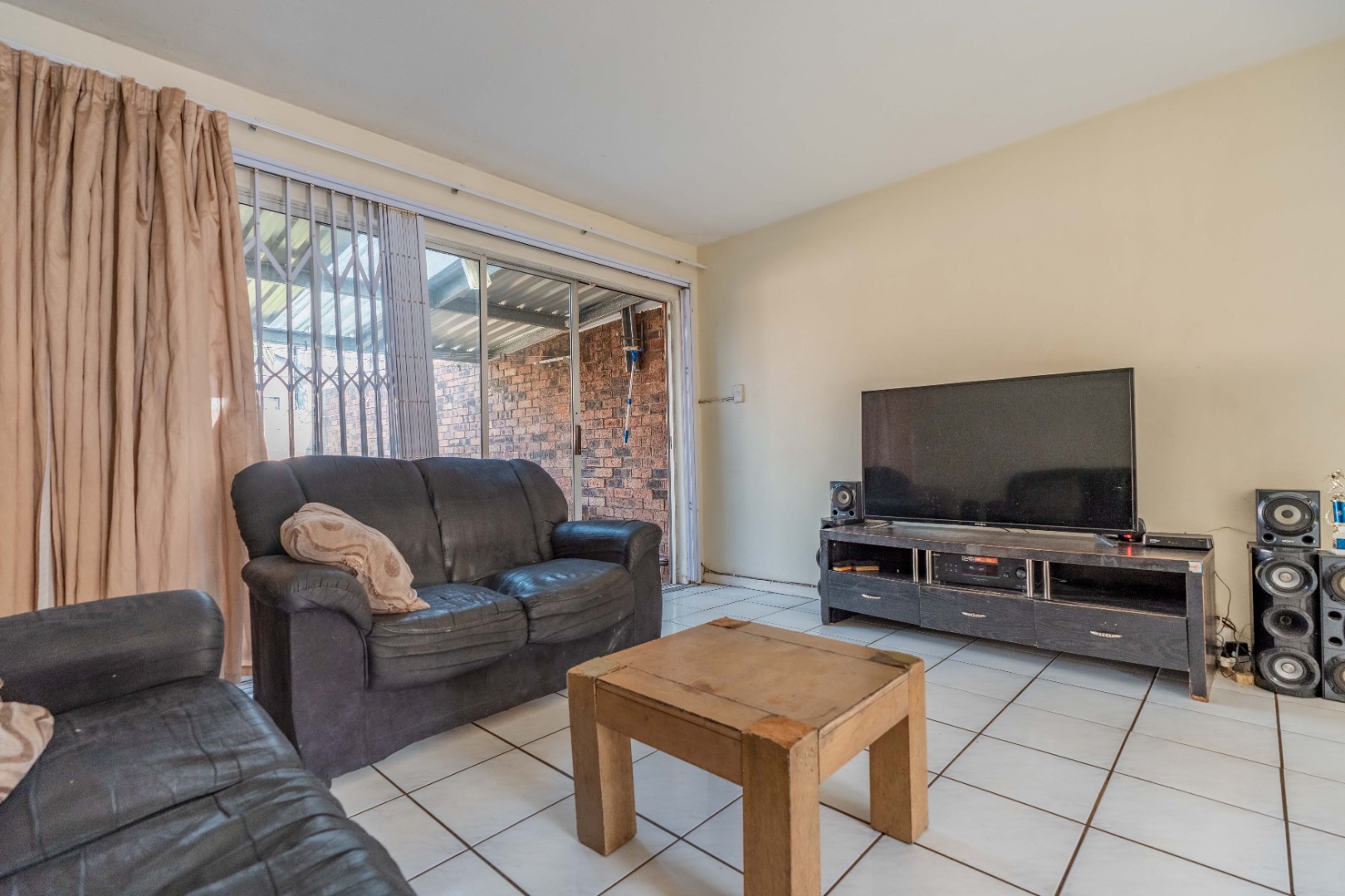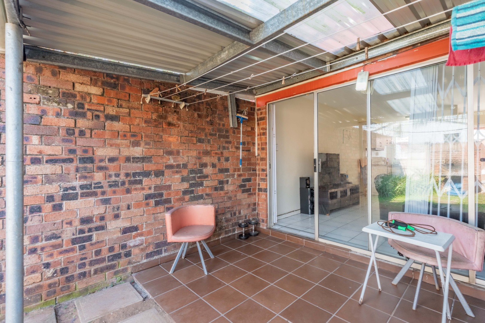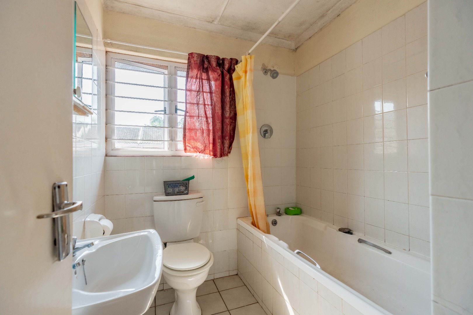 The bathroom is fitted with a bath-and-shower combination, along with a toilet and basin. For peace of mind, the unit is secured with burglar guards throughout.