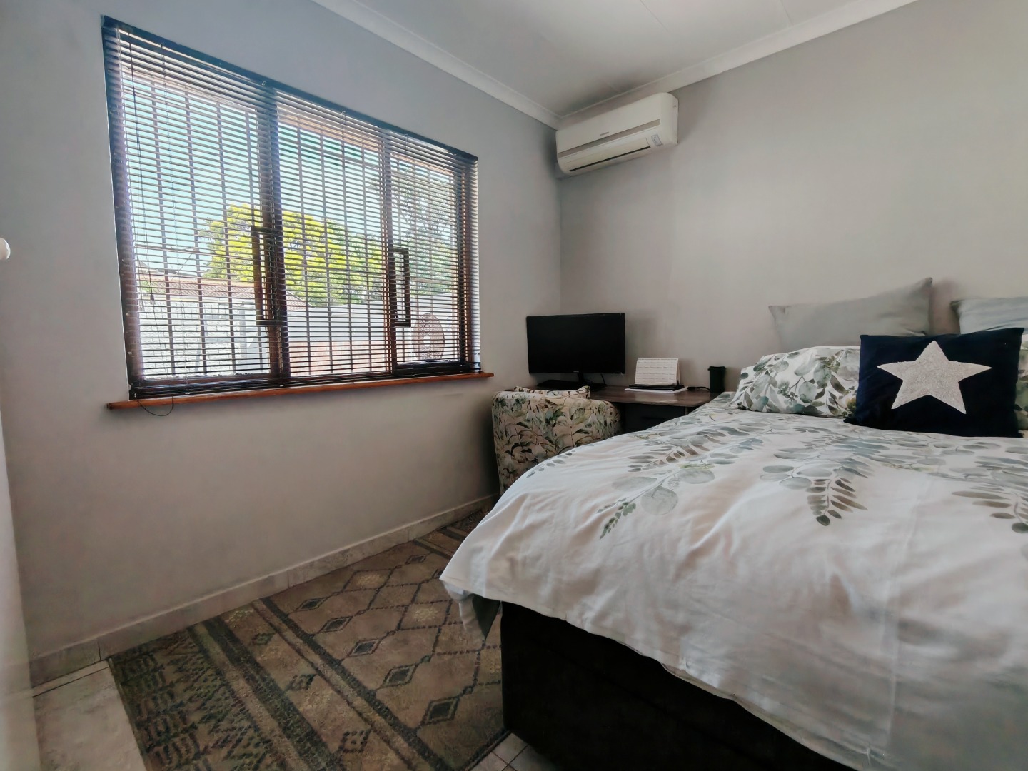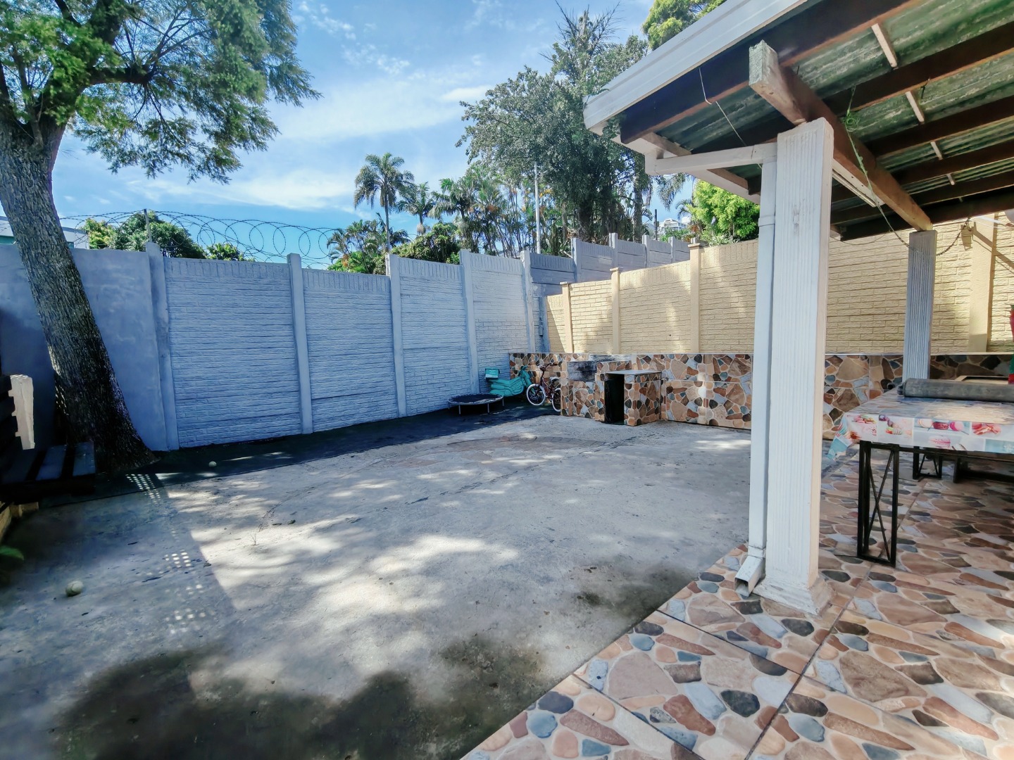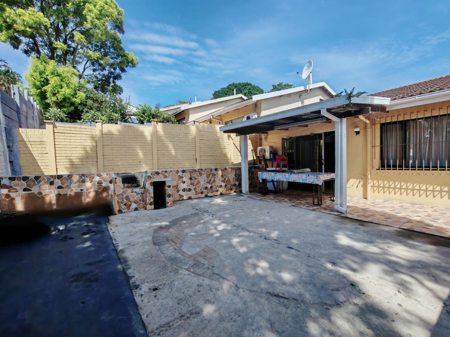 Additional features include parking for two vehicles, a front courtyard, and a rear outdoor entertainment space. The property also benefits from the presence of a night guard, offering added peace of mind and security.