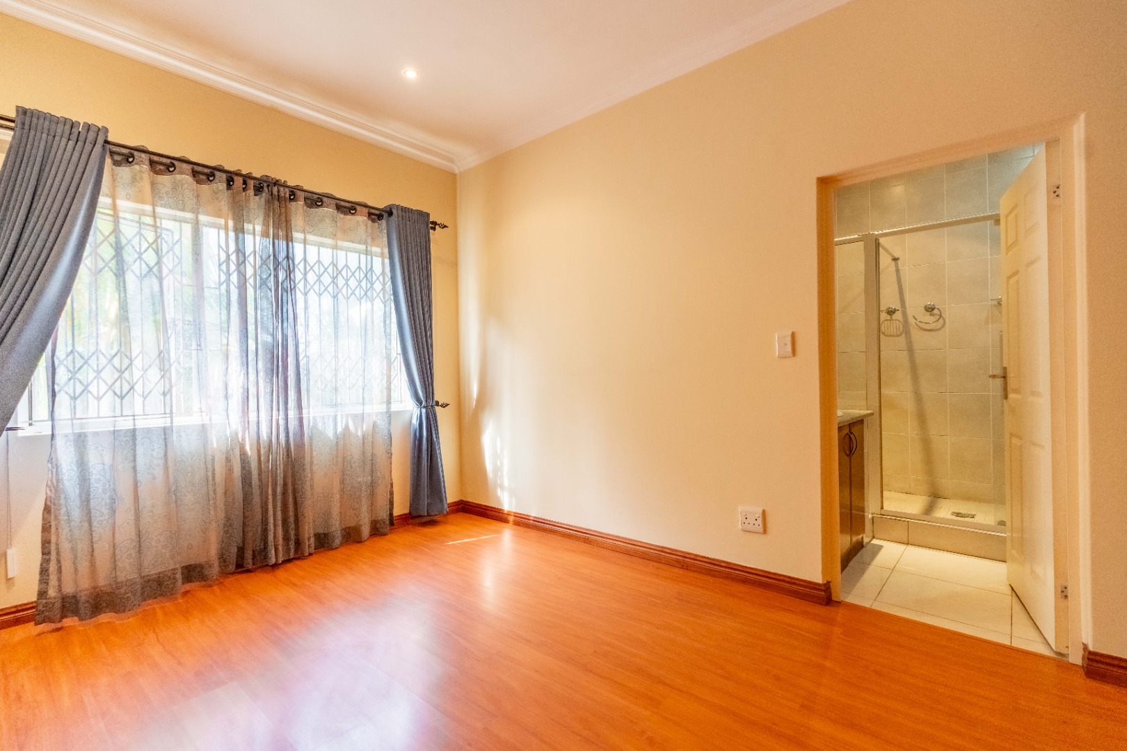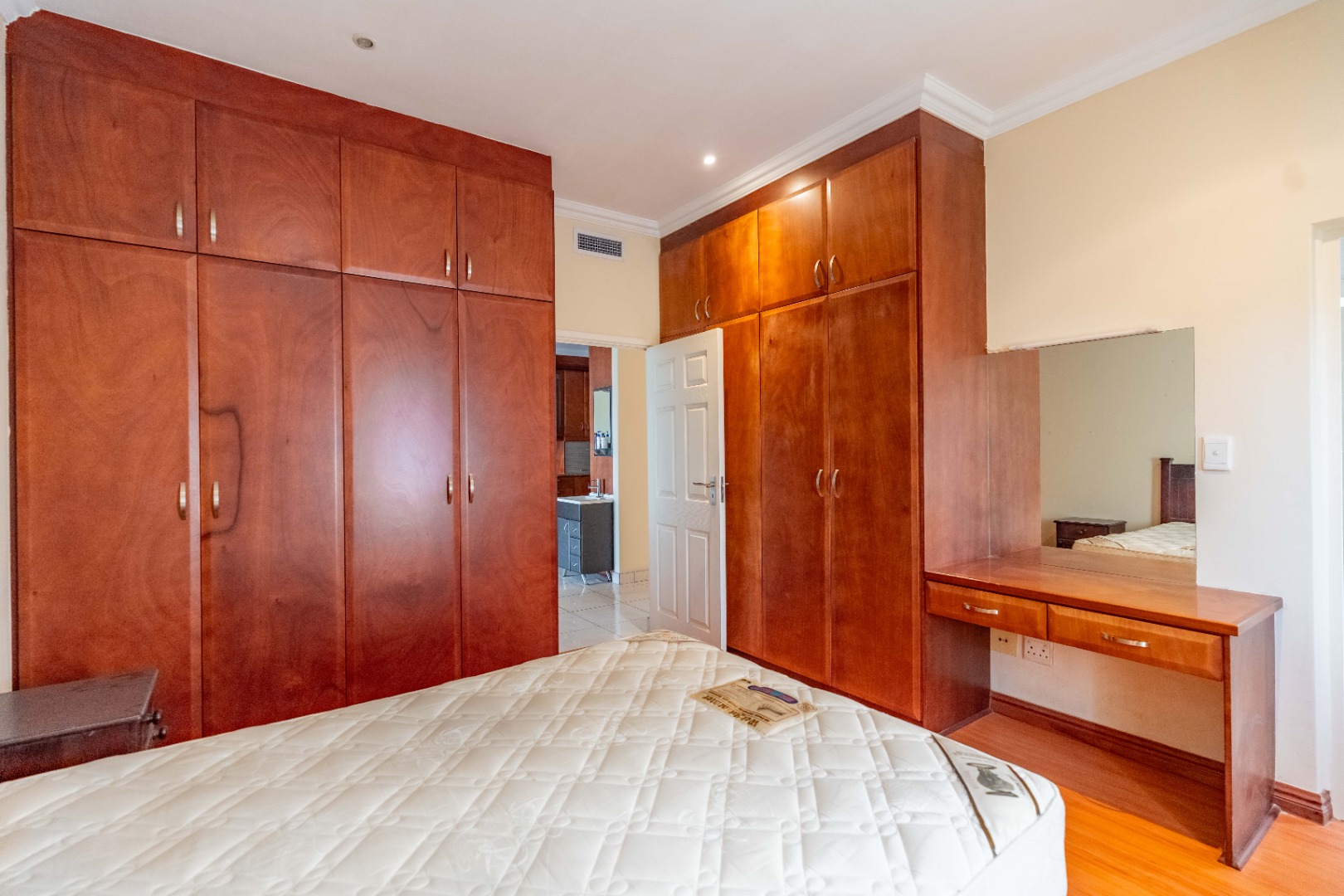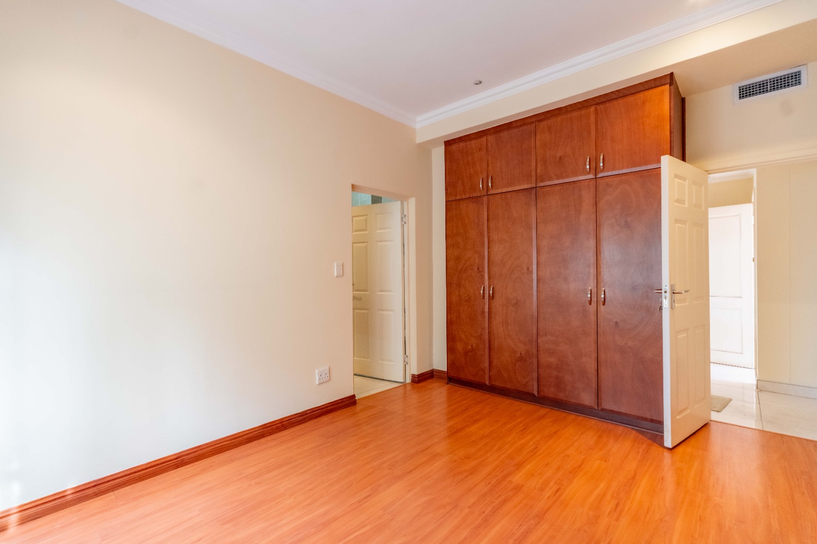 - 3 generously sized bedrooms with built-in cupboards and laminated flooring.