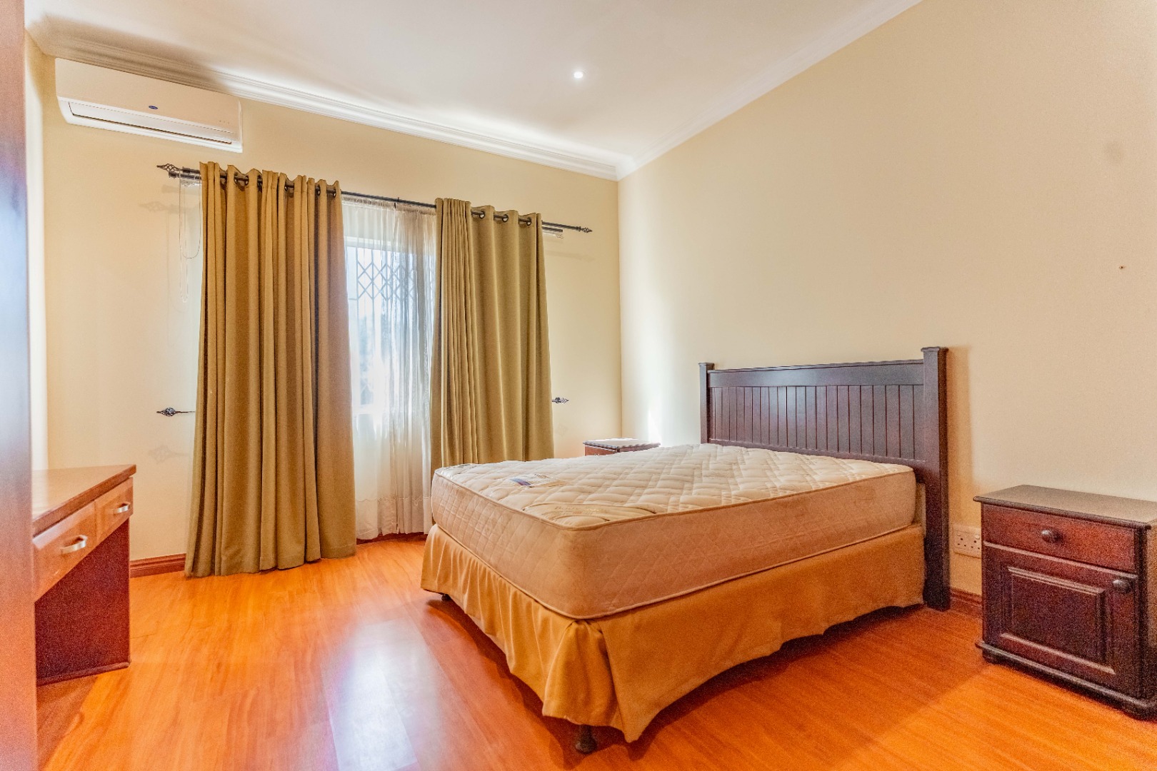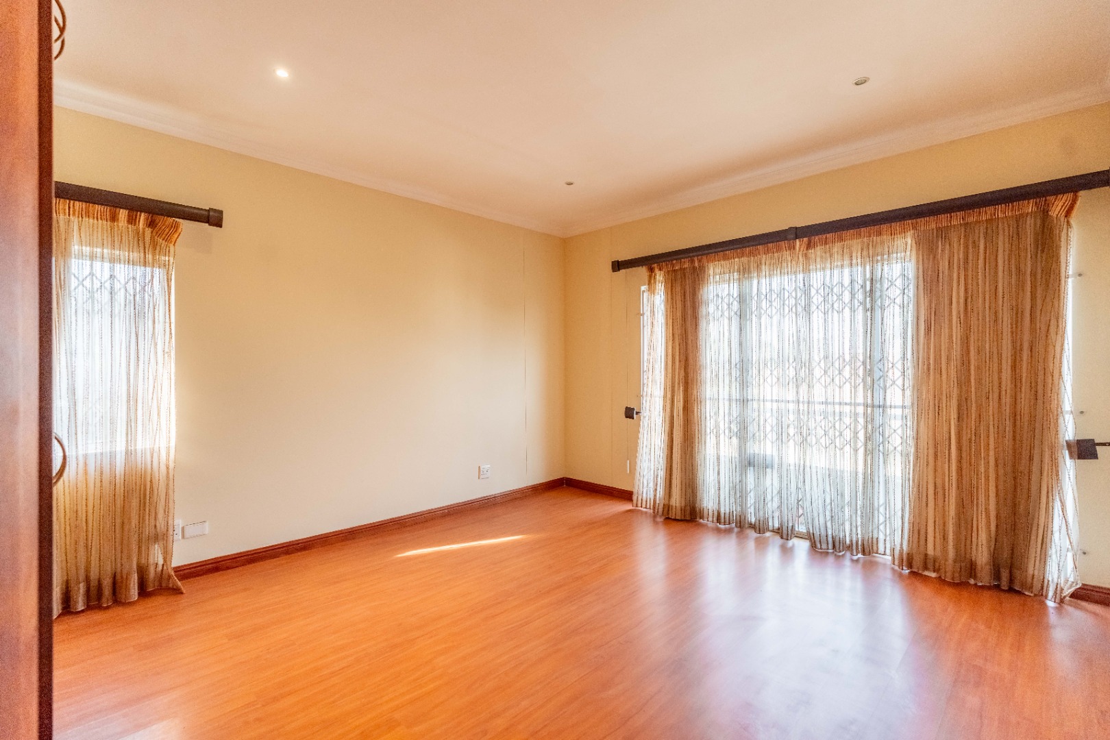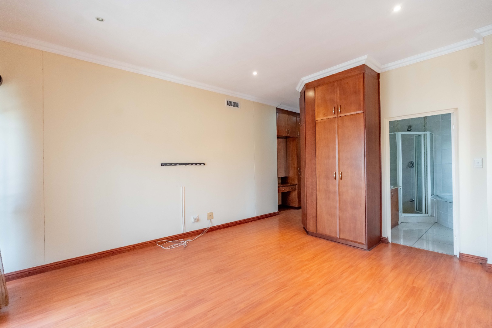 - 3 generously sized bedrooms with built-in cupboards and laminated flooring.