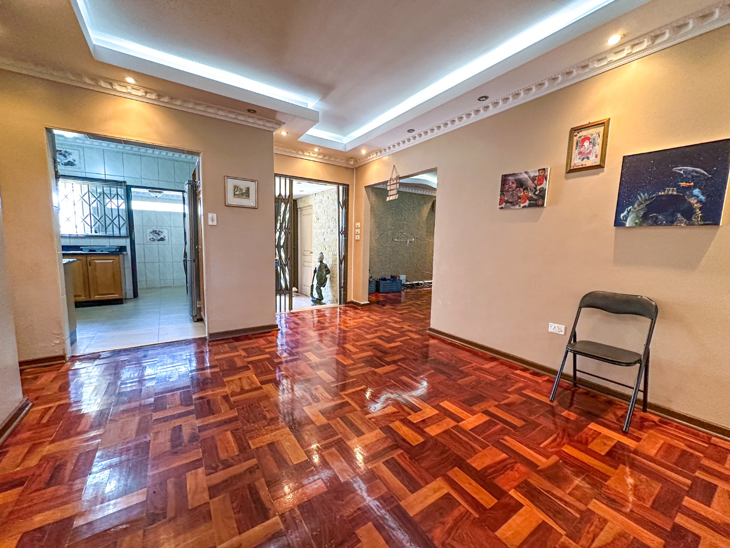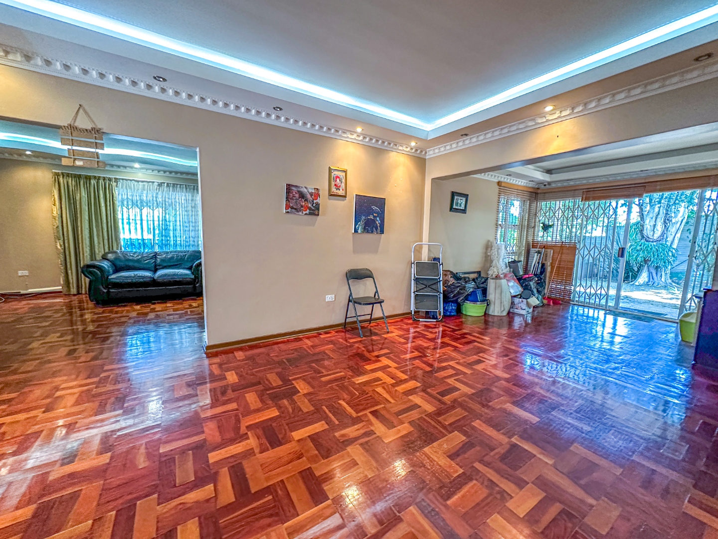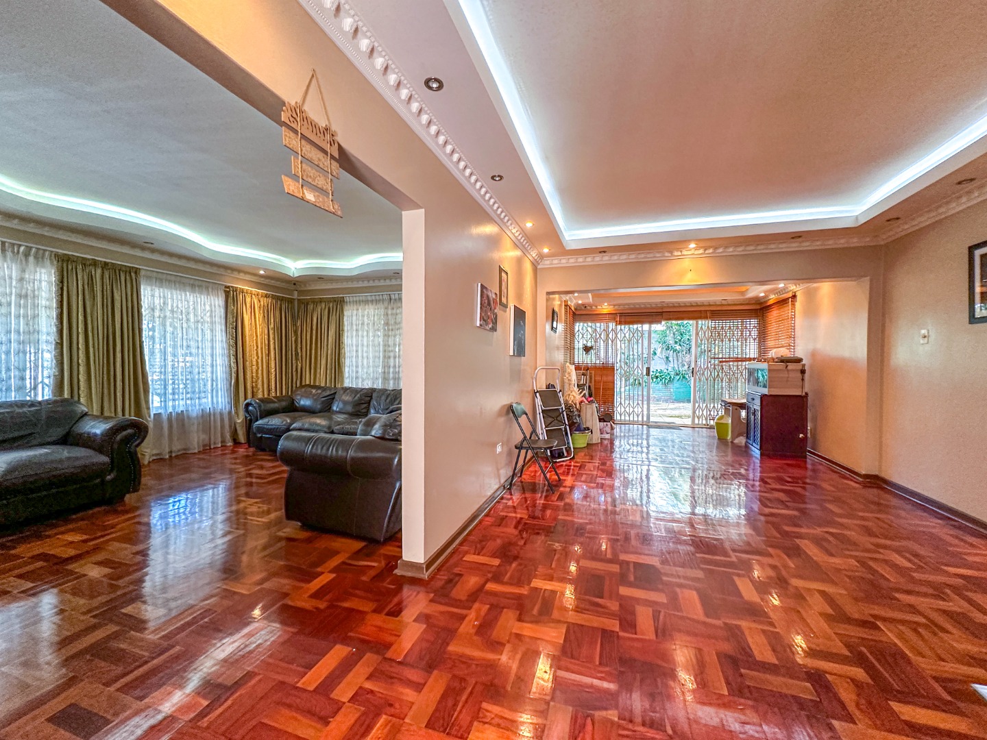 Step inside this lovely 3-bedroom home in Musgrave, where comfort meets convenience. You'll immediately notice the beautiful, glossy parquet flooring that flows throughout the main living areas, adding a warm and inviting touch. The decorative ceilings, complete with modern recessed and hidden lighting, create a sophisticated ambiance. This home offers a spacious lounge and a dedicated dining room, perfect for family gatherings or just relaxing after a long day. The open layout provides a great sense of space, making it easy to move between rooms.