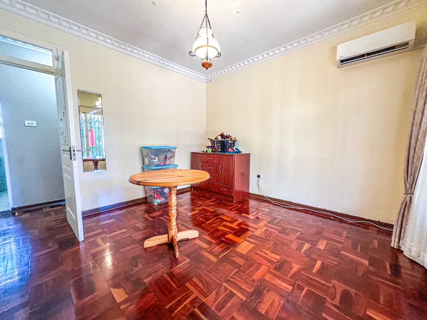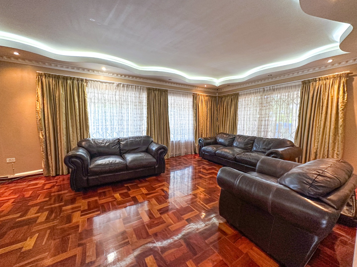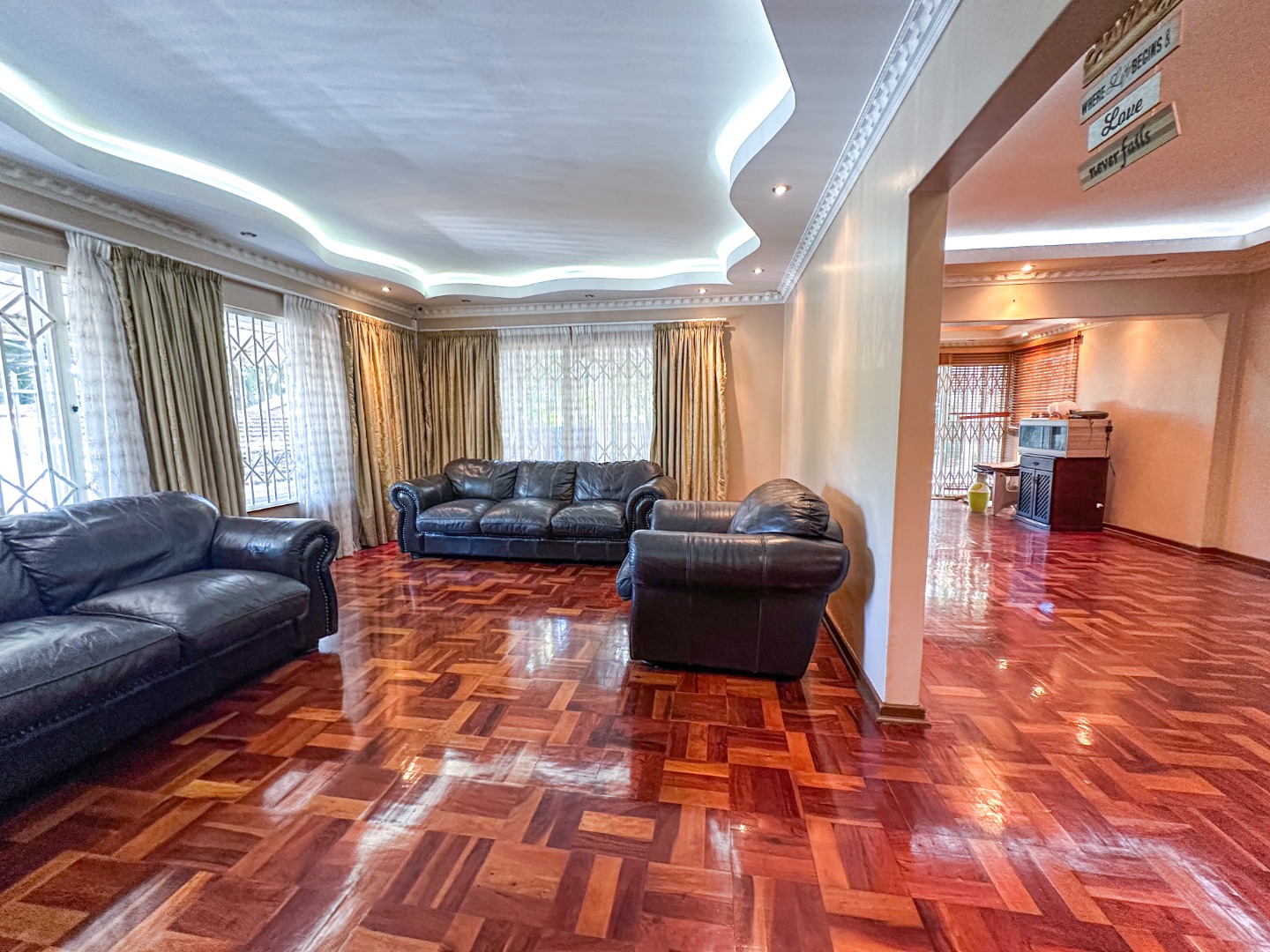 Step inside this lovely 3-bedroom home in Musgrave, where comfort meets convenience. You'll immediately notice the beautiful, glossy parquet flooring that flows throughout the main living areas, adding a warm and inviting touch. The decorative ceilings, complete with modern recessed and hidden lighting, create a sophisticated ambiance. This home offers a spacious lounge and a dedicated dining room, perfect for family gatherings or just relaxing after a long day. The open layout provides a great sense of space, making it easy to move between rooms.
