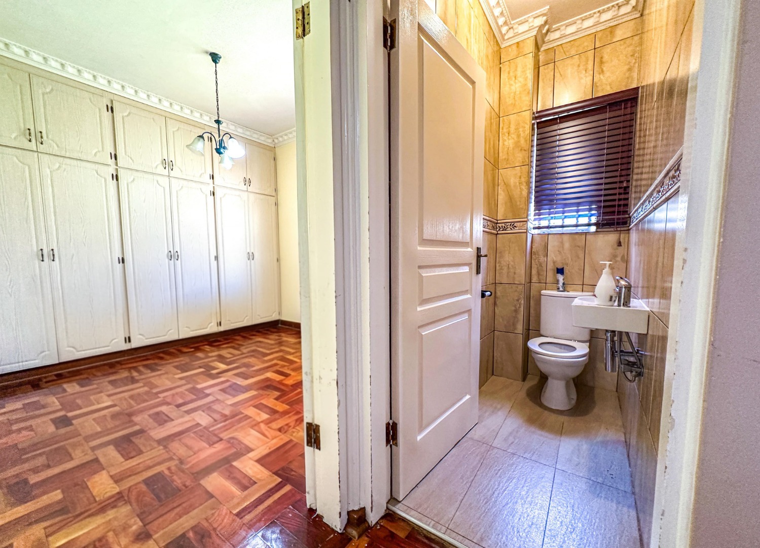 * Glossy parquet flooring throughout