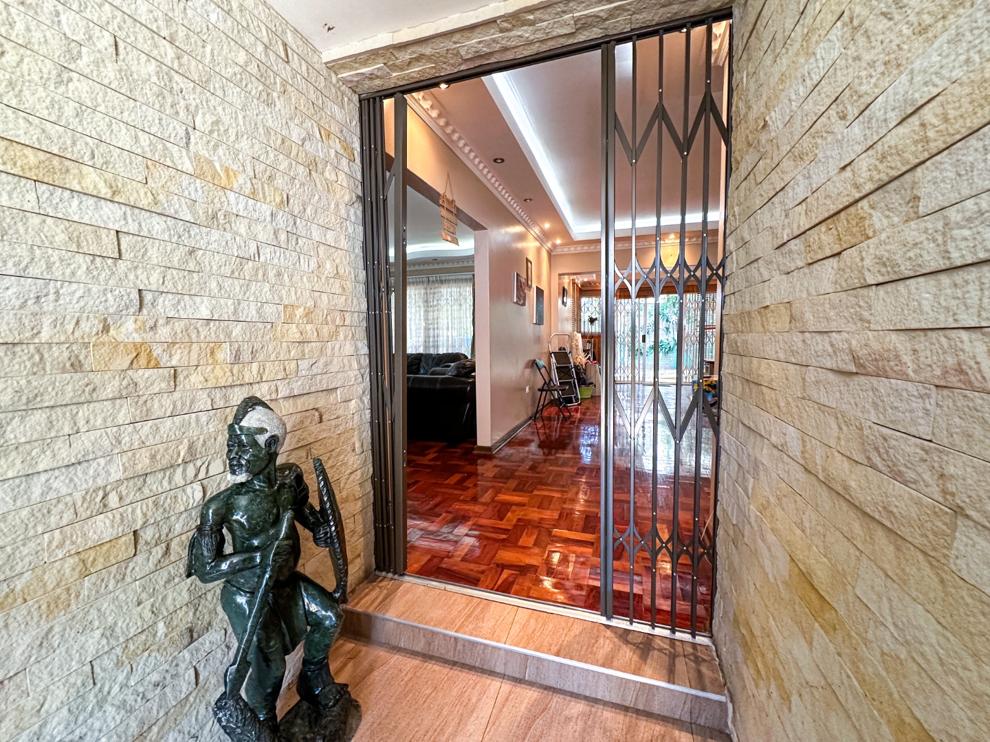 Outside, the property sits on a generous 931 sqm erf, offering a lovely garden space to enjoy the Durban sunshine. You'll find convenient parking for two vehicles, and there are even staff quarters, adding to the home's practicality. The natural stone wall cladding at the entryway gives a welcoming first impression, blending nicely with the suburban surroundings.