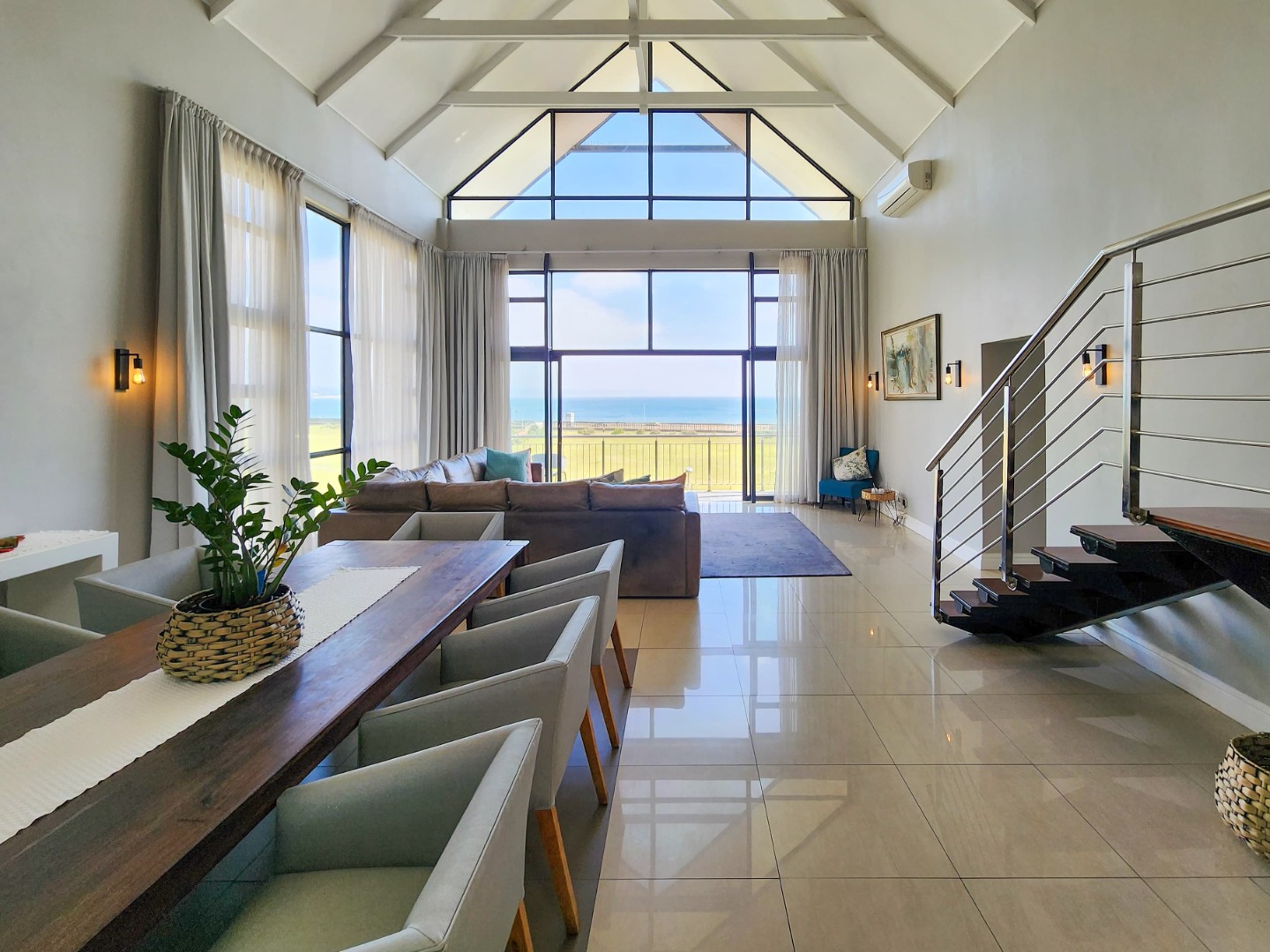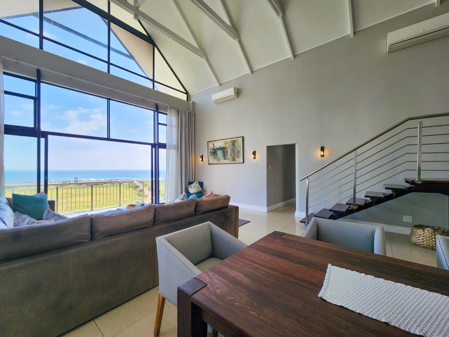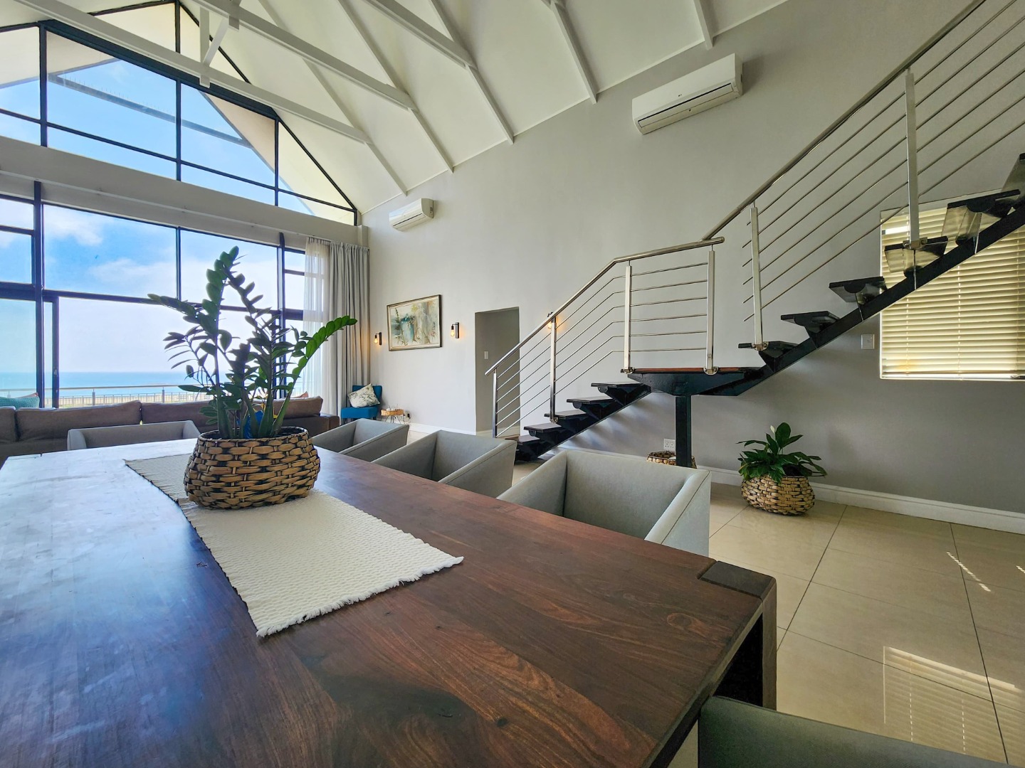 Experience the epitome of luxury living in this breathtaking 4 bedroom duplex penthouse, situated in the prestigious Durban Point Waterfront. With a double lock-up garage and 2 exclusive parking bays, this lavish retreat offers unparalleled comfort and convenience. The penthouse boasts 3.5 bathrooms, 2.5 lounges, and a stunning pub/bar area perfect for entertaining. Designed for easy living, it accommodates up to 8 people and features a gourmet kitchen, double-volume lounge, and dining area with high-beamed ceilings. Enjoy breathtaking ocean and beachfront views from the expansive veranda.