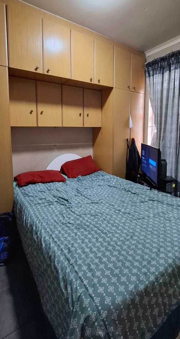 Step inside to a functional layout designed for easy living. The kitchen is ready for your culinary adventures with warm-toned wooden cabinetry, a built-in oven, hob, and extractor fan, plus a tiled backsplash. The lounge is a great space to unwind with natural light streaming in, it also offers 2 bedrooms, each with extensive built-in wardrobes and a cool staircase that leads to a loft bedroom. The bathroom is fully equipped with a bathtub, toilet, and basin, all tiled for practicality.