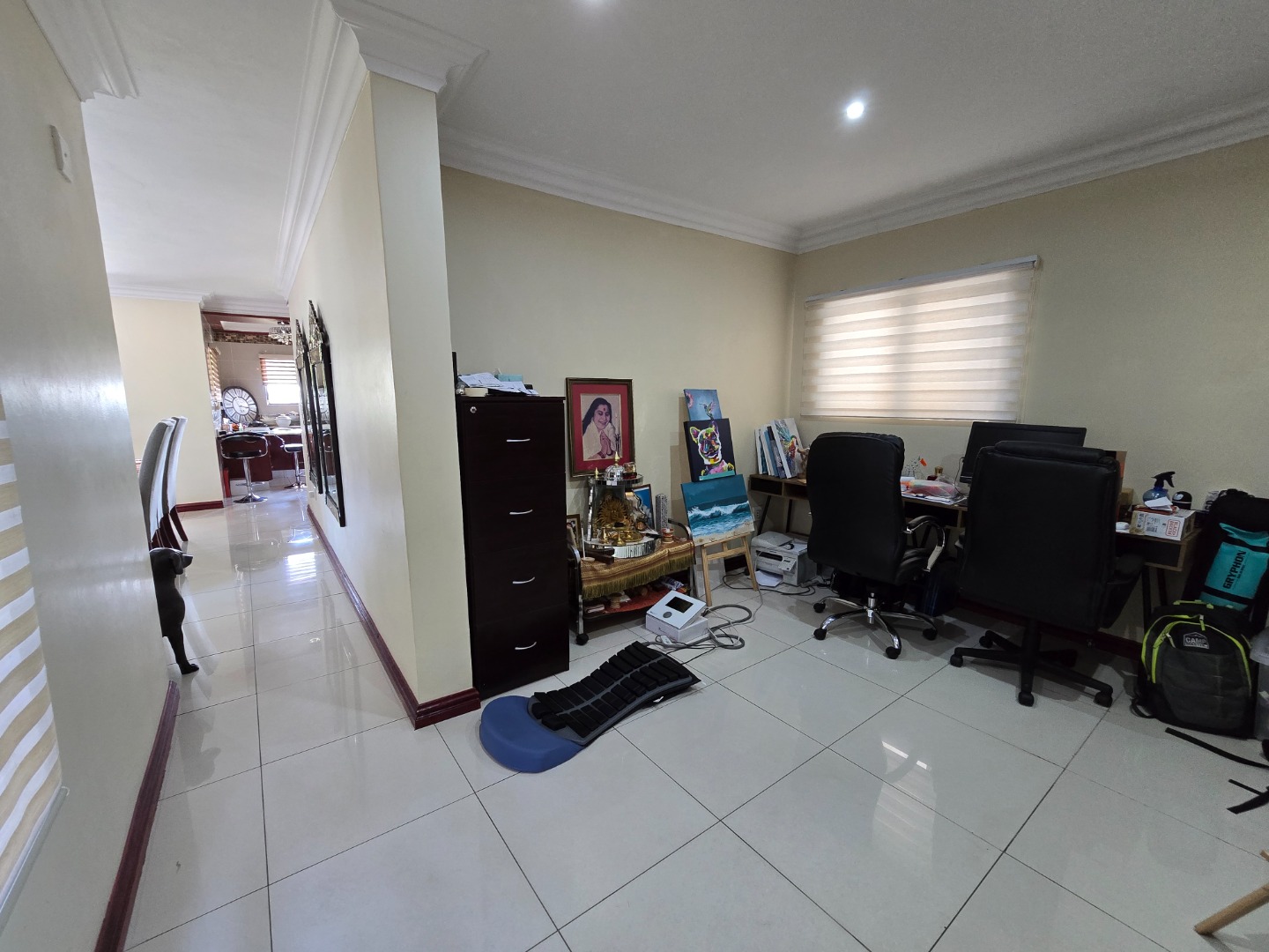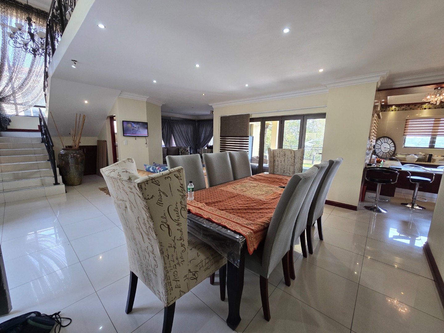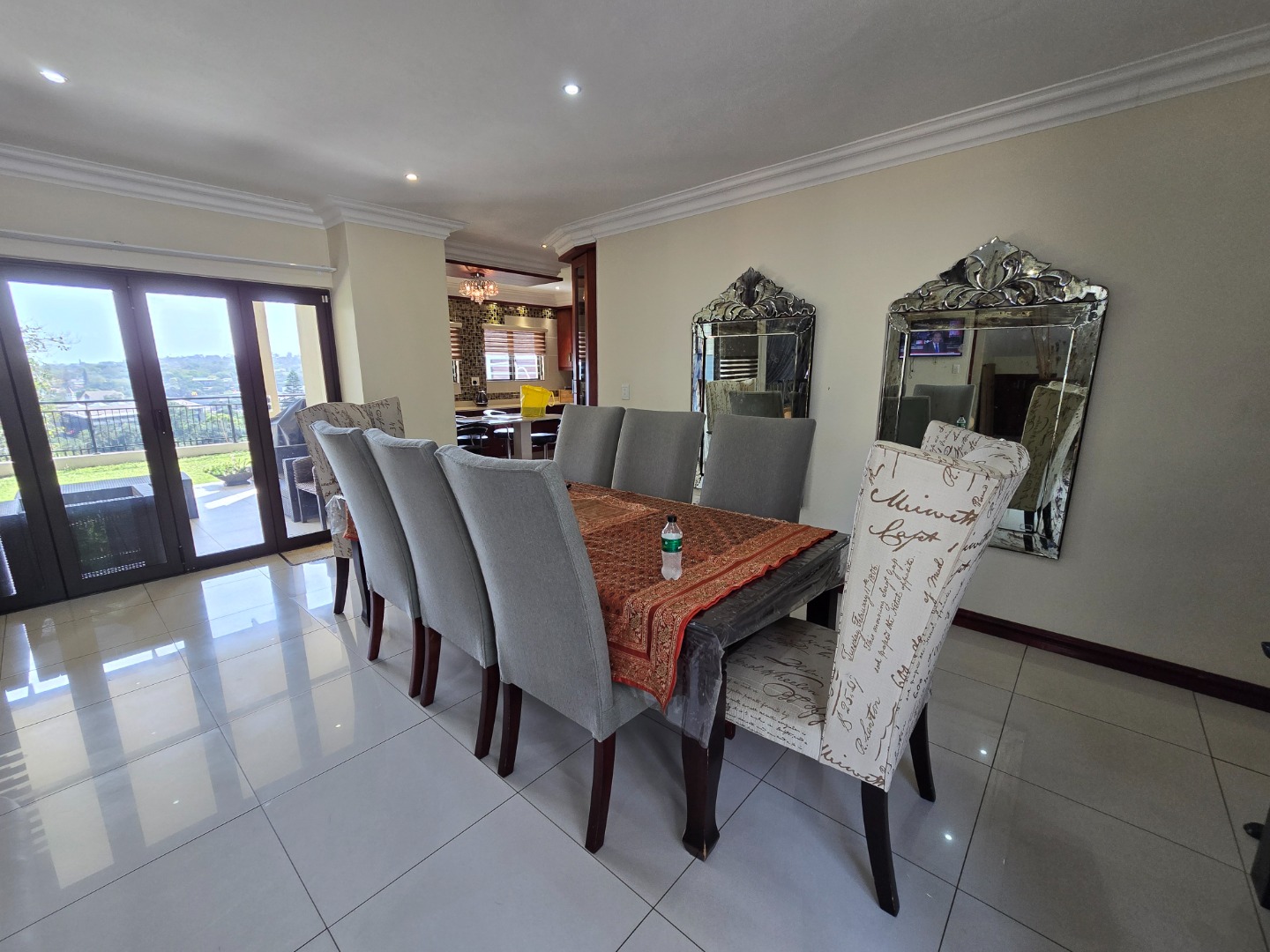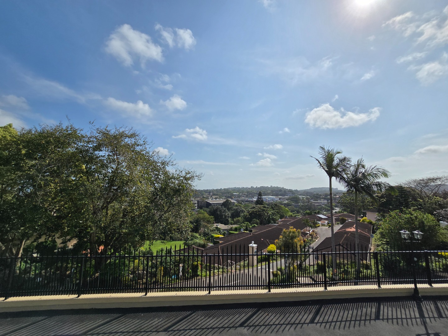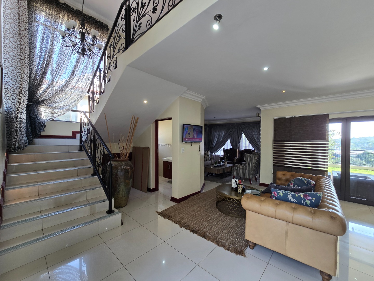 Expansive concertina sliding doors open from the formal lounge onto a spacious undercover veranda, offering breathtaking inland views of Westville Central. The private garden enhances the serene atmosphere, and additional outdoor amenities include a wash basin and a small staff quarters with ablution facilities.