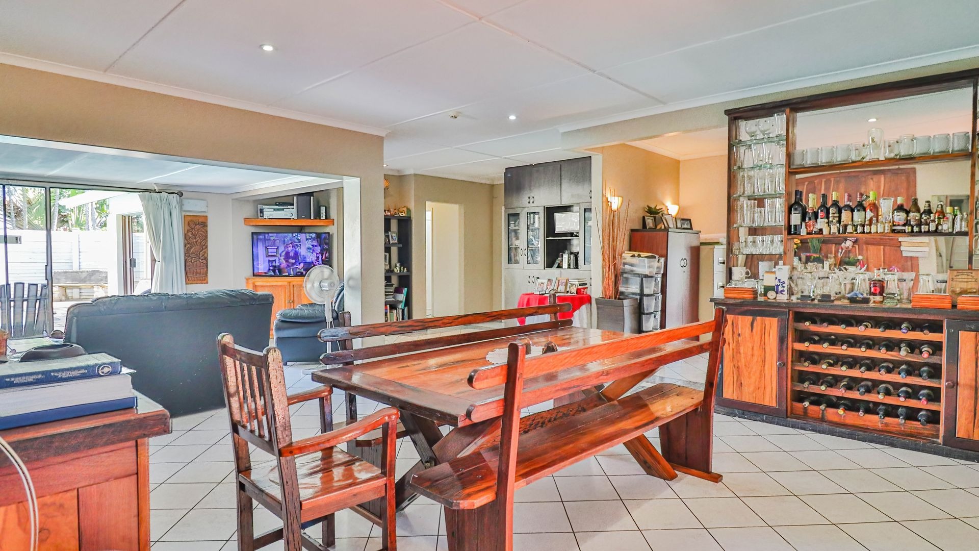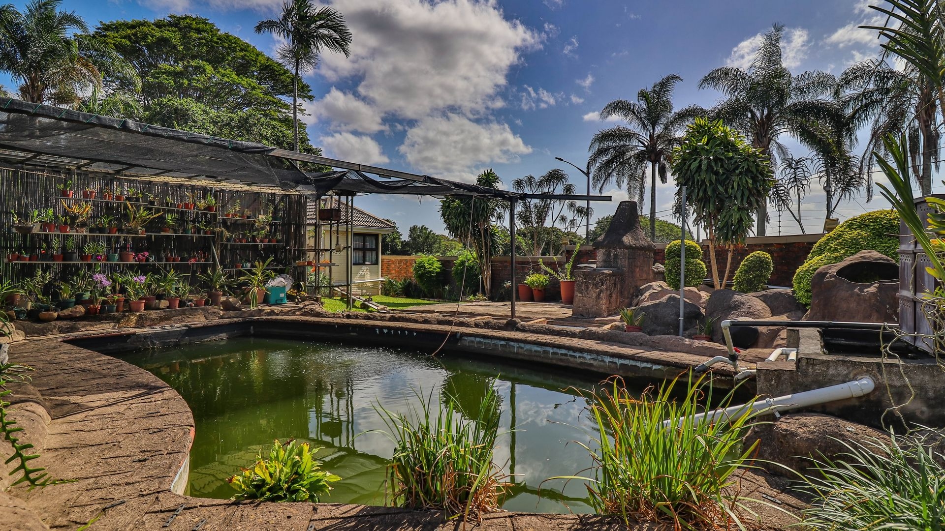 Externally, the property offers a wealth of features designed for leisure and outdoor enjoyment. A private swimming pool, complemented by a deck and patio, creates an ideal setting for relaxation and social gatherings. Residents will appreciate the established garden, complete with a large Koi pond, water tanks, and a built-in braai area for al fresco dining. The elevated position affords both scenic and sea views, enhancing the property's desirability. Security is comprehensively addressed with an access gate, alarm system, electric fencing, intercom, CCTV surveillance, and burglar bars, ensuring peace of mind.