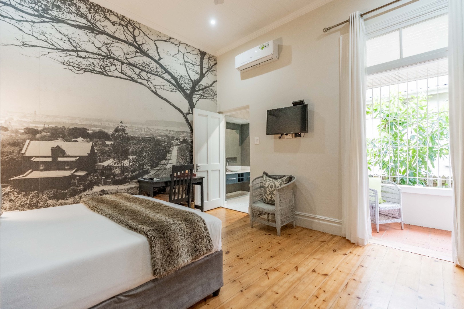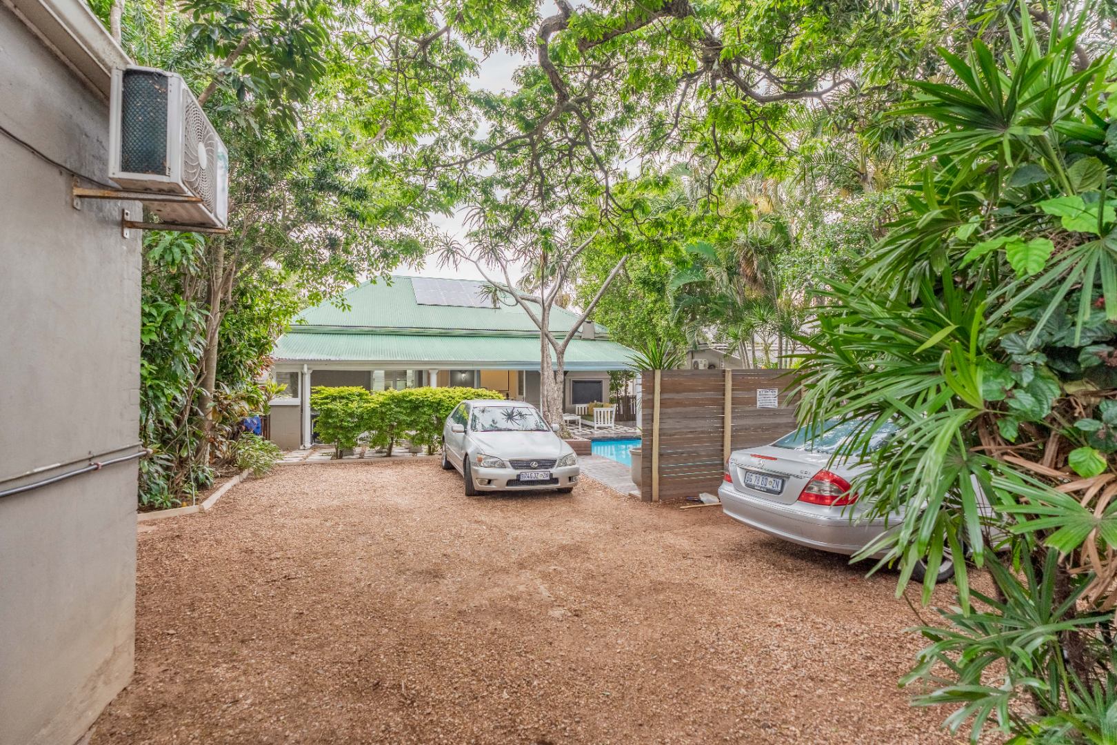 Comfort and efficiency are enhanced with air conditioners in most rooms, solar panels, and gas geysers. The property also offers secure parking for four cars.