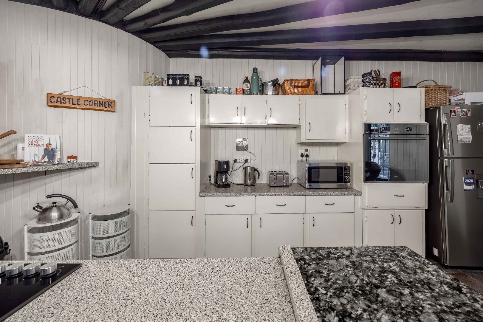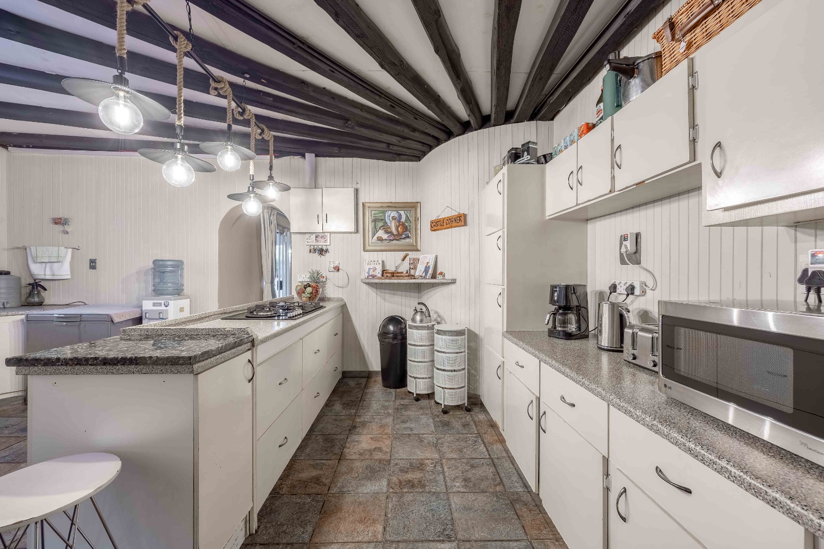 The moment you step inside, the world outside simply disappears. This is a home that makes you forget the rush, offering a private sanctuary with all the practical space you’ve been looking for. Head up the front stairs and through the entrance hall into a home laid out simply and naturally. The living space opens into a lounge with a cozy fireplace and high thatched ceilings that keep the air fresh and cool. This flows right into a big dining area, perfect for family meals. Tucked between the dining room and the kitchen is a surprise staircase leading to an attic/hobby room—the ideal spot for a hideaway or creative space. The kitchen itself is bright and well-equipped, built for everything from morning coffee to long Sunday roasts. Down the hallway, you’ll find three spacious, light-filled bedrooms. There is a modern full family bathroom, and the main bedroom features its own private en-suite shower. For those working from home, the dedicated office provides a quiet, focused spot, but it’s large enough to easily become a 4th bedroom if your family needs the extra room.