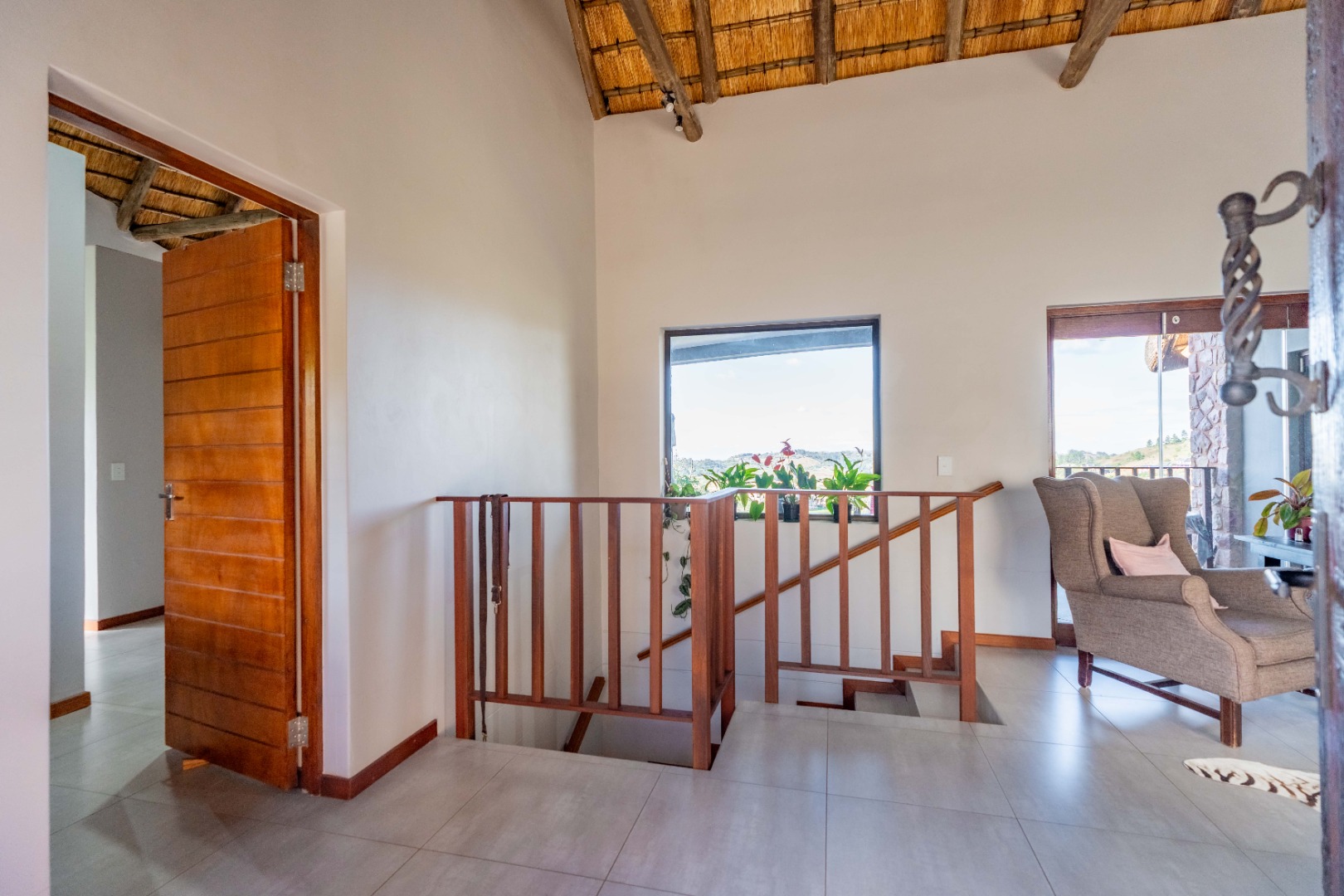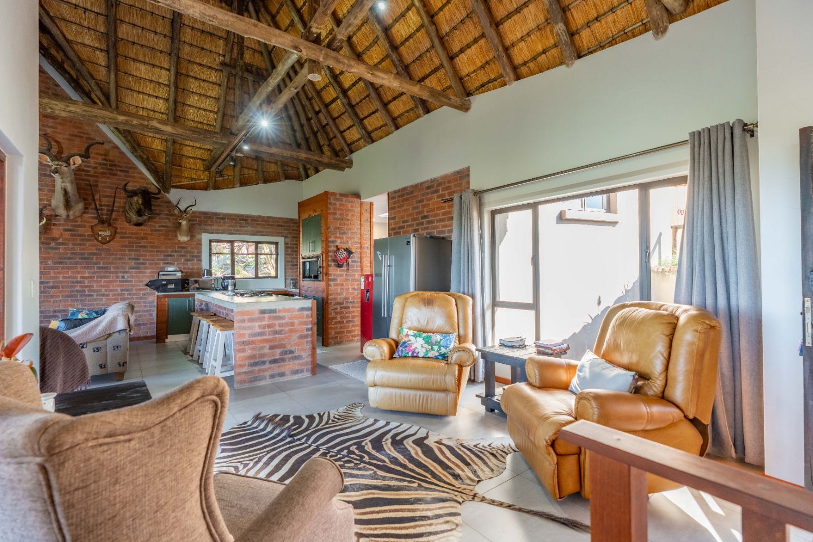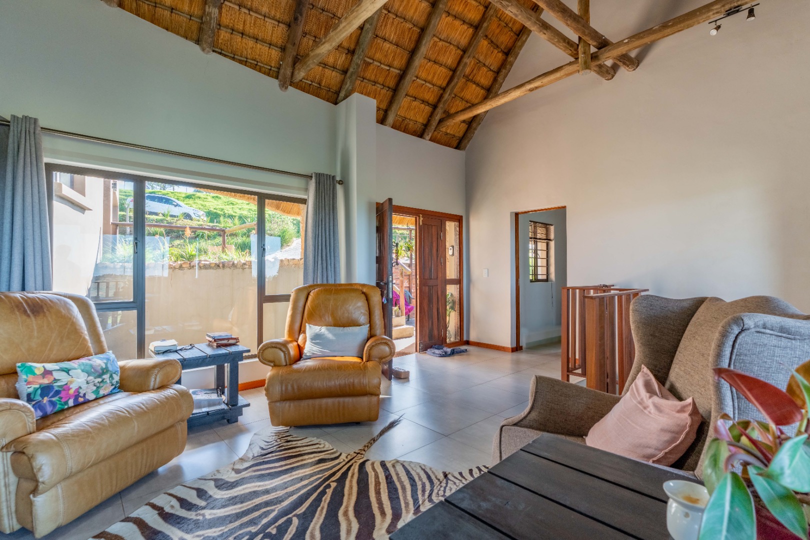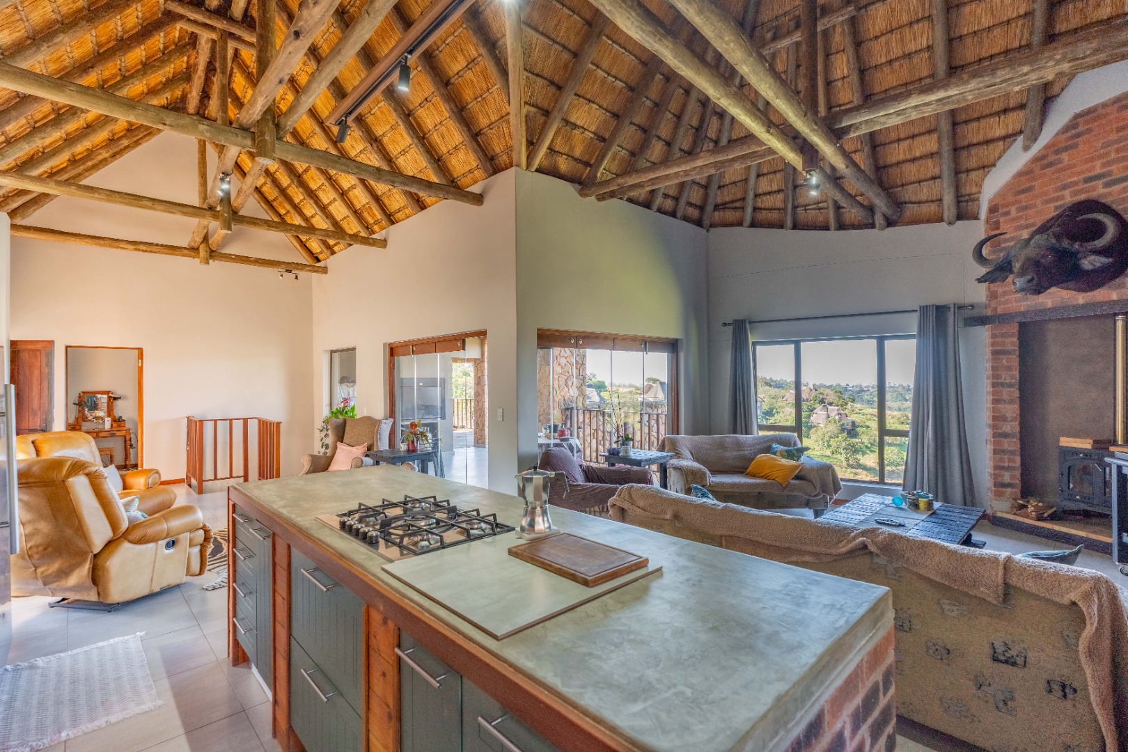 A well designed, double-storey thatch home with so much to offer, positioned in exclusive Phezulu Estate offers a lifestyle unlike any other. From the moment you arrive, you’re greeted by peaceful views and the free roaming game in the estate. Here, Zebra, Wildebeest, Giraffe, buck and more which roam – a daily reminder that you're living somewhere truly special.