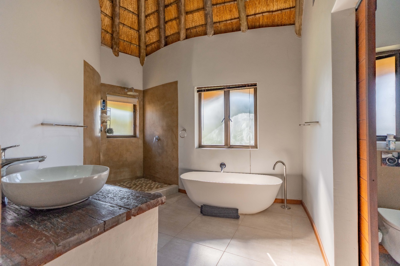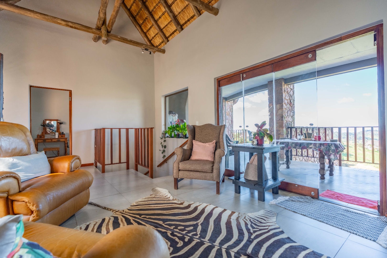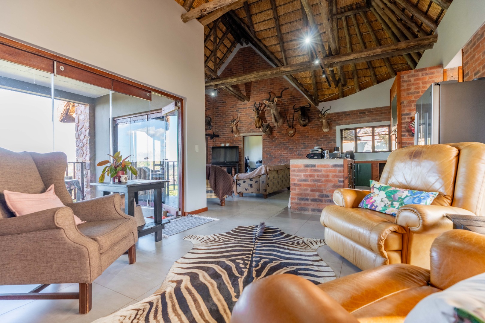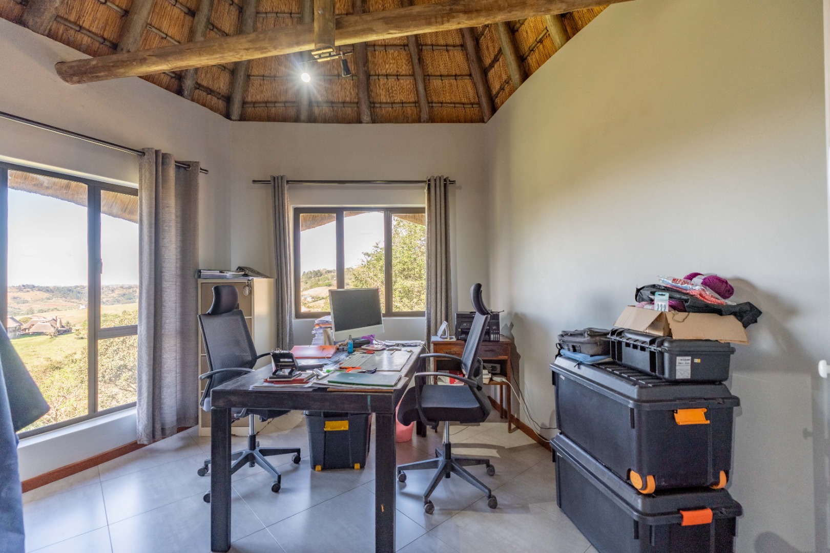 A well designed, double-storey thatch home with so much to offer, positioned in exclusive Phezulu Estate offers a lifestyle unlike any other. From the moment you arrive, you’re greeted by peaceful views and the free roaming game in the estate. Here, Zebra, Wildebeest, Giraffe, buck and more which roam – a daily reminder that you're living somewhere truly special.