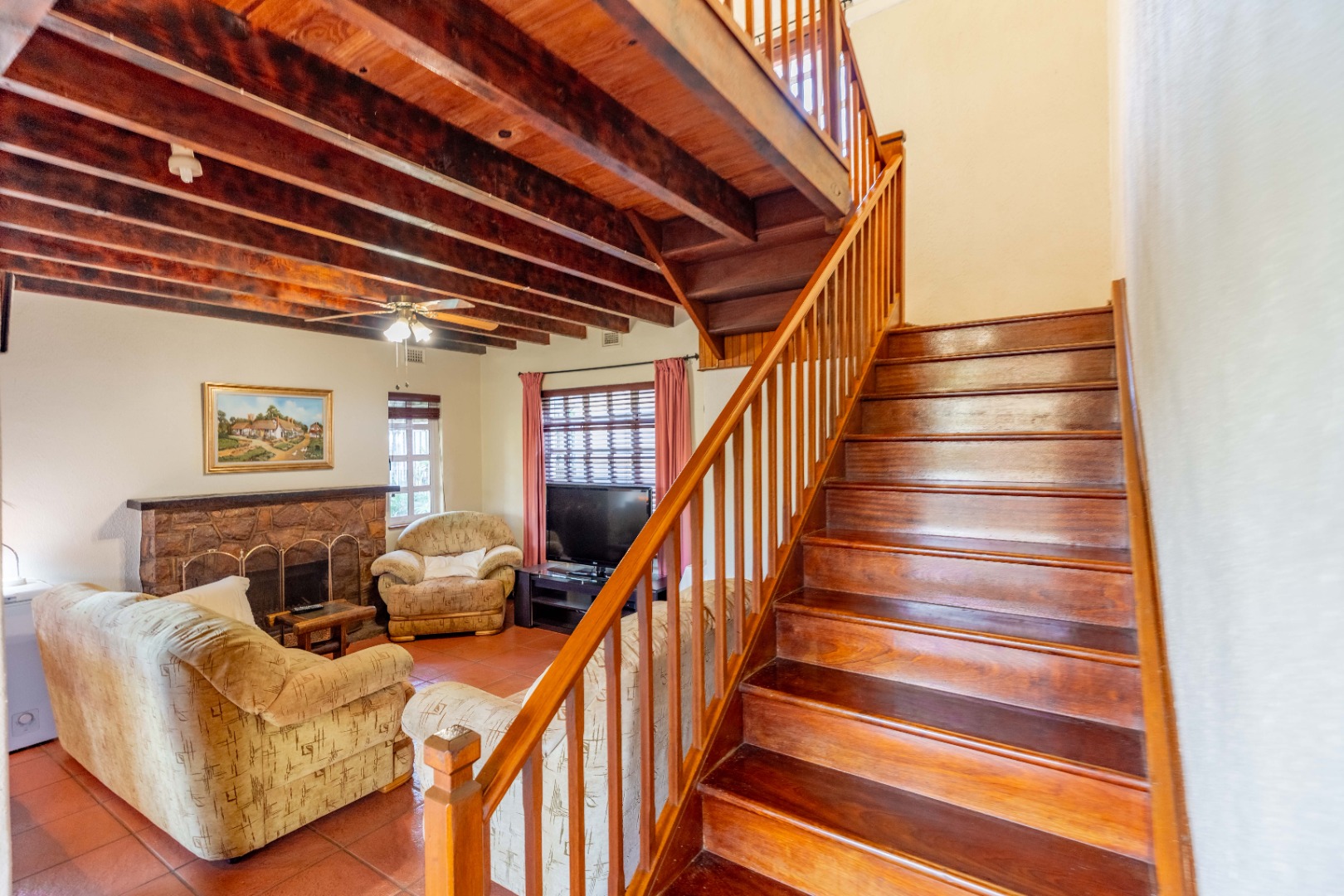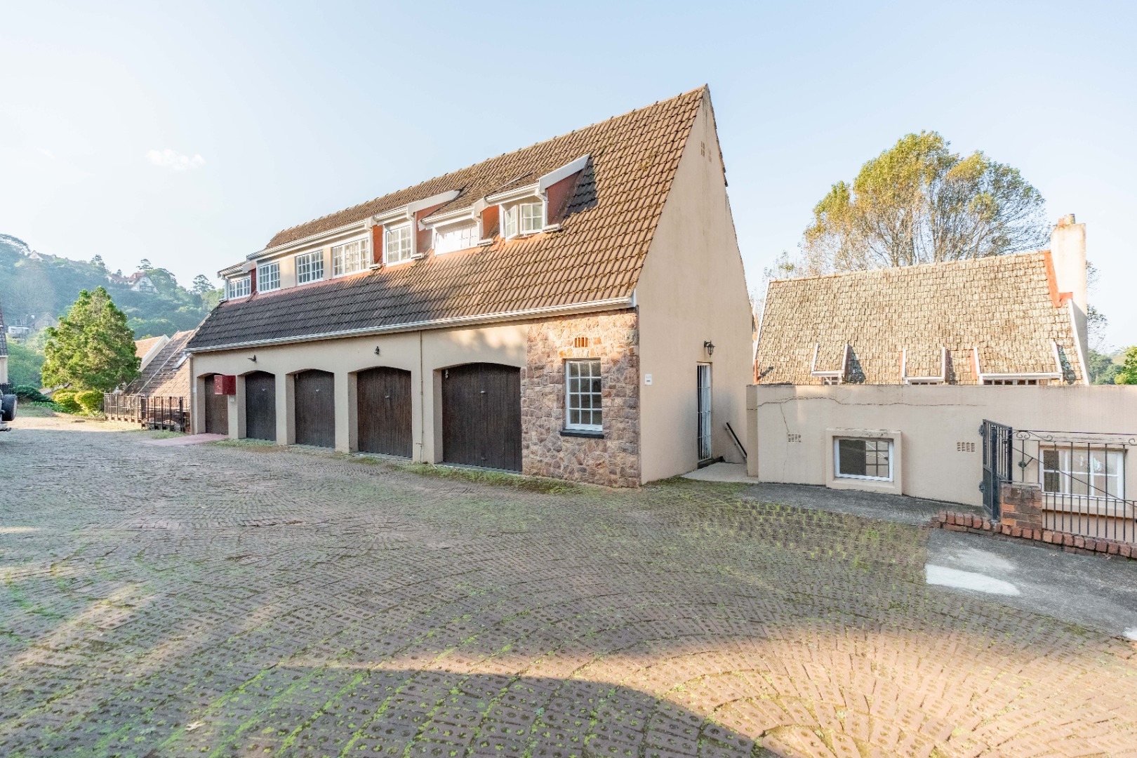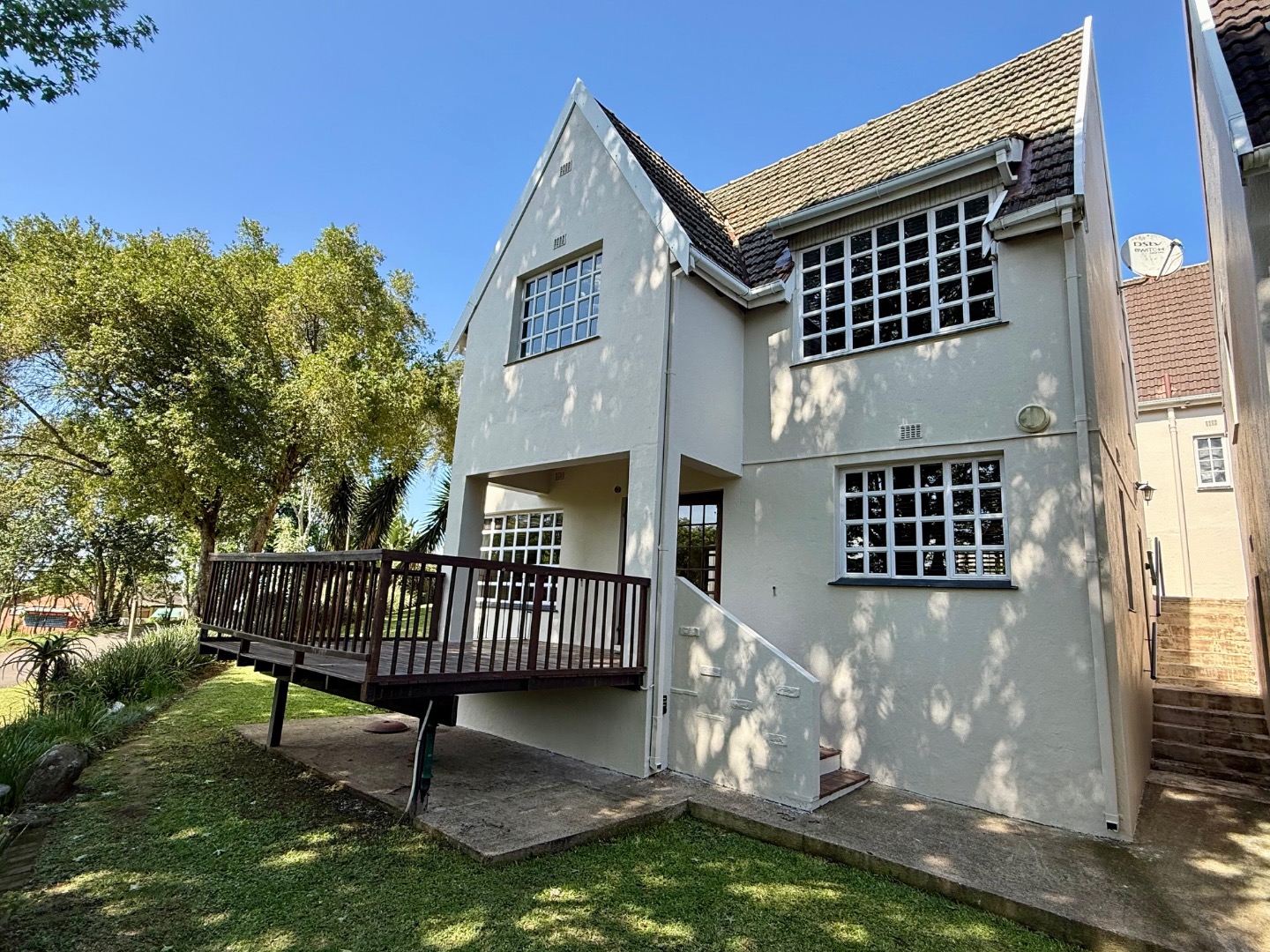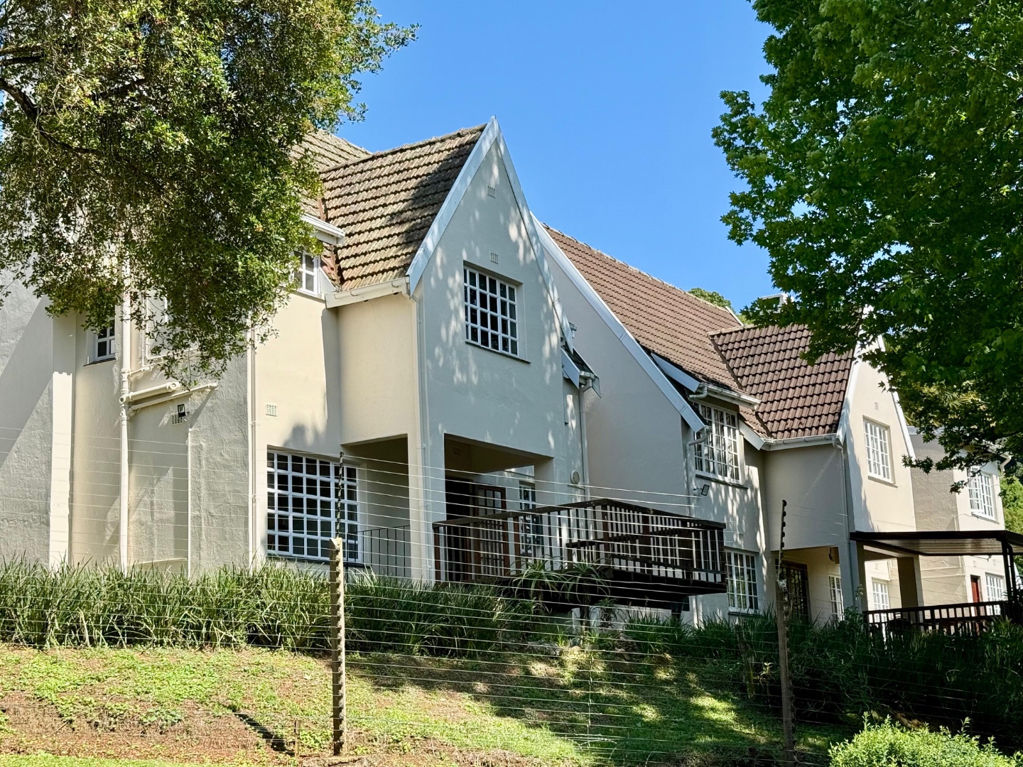 Nestled within a quaint English-style complex in the heart of Assagay, this spacious and well-kept 3-bedroom duplex offers both comfort and character. The layout is thoughtfully designed to suit modern living while retaining a warm, homely charm. Downstairs, an open-plan lounge and dining area flows effortlessly onto a wooden deck through classic French doors - perfect for entertaining or relaxing. A cosy fireplace and a built-in bar nook just off the lounge plus guest loo under the stairs add a touch of charm and functionality to the space. The kitchen is well fitted with solid cupboards and good amount of storage space.