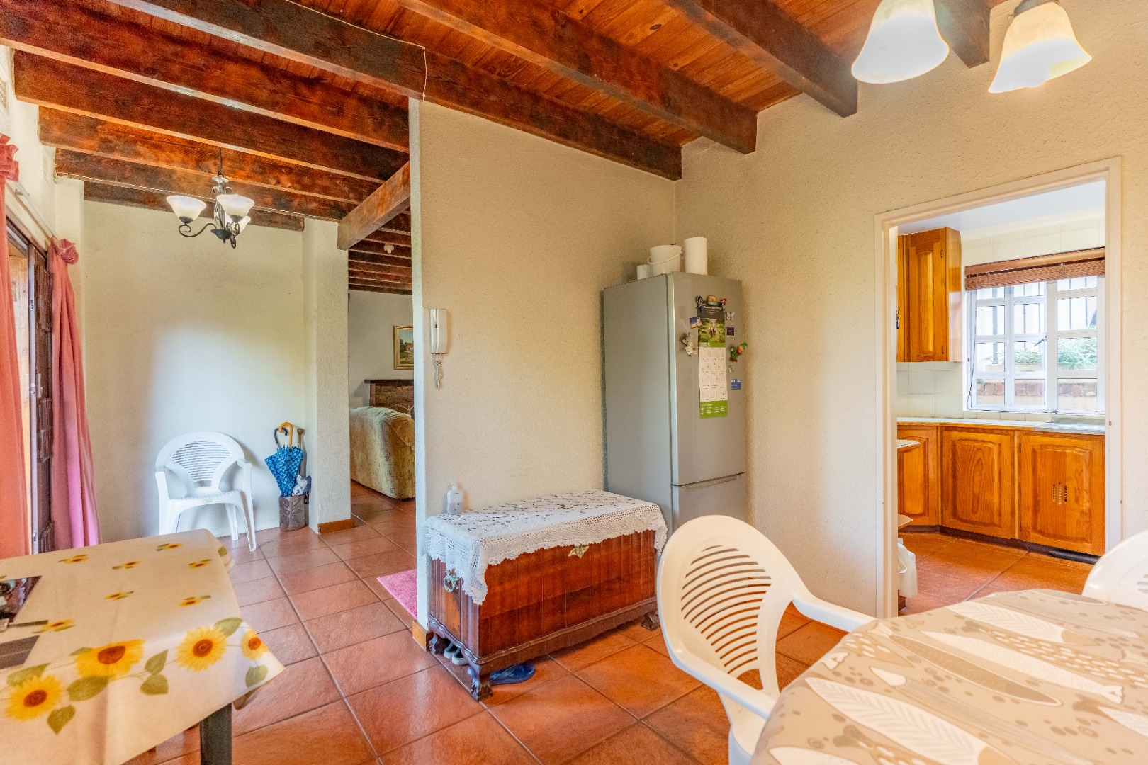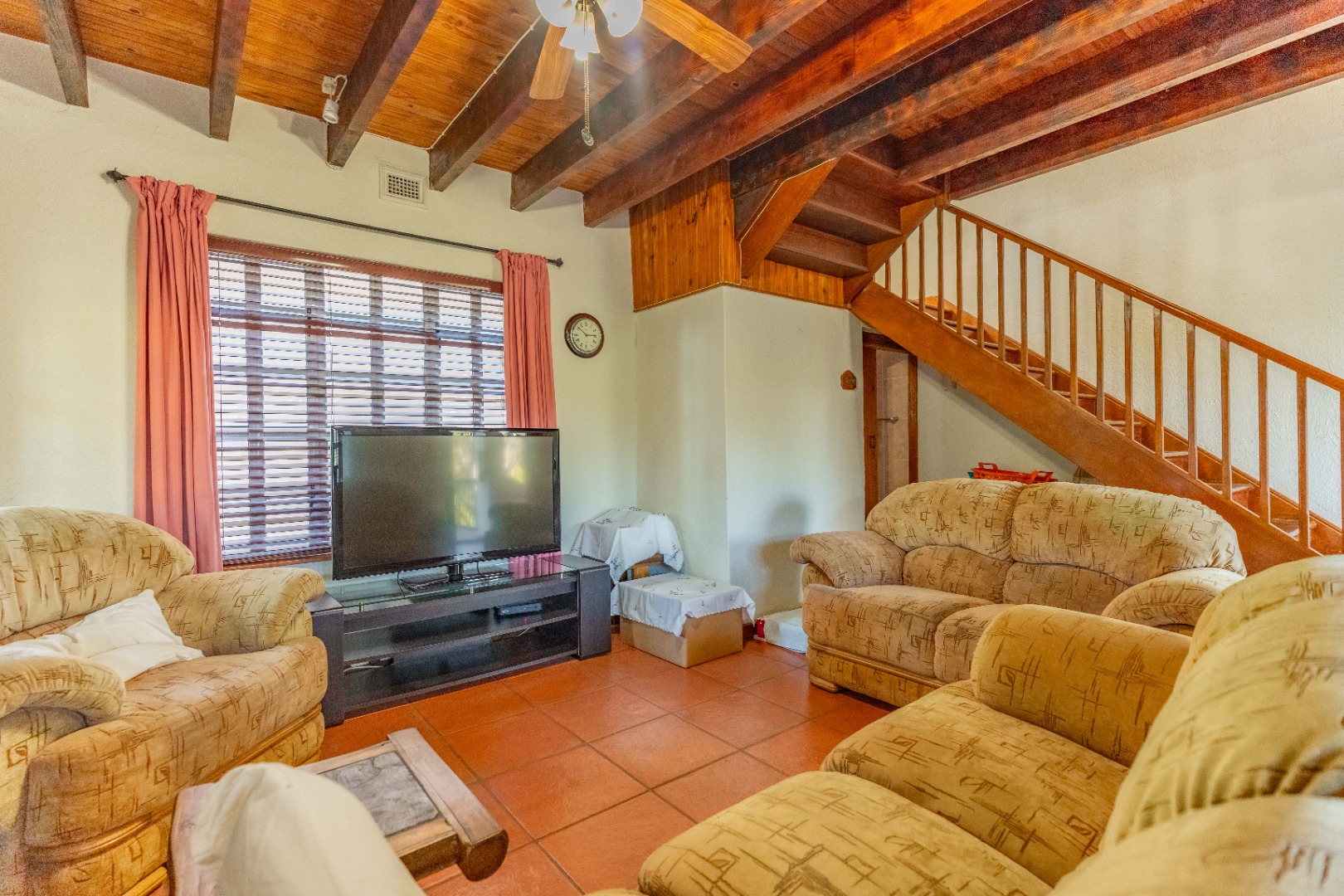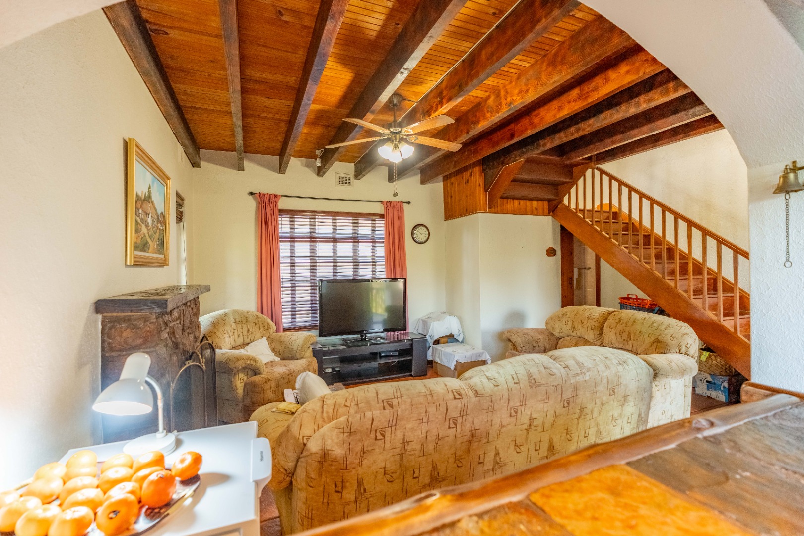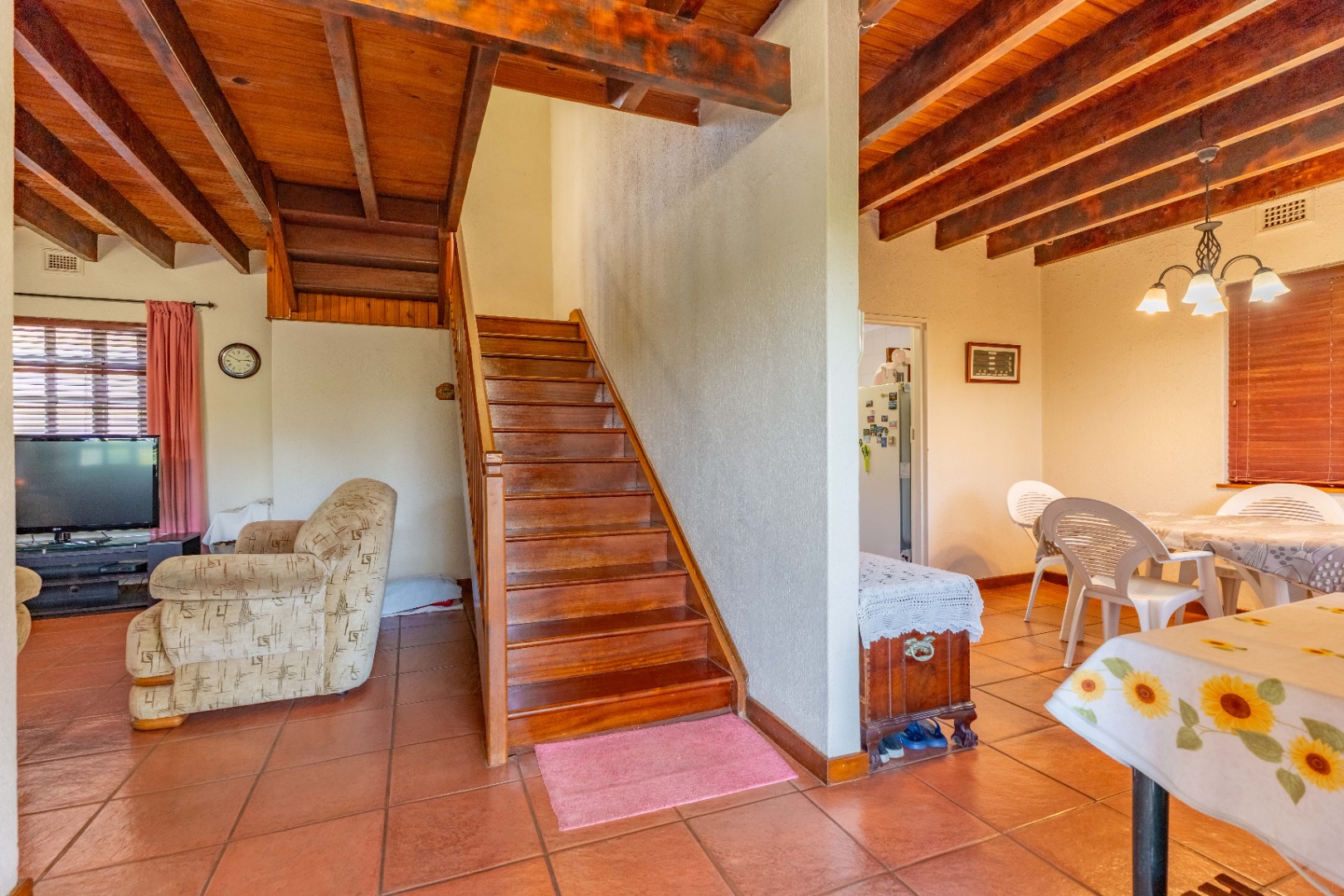 Nestled within a quaint English-style complex in the heart of Assagay, this spacious and well-kept 3-bedroom duplex offers both comfort and character. The layout is thoughtfully designed to suit modern living while retaining a warm, homely charm. Downstairs, an open-plan lounge and dining area flows effortlessly onto a wooden deck through classic French doors - perfect for entertaining or relaxing. A cosy fireplace and a built-in bar nook just off the lounge plus guest loo under the stairs add a touch of charm and functionality to the space. The kitchen is well fitted with solid cupboards and good amount of storage space.