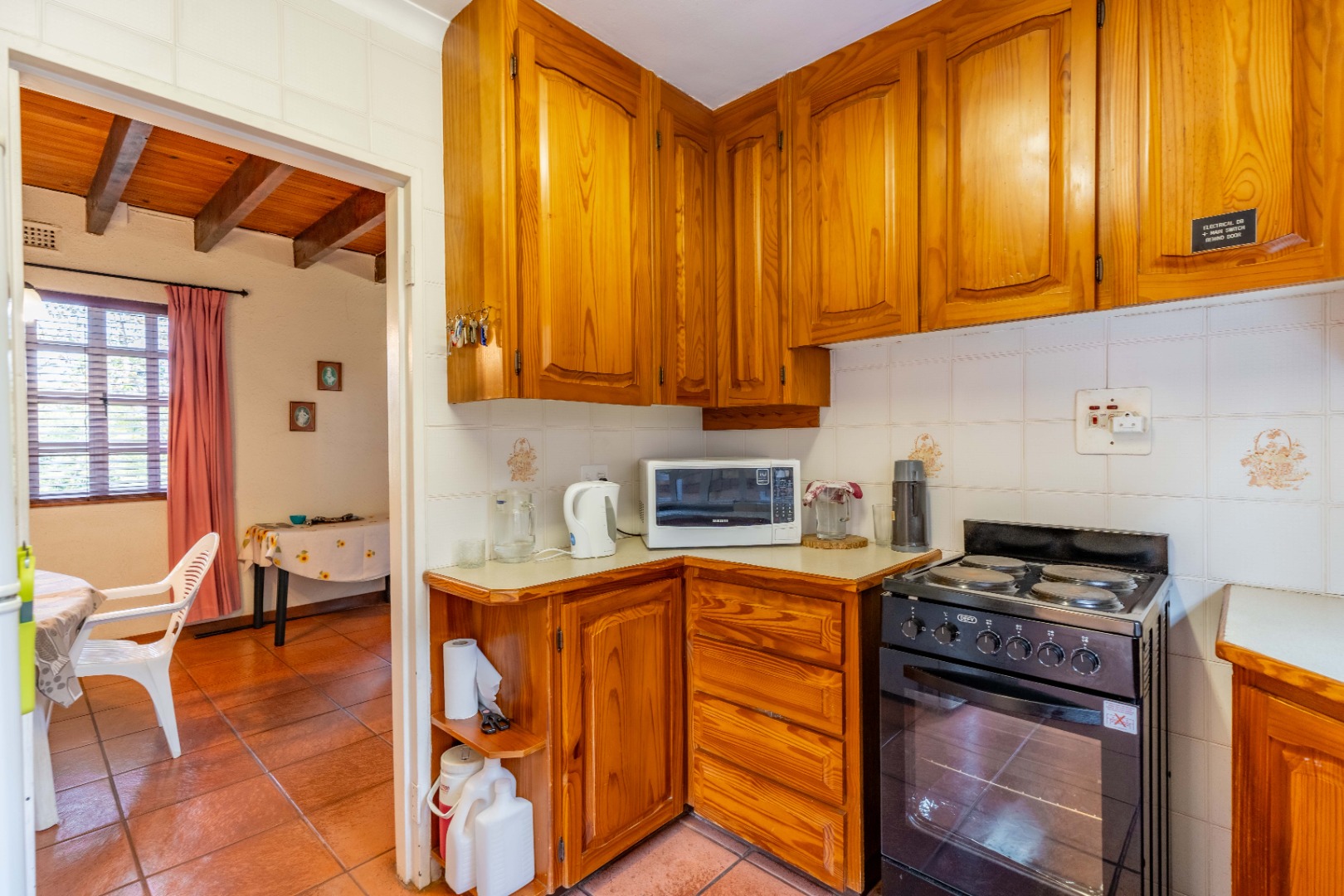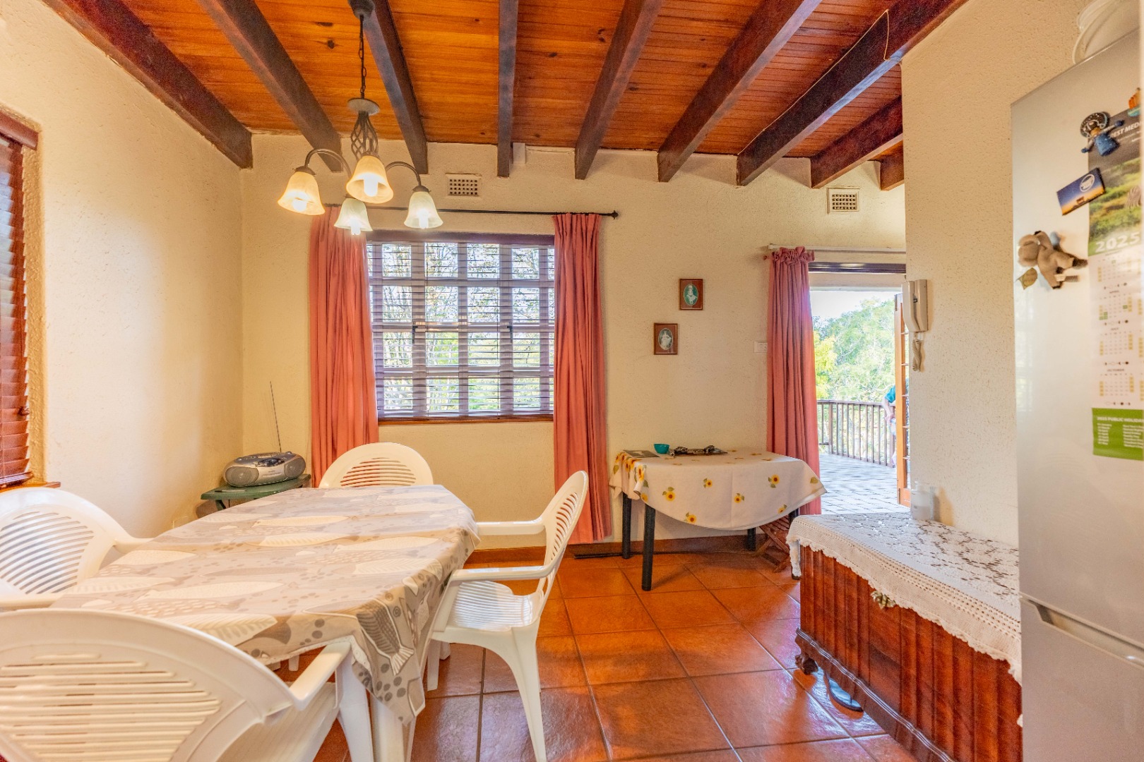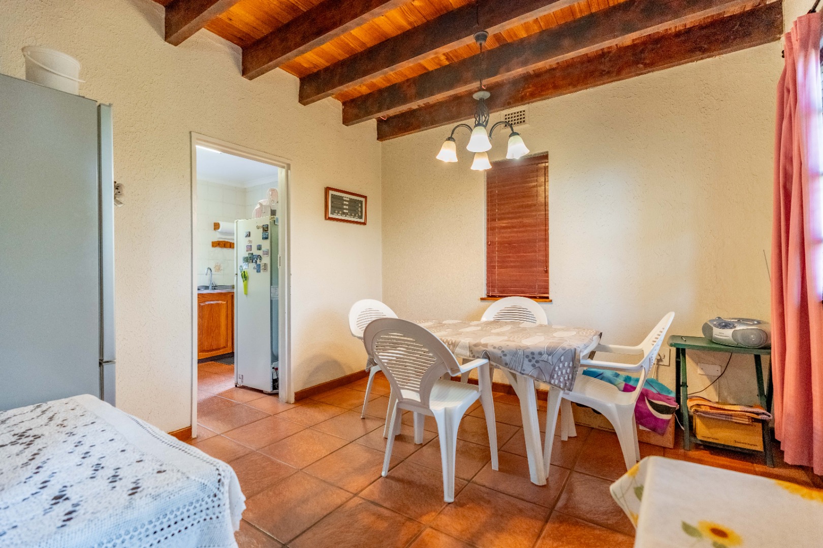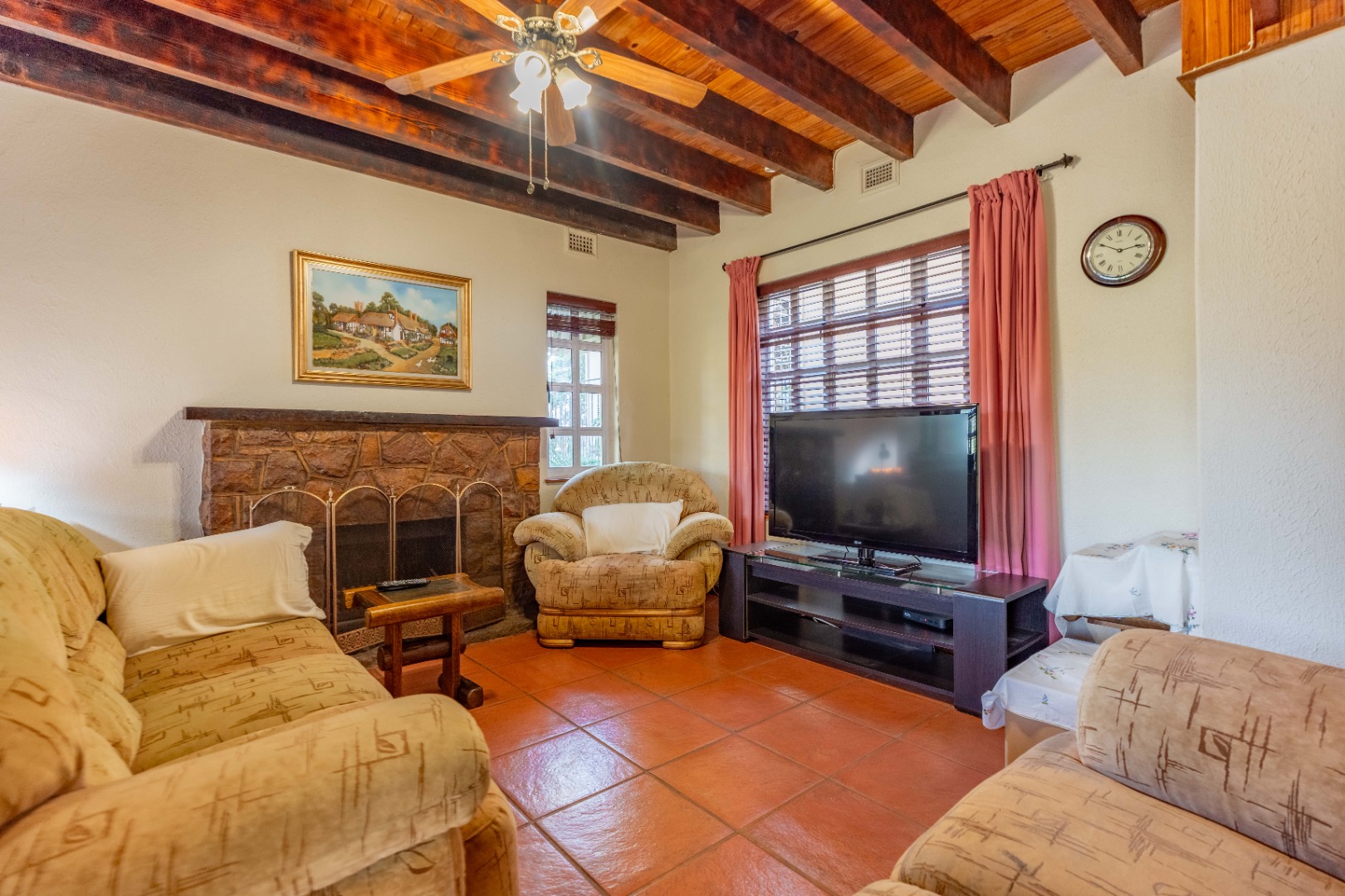 Nestled within a quaint English-style complex in the heart of Assagay, this spacious and well-kept 3-bedroom duplex offers both comfort and character. The layout is thoughtfully designed to suit modern living while retaining a warm, homely charm. Downstairs, an open-plan lounge and dining area flows effortlessly onto a wooden deck through classic French doors - perfect for entertaining or relaxing. A cosy fireplace and a built-in bar nook just off the lounge plus guest loo under the stairs add a touch of charm and functionality to the space. The kitchen is well fitted with solid cupboards and good amount of storage space.