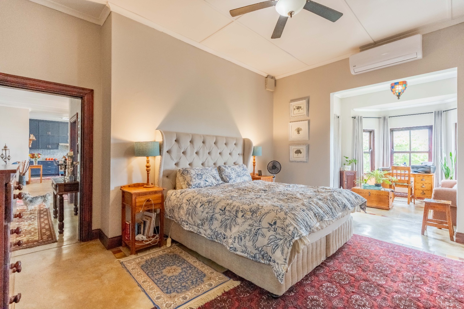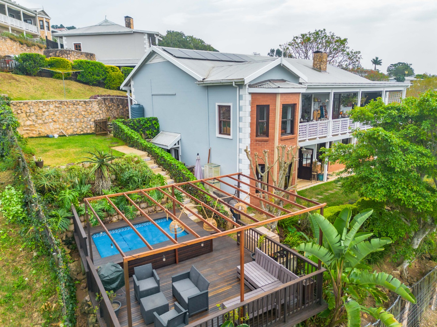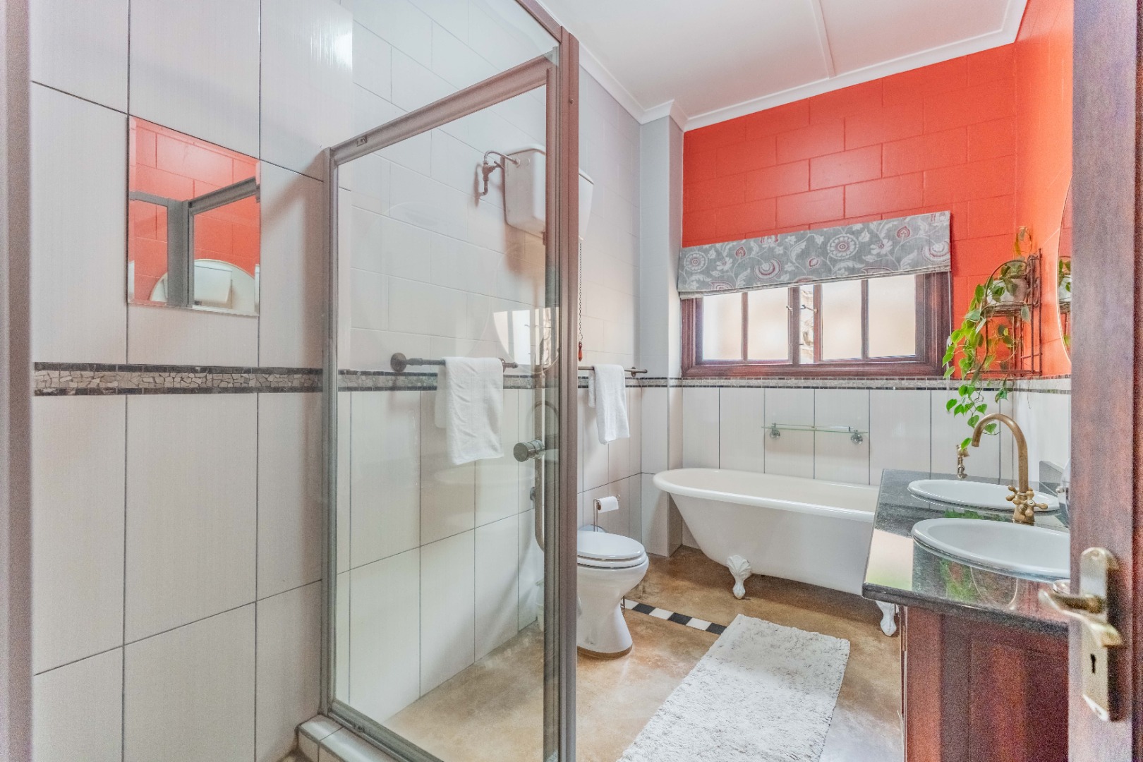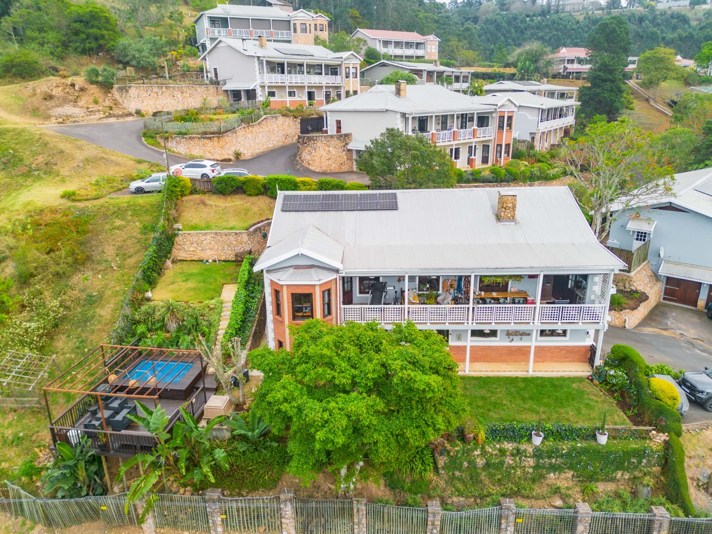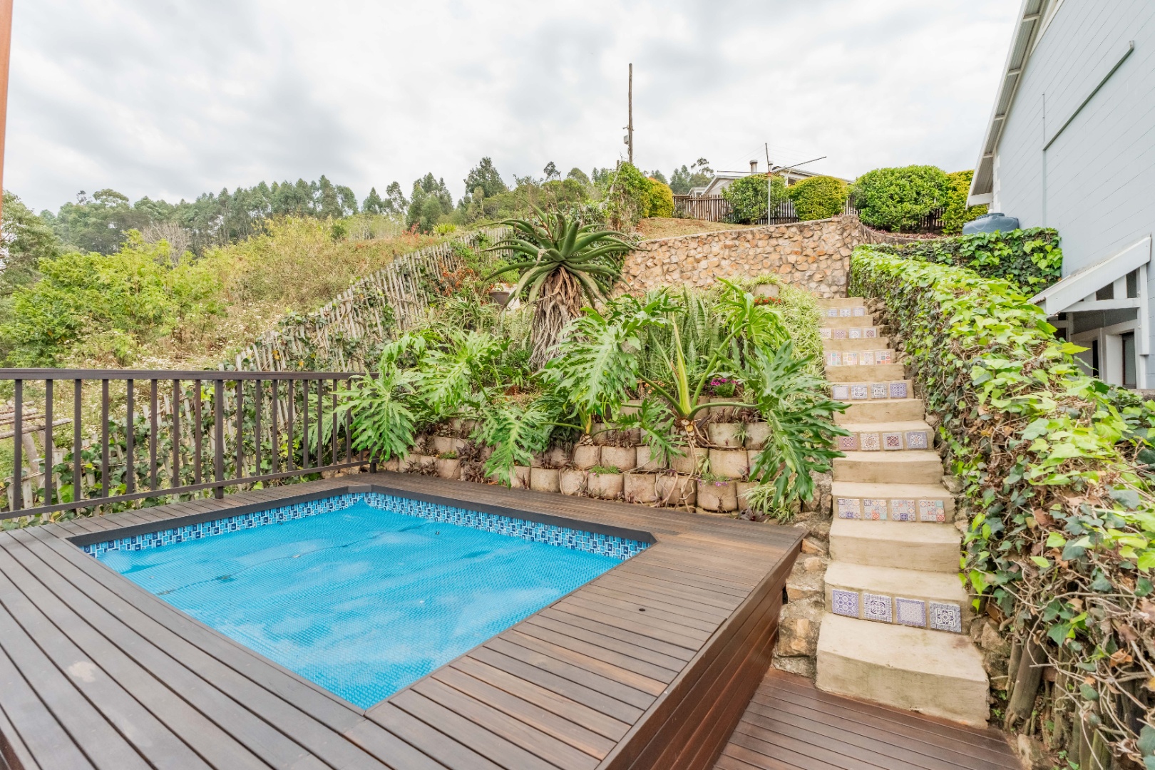 An expansive entertainment deck opens out to the garden, where a private splash pool awaits. The pool is fitted with an 8KVA inverter heating system, ensuring year-round enjoyment. This home has been designed with sustainability in mind, featuring a full 8KVA solar system, two 5KVA lithium batteries, and 12 sun panels — giving you peace of mind during load-shedding and dramatically reducing running costs. A 1,000-litre rainwater harvesting tank adds another layer of eco-friendly living.