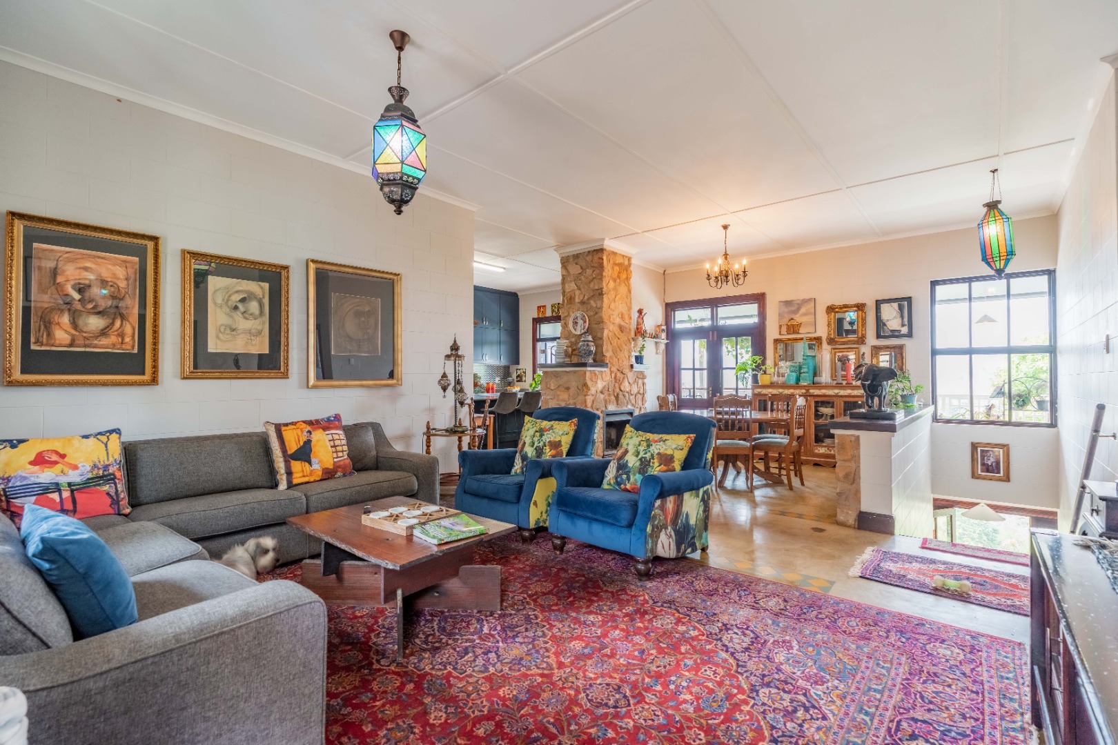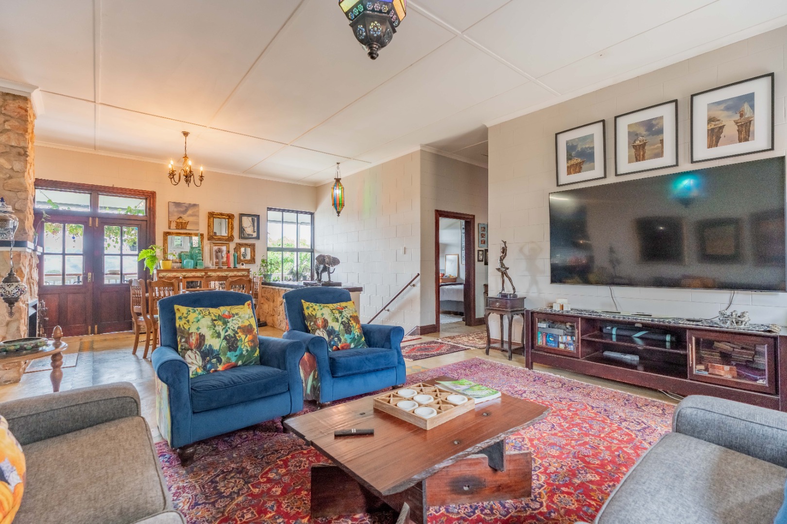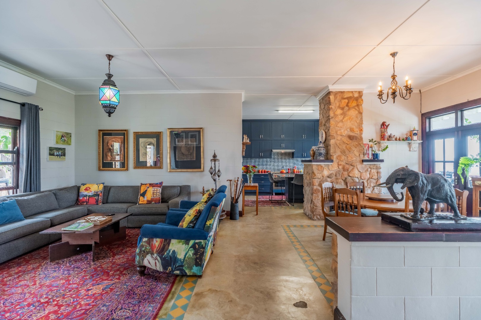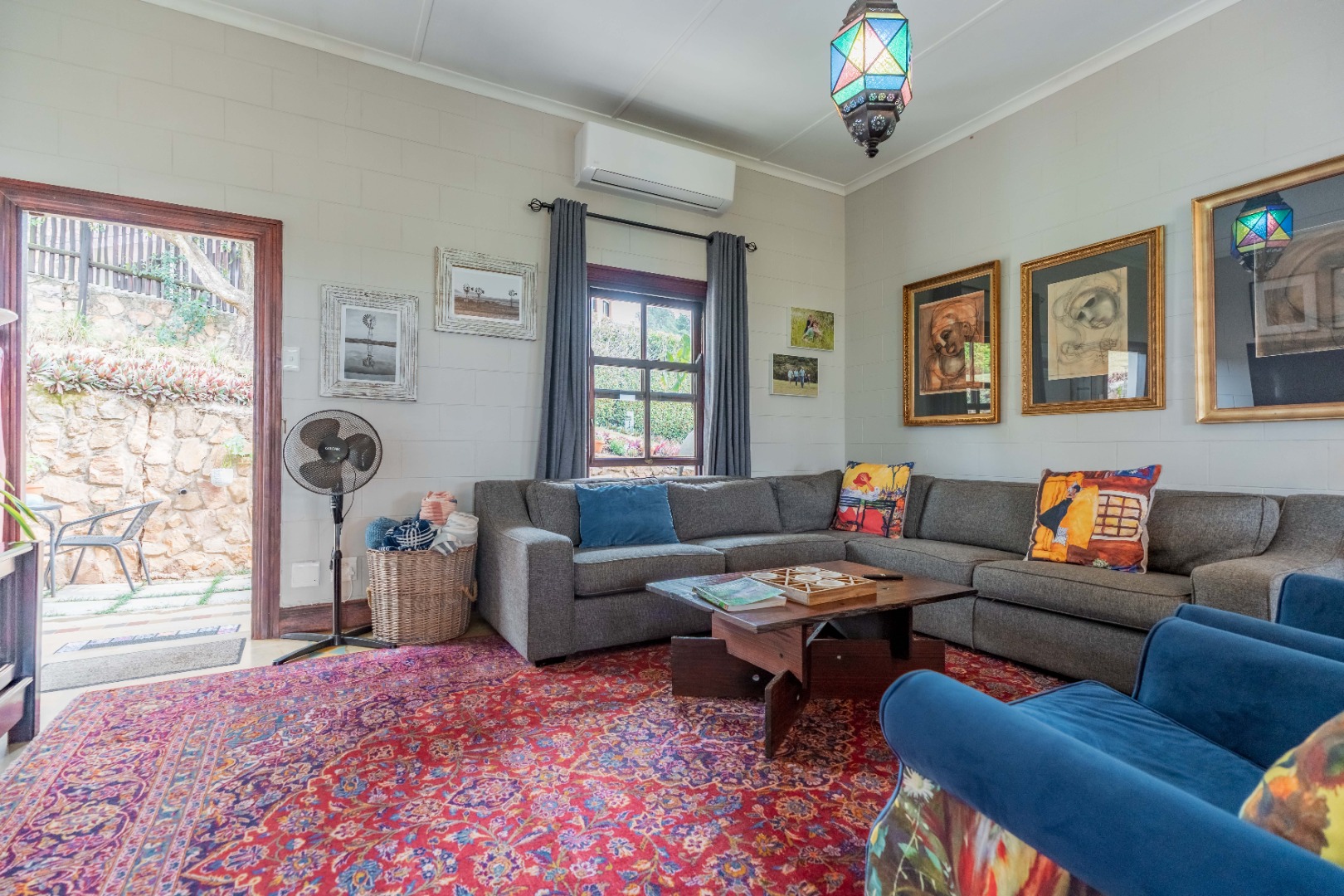 An expansive entertainment deck opens out to the garden, where a private splash pool awaits. The pool is fitted with an 8KVA inverter heating system, ensuring year-round enjoyment. This home has been designed with sustainability in mind, featuring a full 8KVA solar system, two 5KVA lithium batteries, and 12 sun panels — giving you peace of mind during load-shedding and dramatically reducing running costs. A 1,000-litre rainwater harvesting tank adds another layer of eco-friendly living.