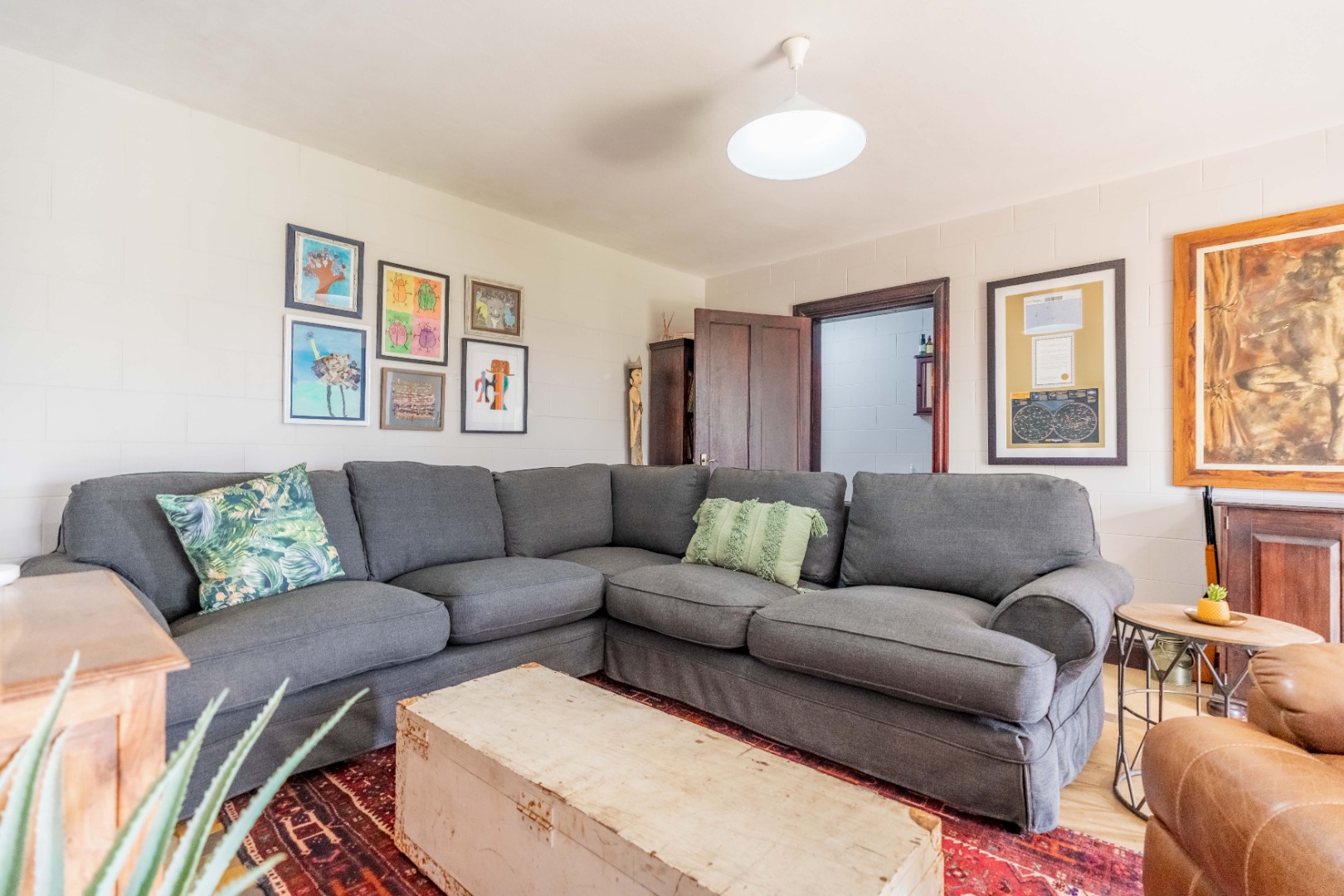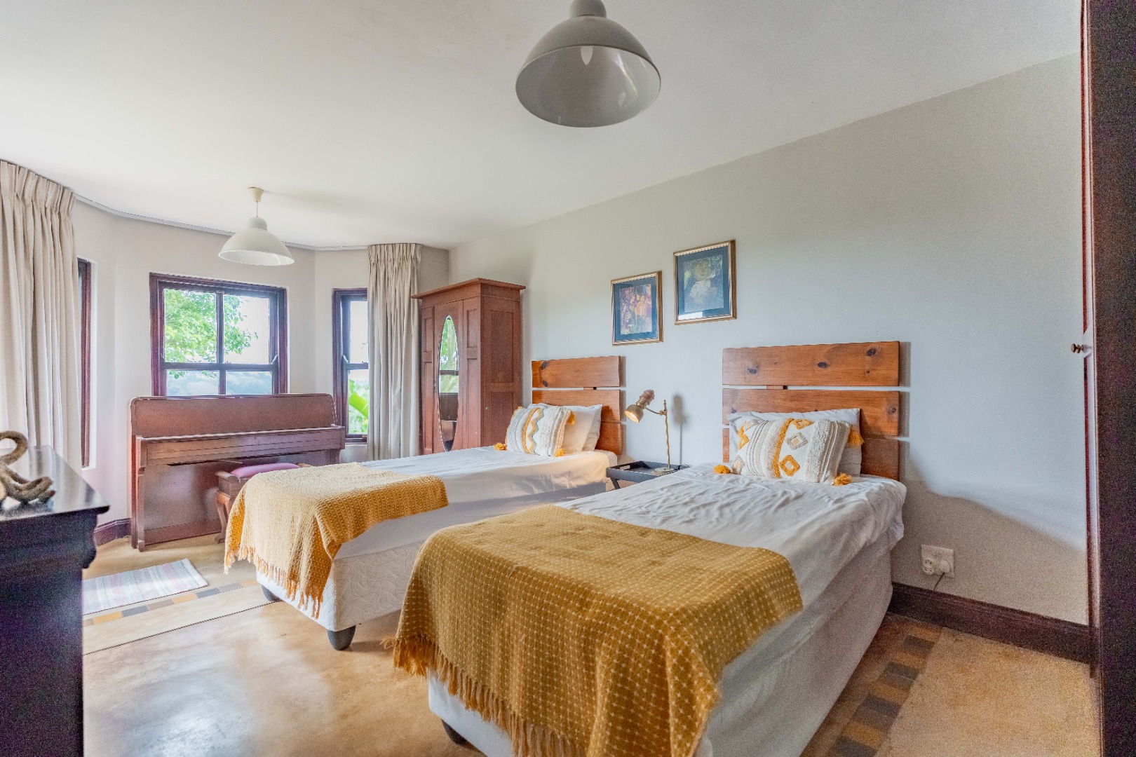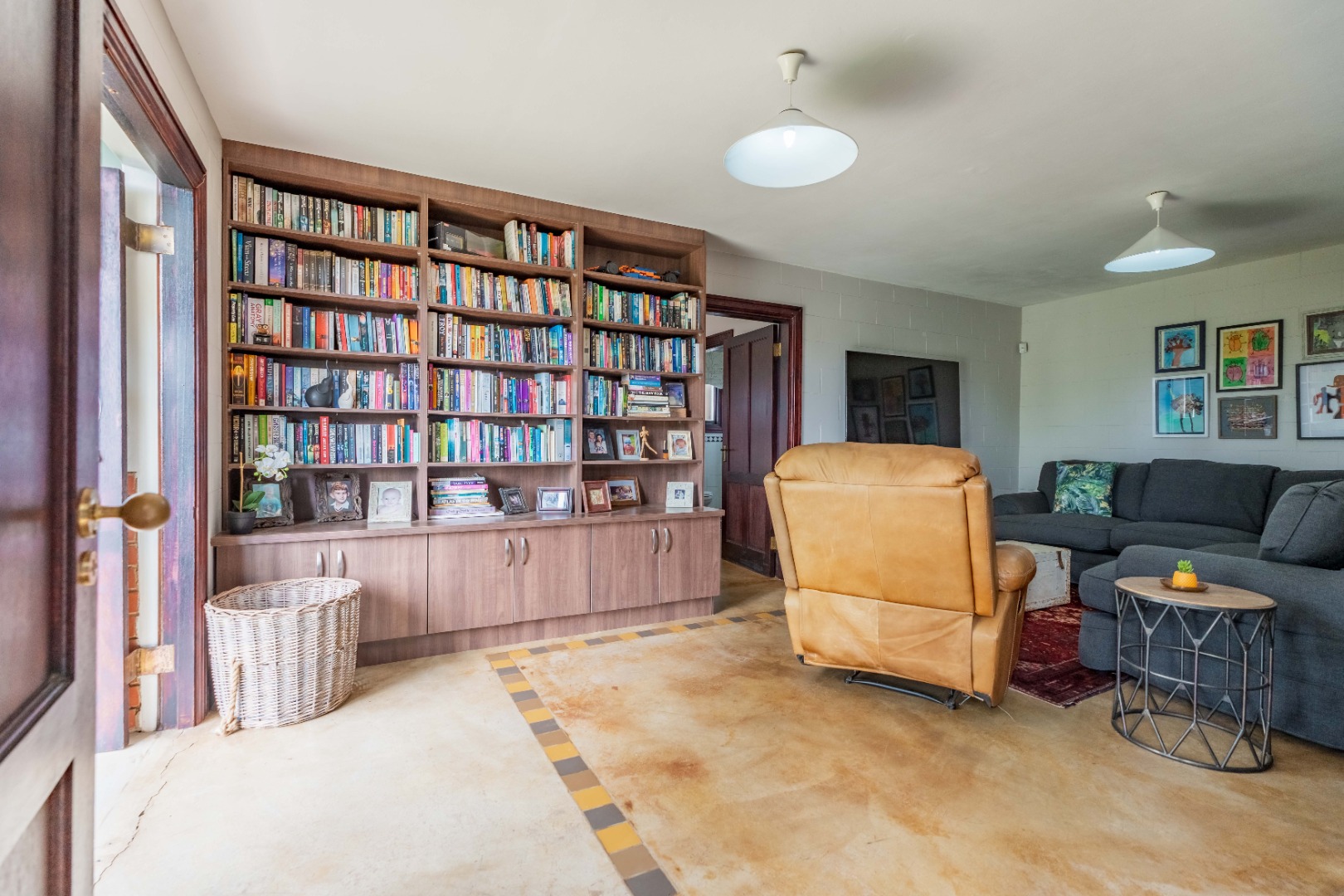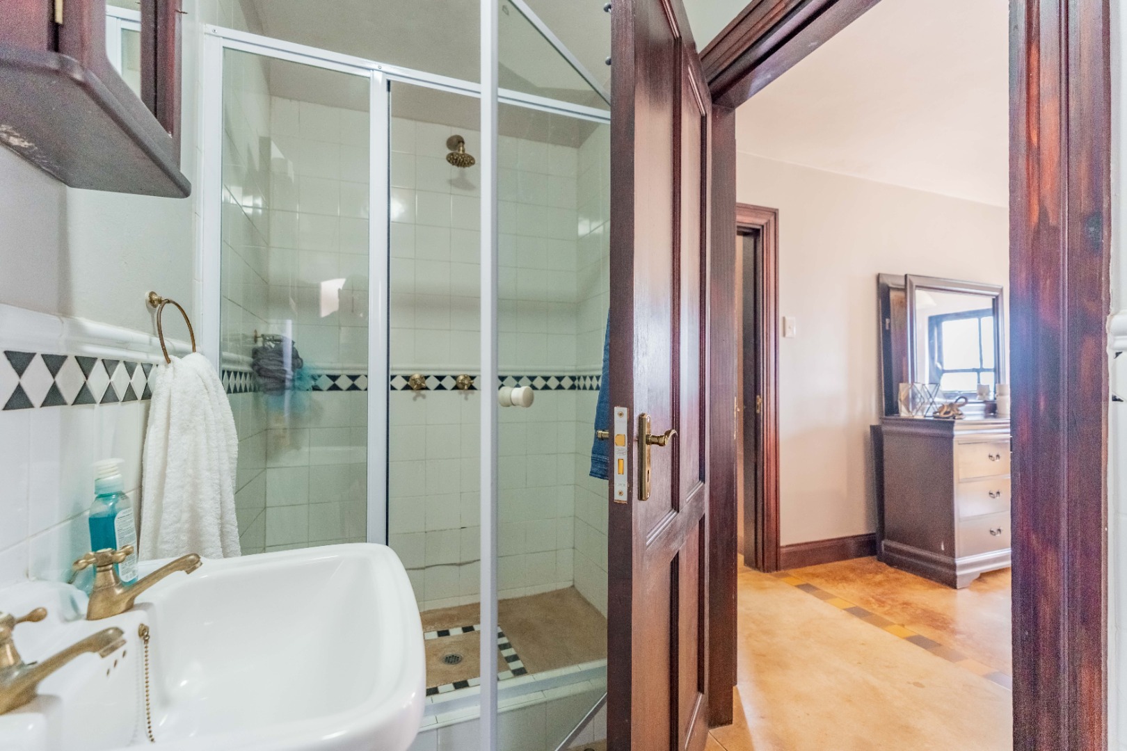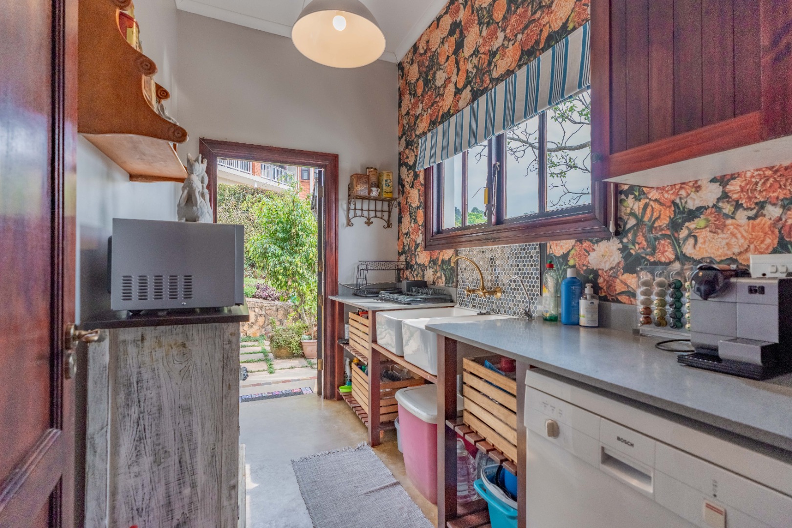 An expansive entertainment deck opens out to the garden, where a private splash pool awaits. The pool is fitted with an 8KVA inverter heating system, ensuring year-round enjoyment. This home has been designed with sustainability in mind, featuring a full 8KVA solar system, two 5KVA lithium batteries, and 12 sun panels — giving you peace of mind during load-shedding and dramatically reducing running costs. A 1,000-litre rainwater harvesting tank adds another layer of eco-friendly living.