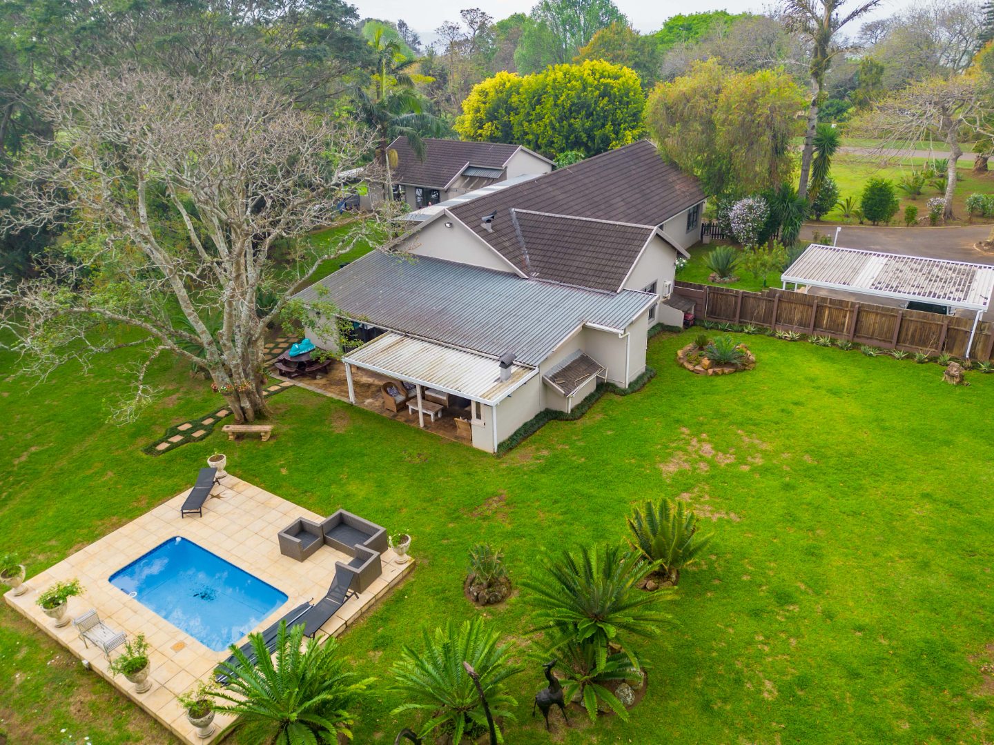 Spacious 4 bedrooms, 2 bathrooms, and a kitchen and living area built for entertaining — complete with a built-in bar and braai overlooking the sparkling pool.