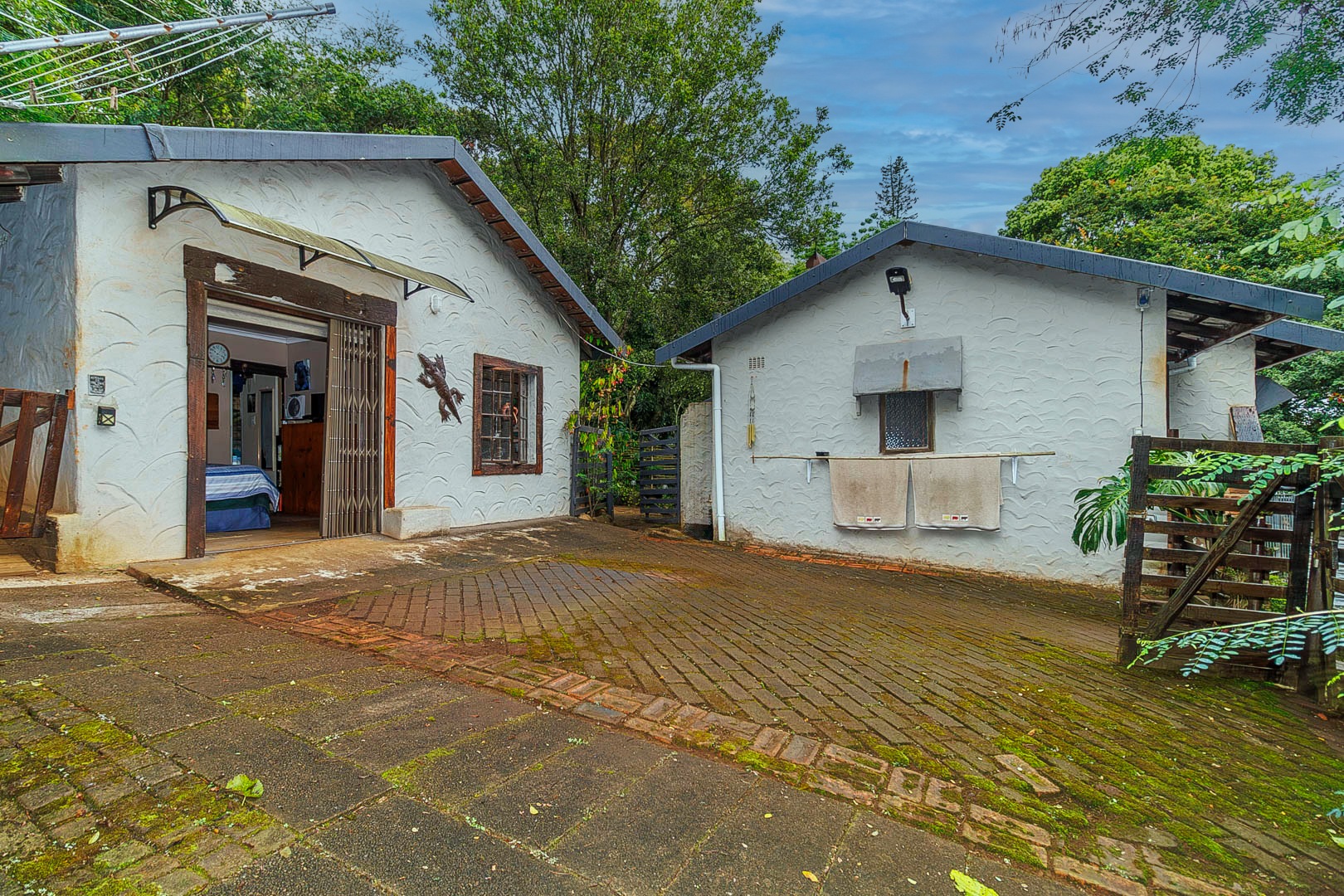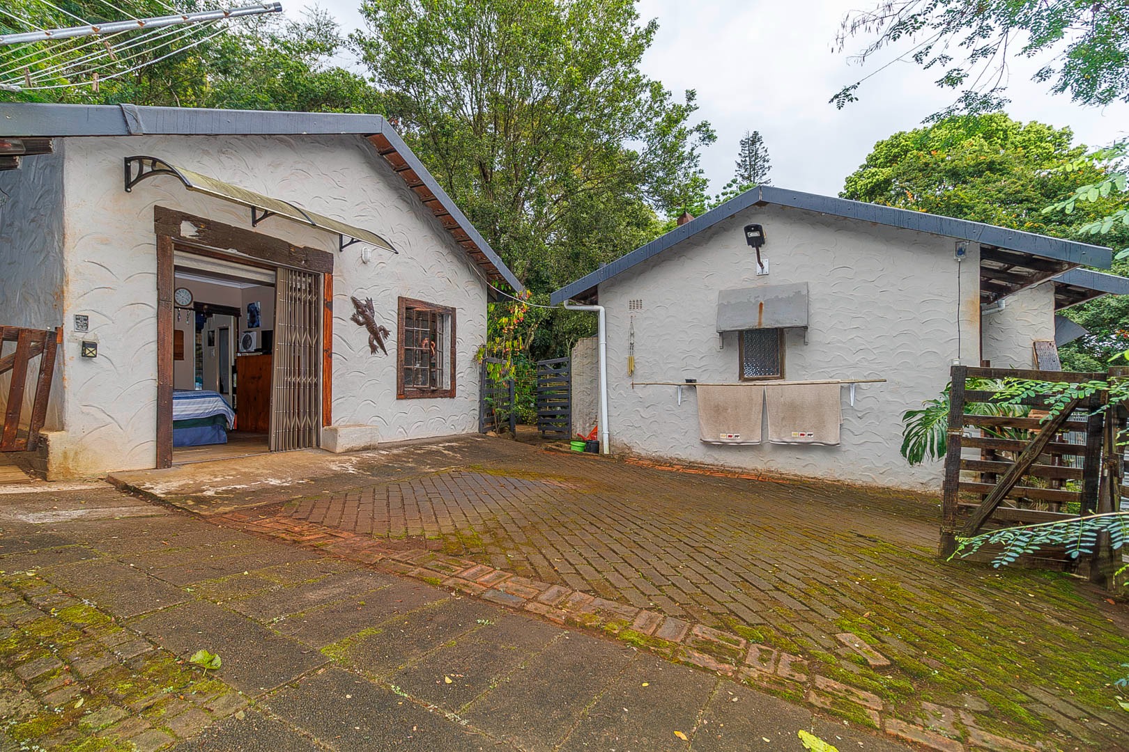 Set on expansive grounds shaded by beautiful indigenous trees and shrubs, the property provides a serene, park-like setting with plenty of level land for children and animals to play. The layout also offers excellent potential for additional cottages or dwellings.