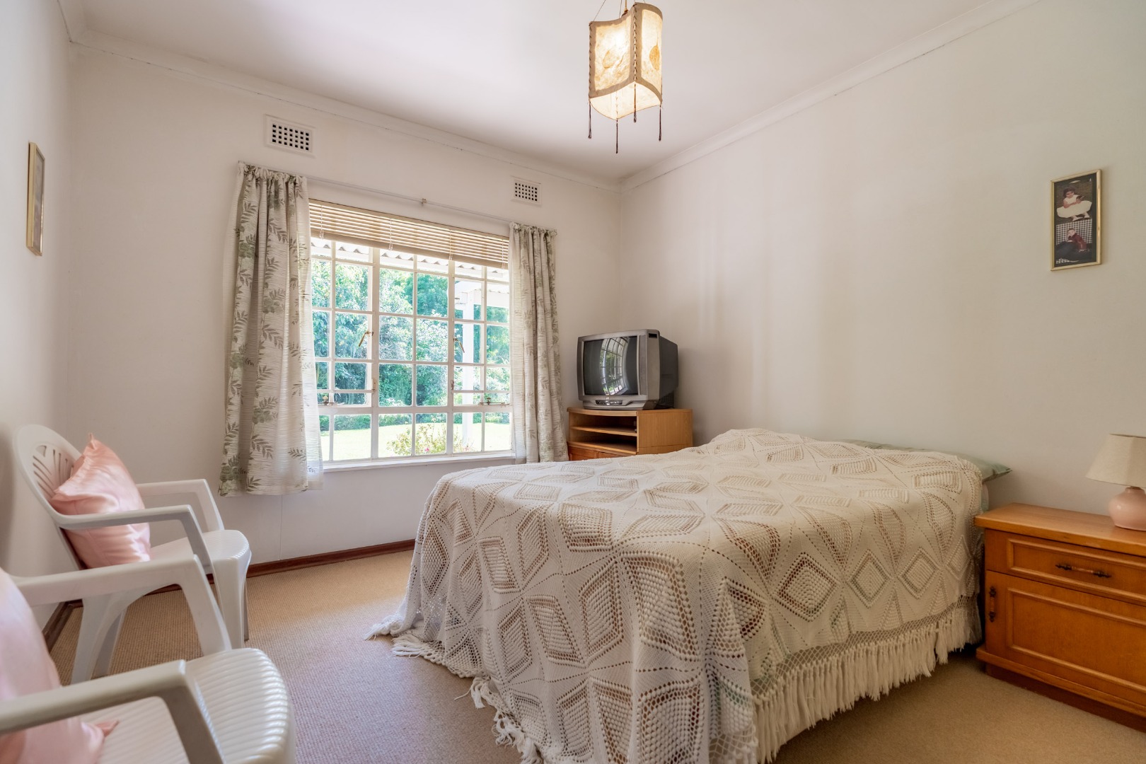 Lovely size, open plan lounge, dining room with doors out to closed sun room overlooking pristine, well managed garden at Body Corporate expense.