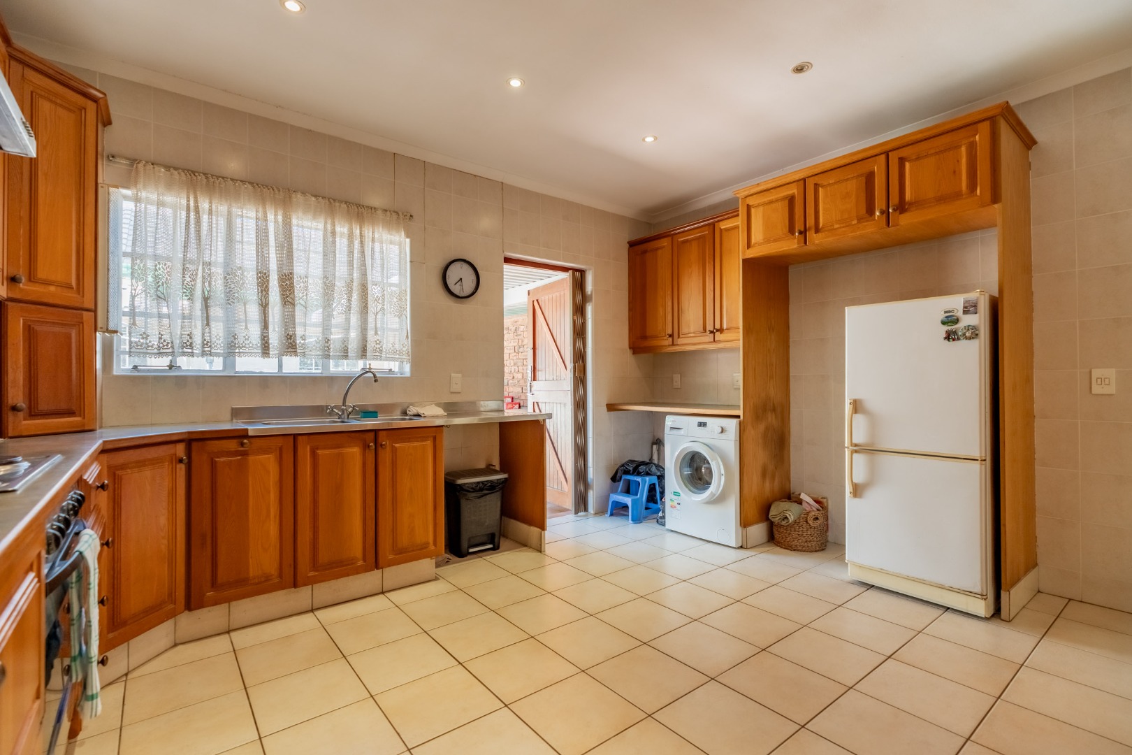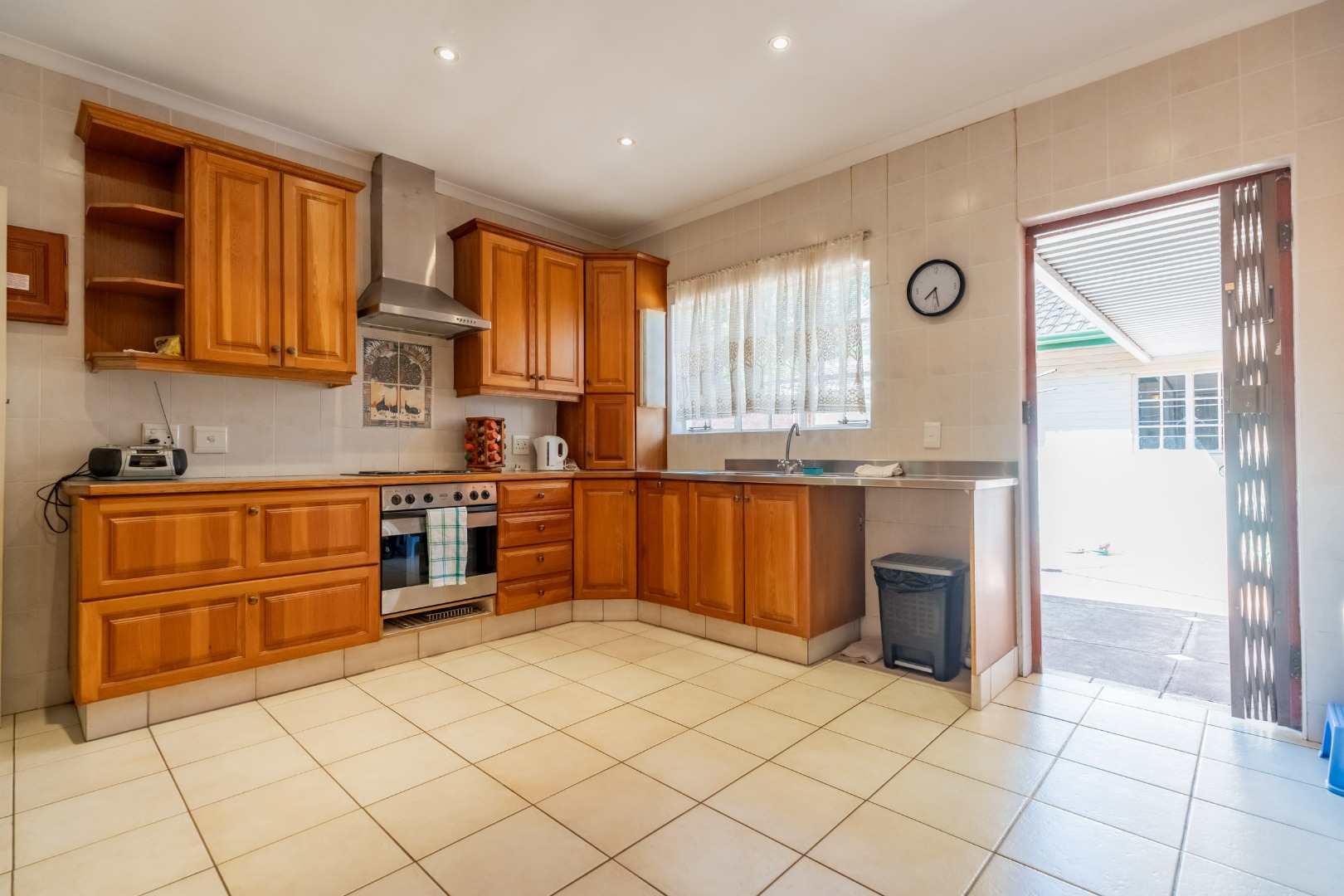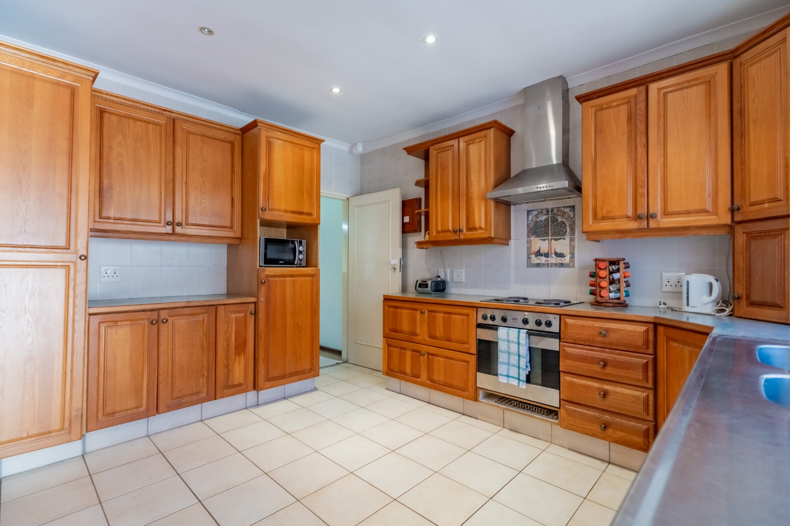 Ideal kitchen with quality cupboards and work space.