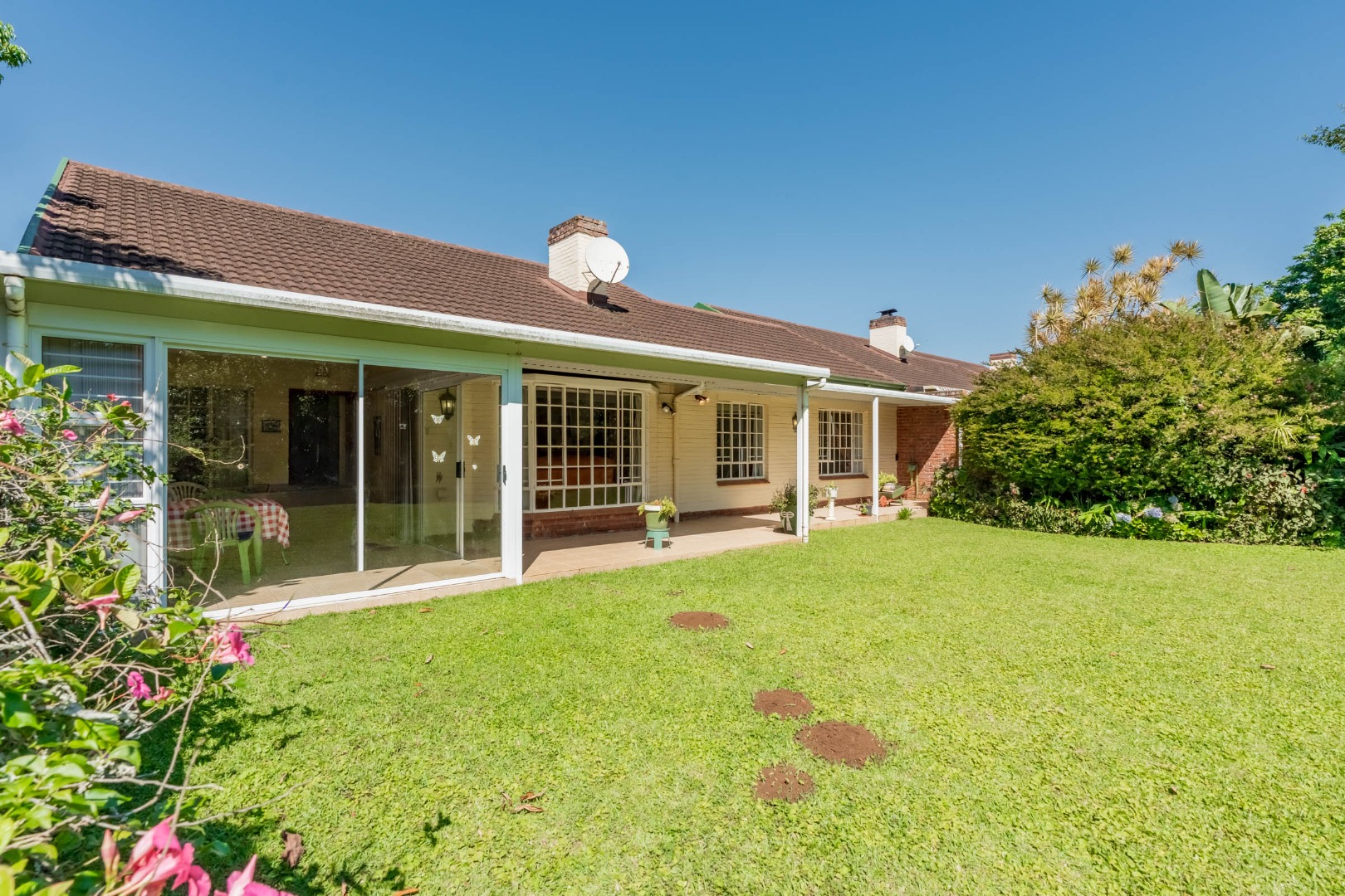 Lovely size, open plan lounge, dining room with doors out to closed sun room overlooking pristine, well managed garden at Body Corporate expense.