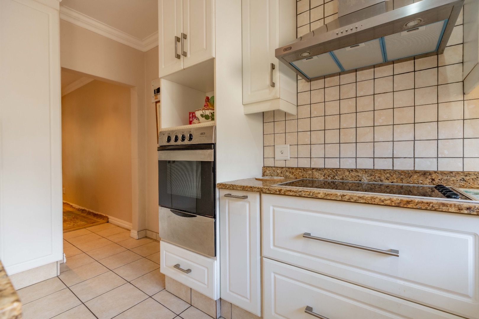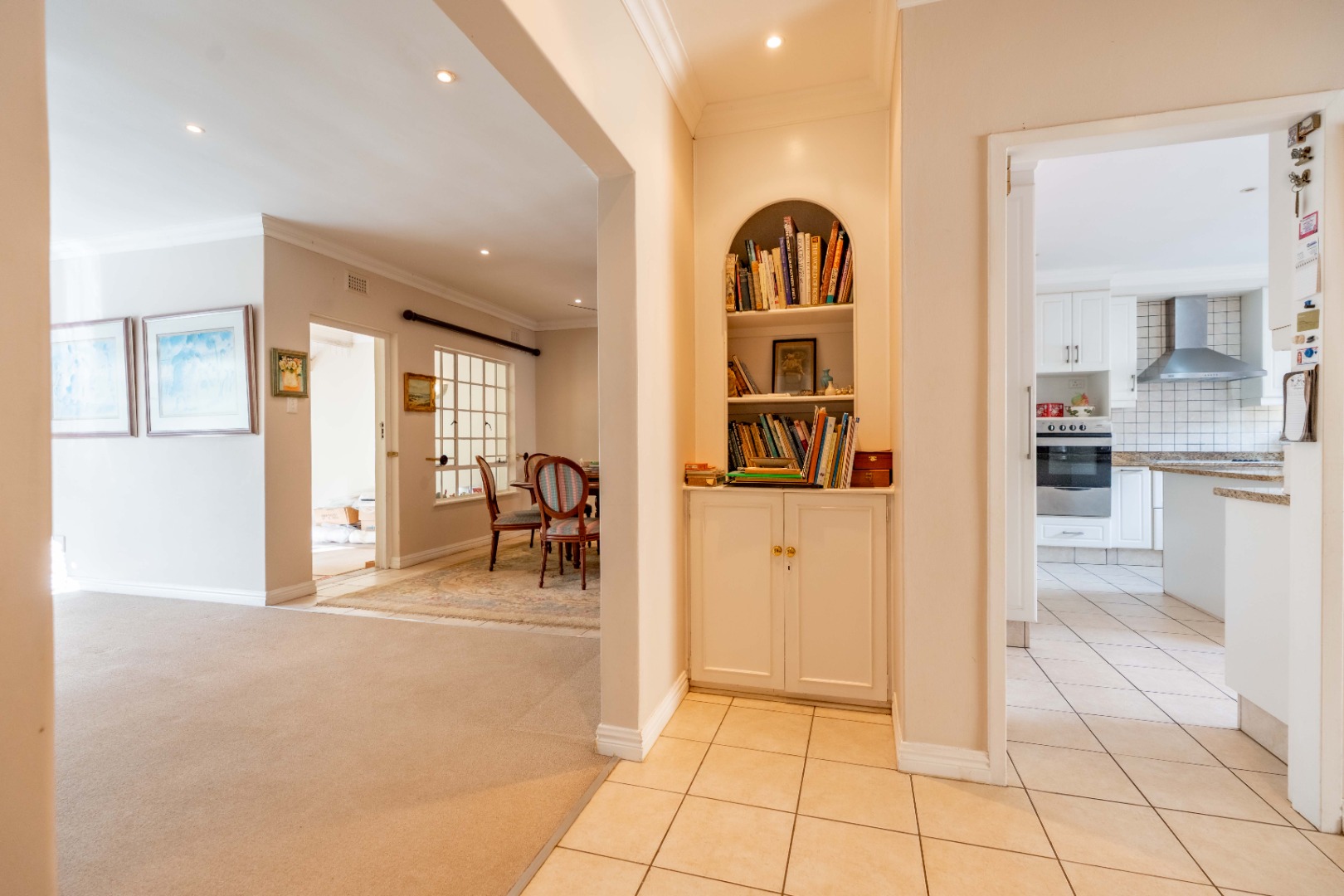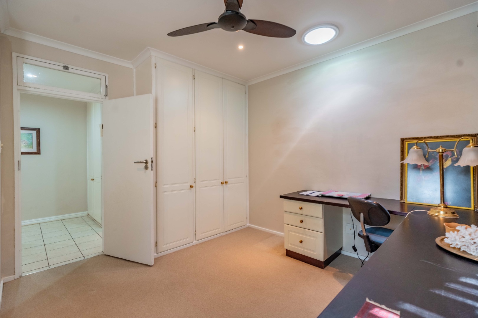 Down the passage are three bedrooms with built in cupboards. The 3rd bedroom with skylight could double as a study with it's built-in workstation and is large enough to accommodate a bed as well.