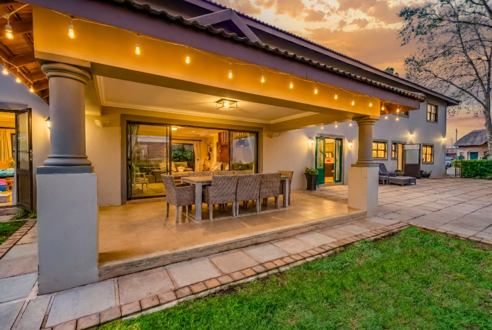 A striking solid wood staircase leads upstairs to a cosy pajama lounge, a palatial main bedroom with full en-suite bathroom and four additional bedrooms serviced by two bathrooms. The two end bedrooms and adjacent bathroom offer an easy conversion into a private flatlet or home office, with separate access already in place — ideal for extended family, guests or rental potential.