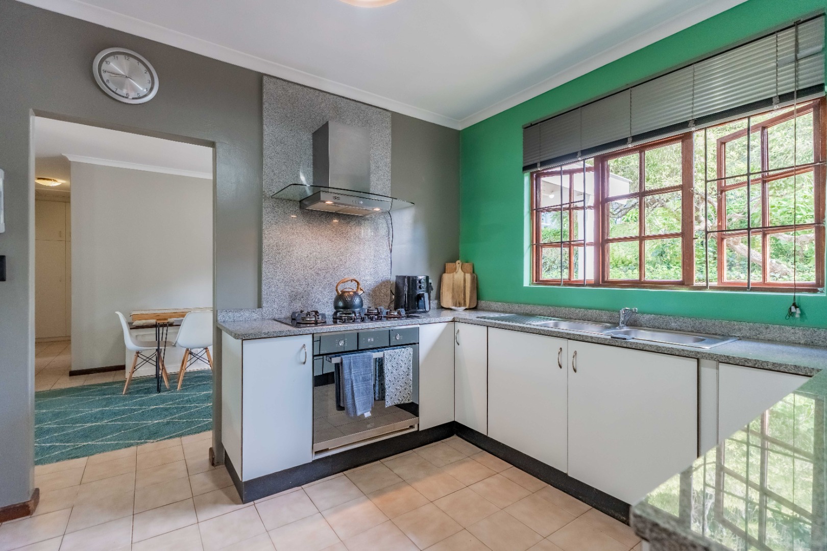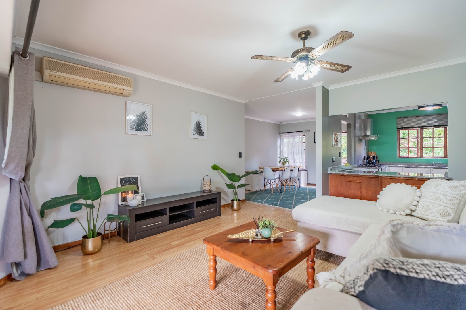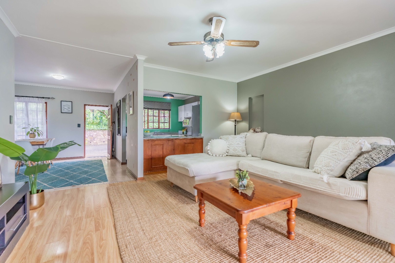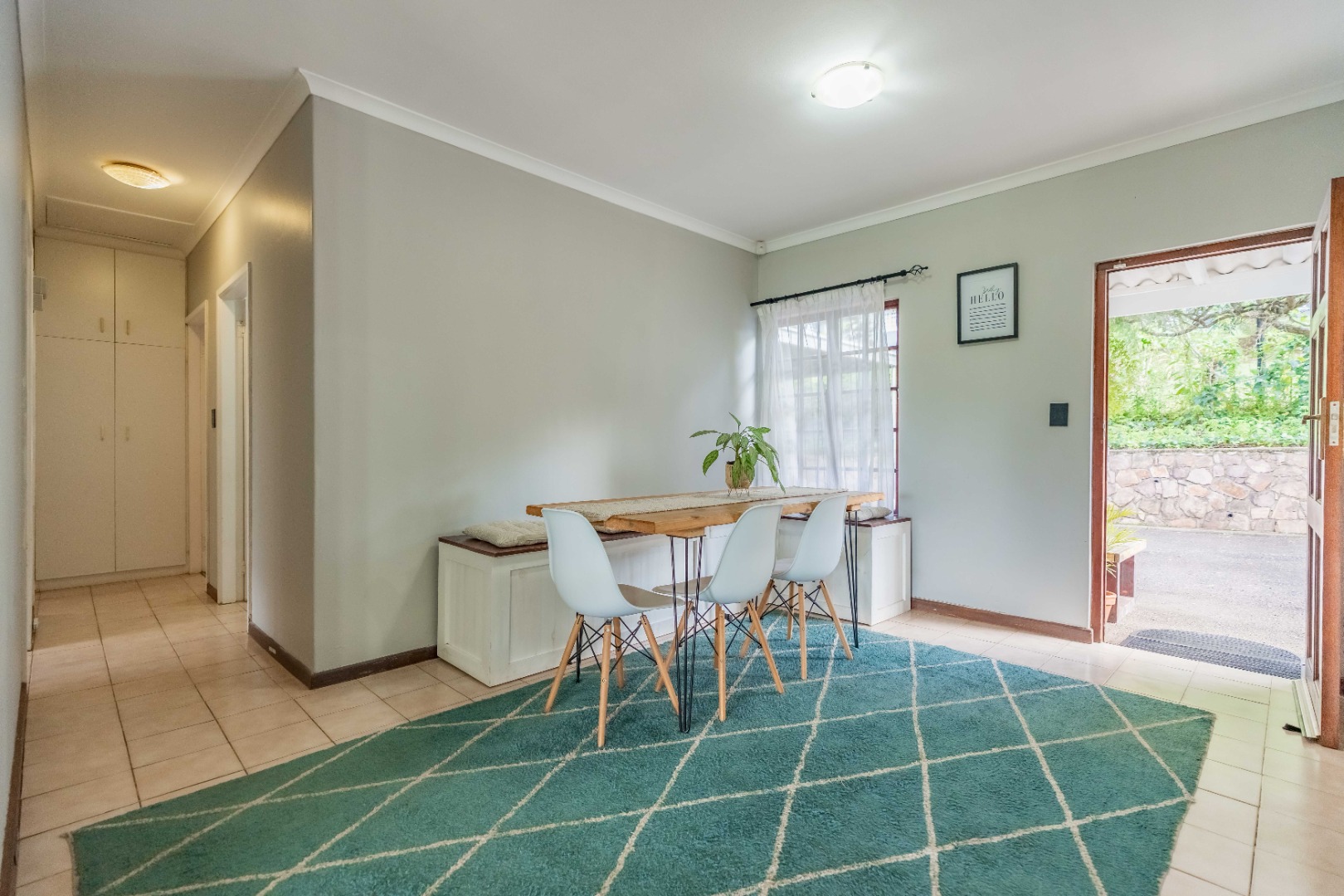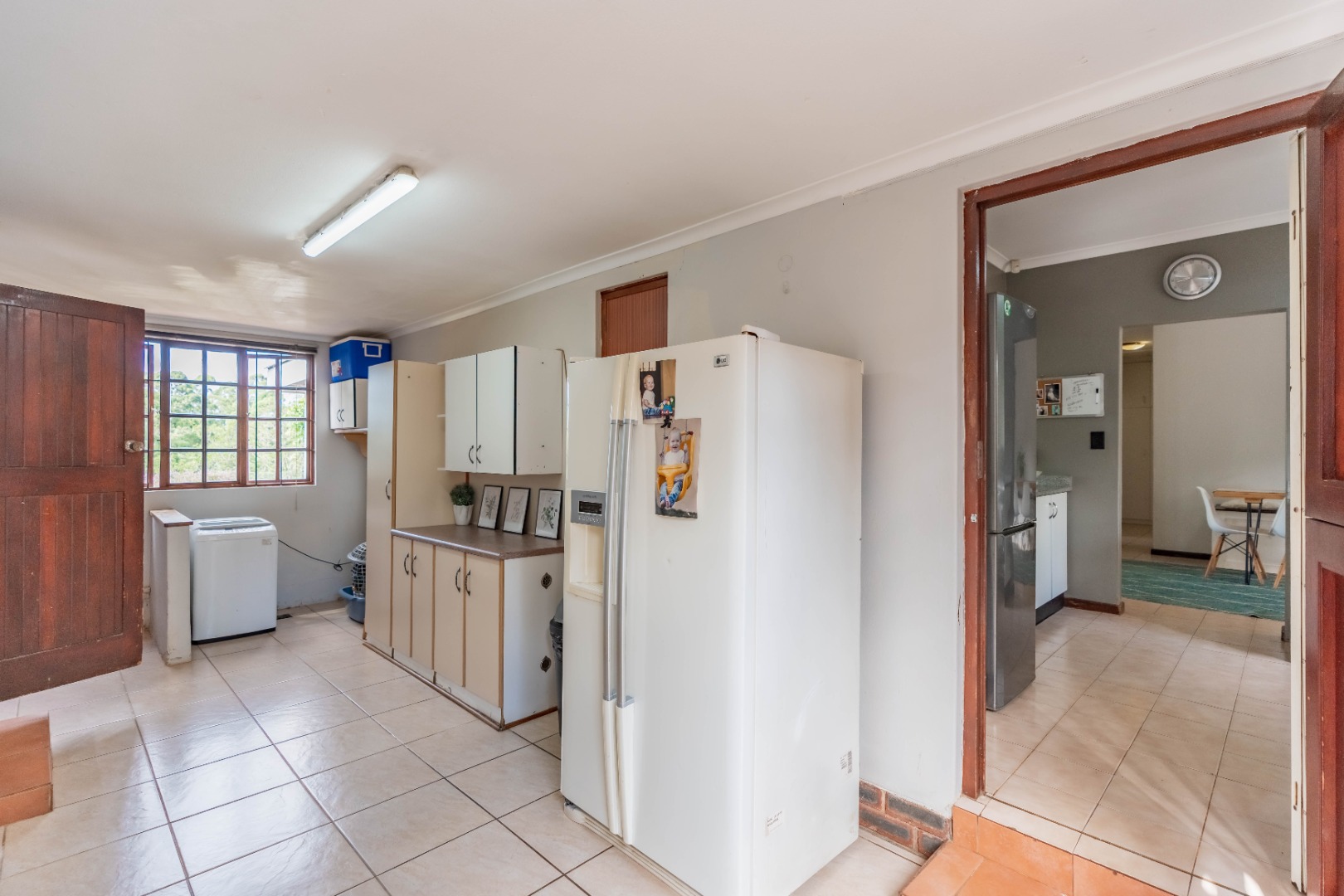 The home offers three well-proportioned bedrooms and two bathrooms, making it perfectly suited to comfortable family living. A separate laundry adds everyday convenience, while the inclusion of a staff bathroom enhances functionality.