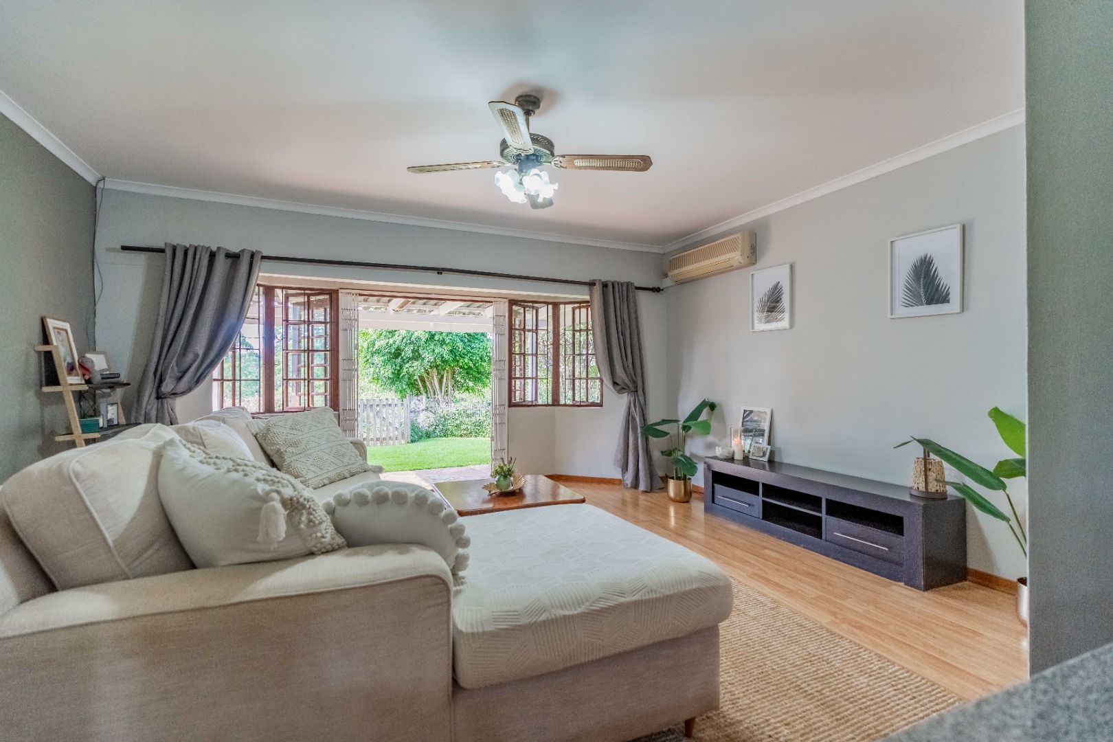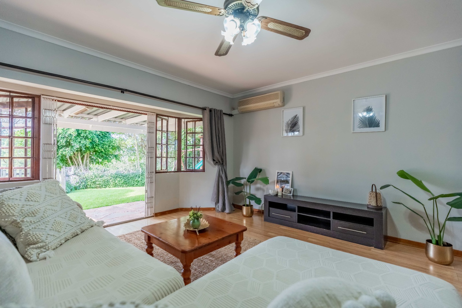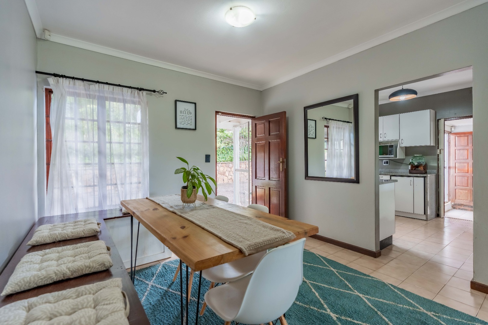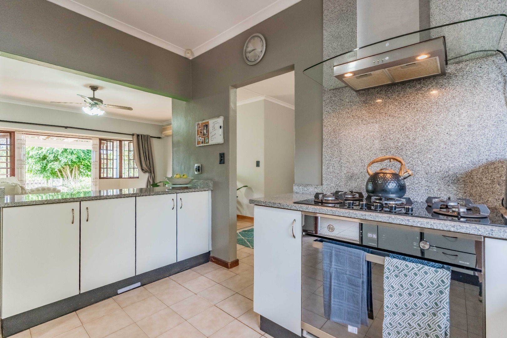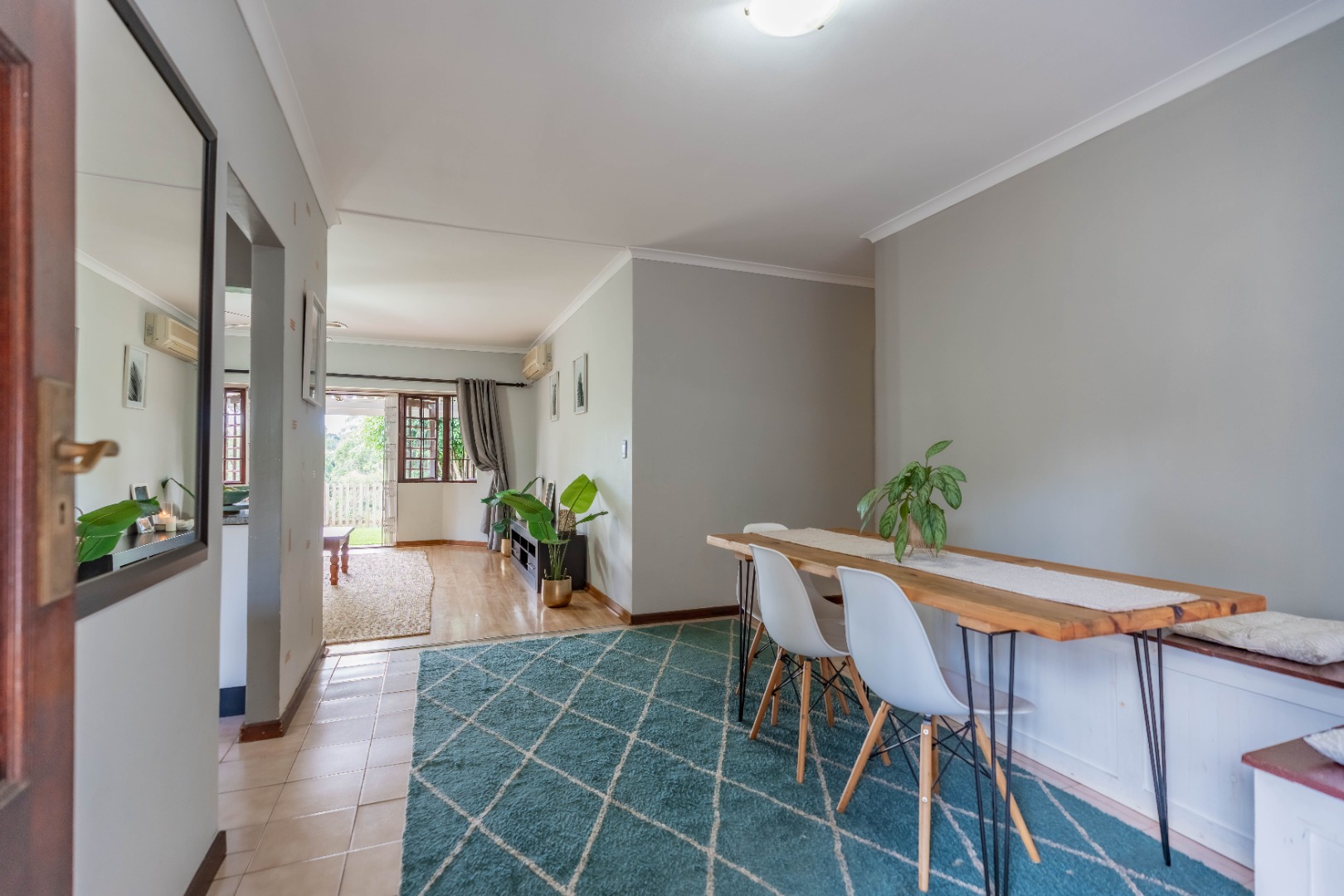 The home offers three well-proportioned bedrooms and two bathrooms, making it perfectly suited to comfortable family living. A separate laundry adds everyday convenience, while the inclusion of a staff bathroom enhances functionality.