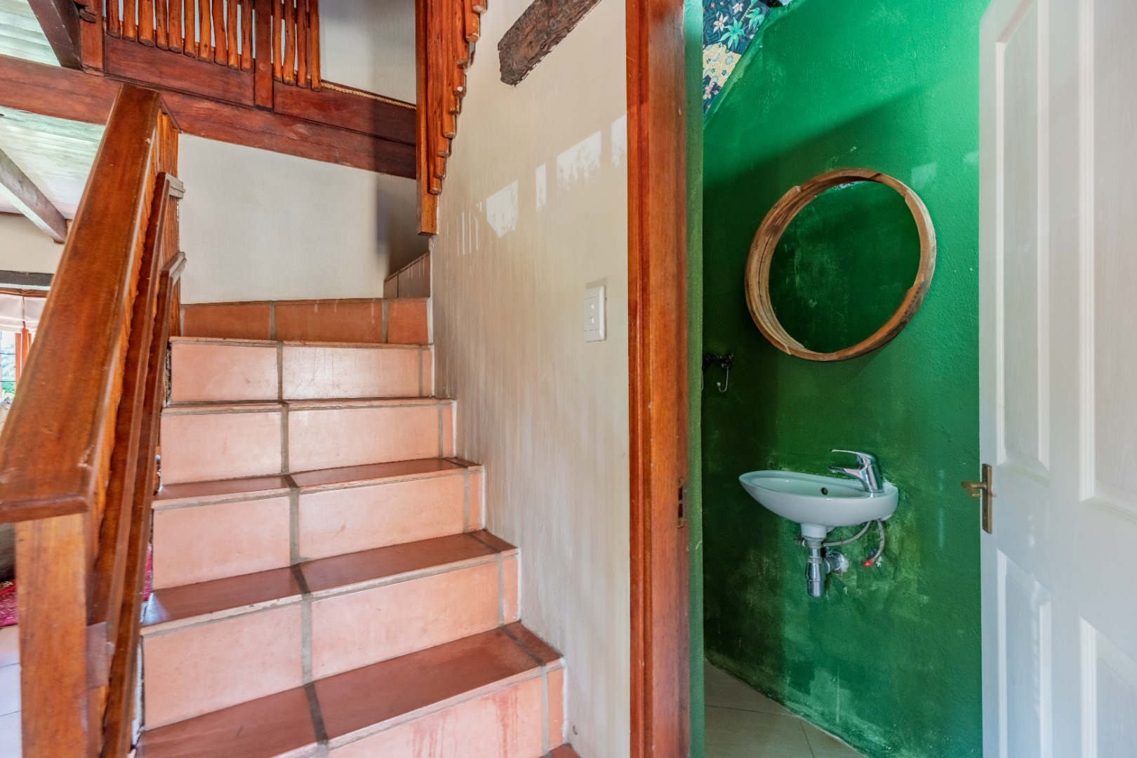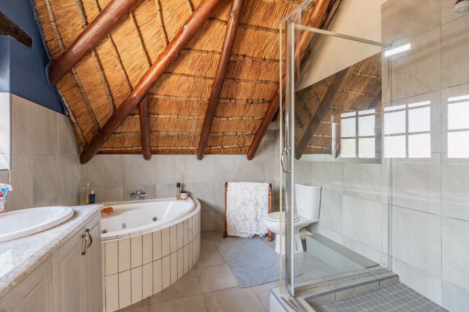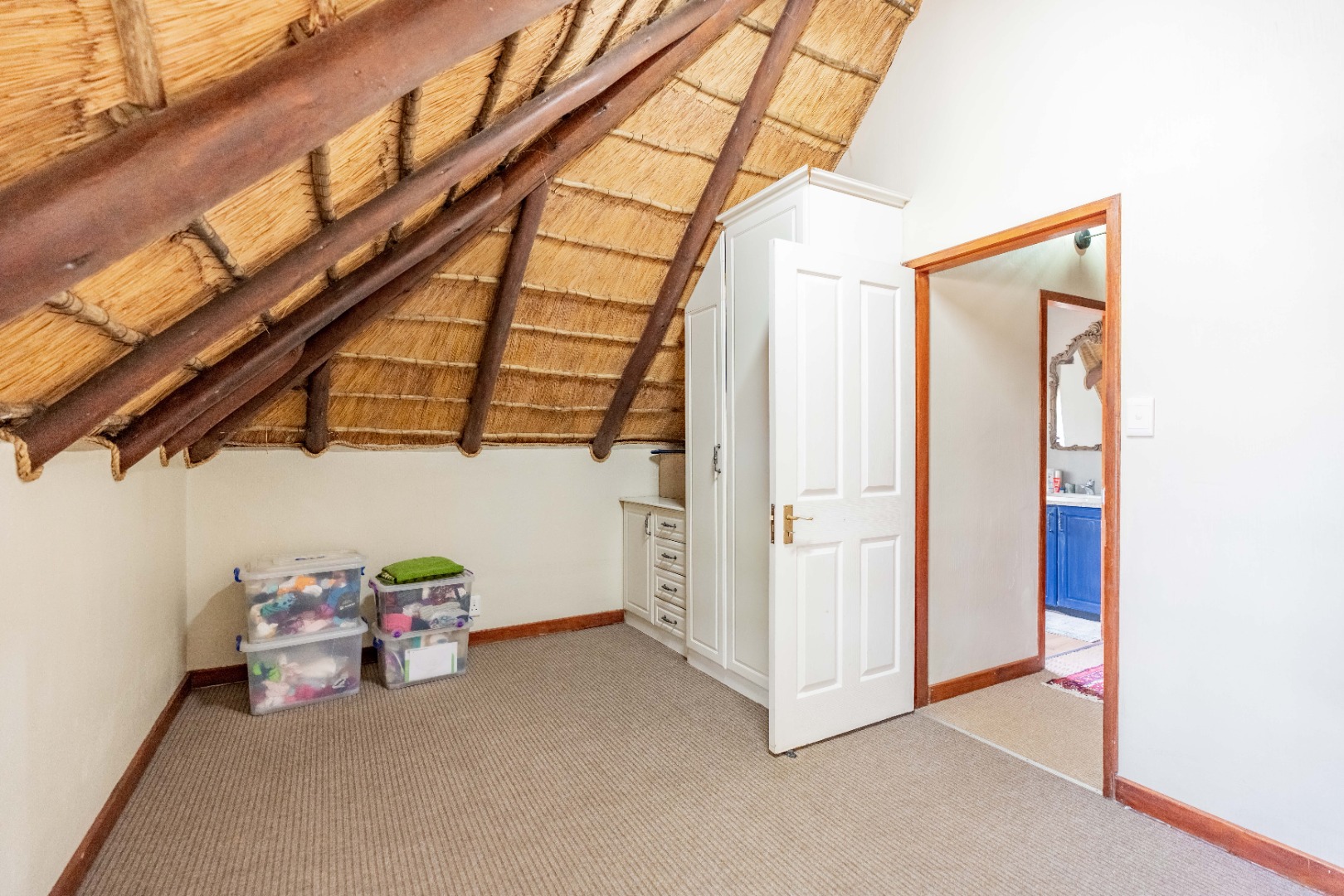 A centrally located fireplace warms both the lounge and dining room, creating a cozy atmosphere throughout the ground level on chilly winter nights. The spacious lounge opens onto a beautifully maintained garden with a small lapa, swimming pool, and fire pit - perfect for entertaining or for children to enjoy outdoor play.