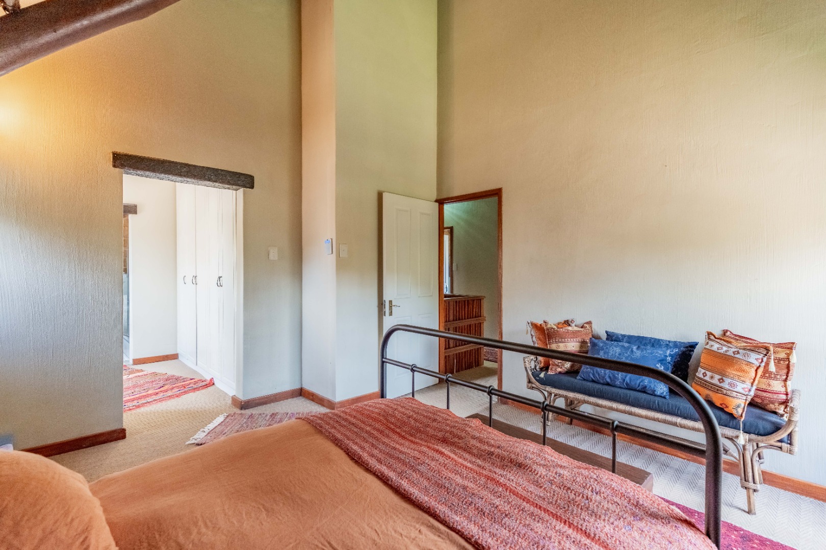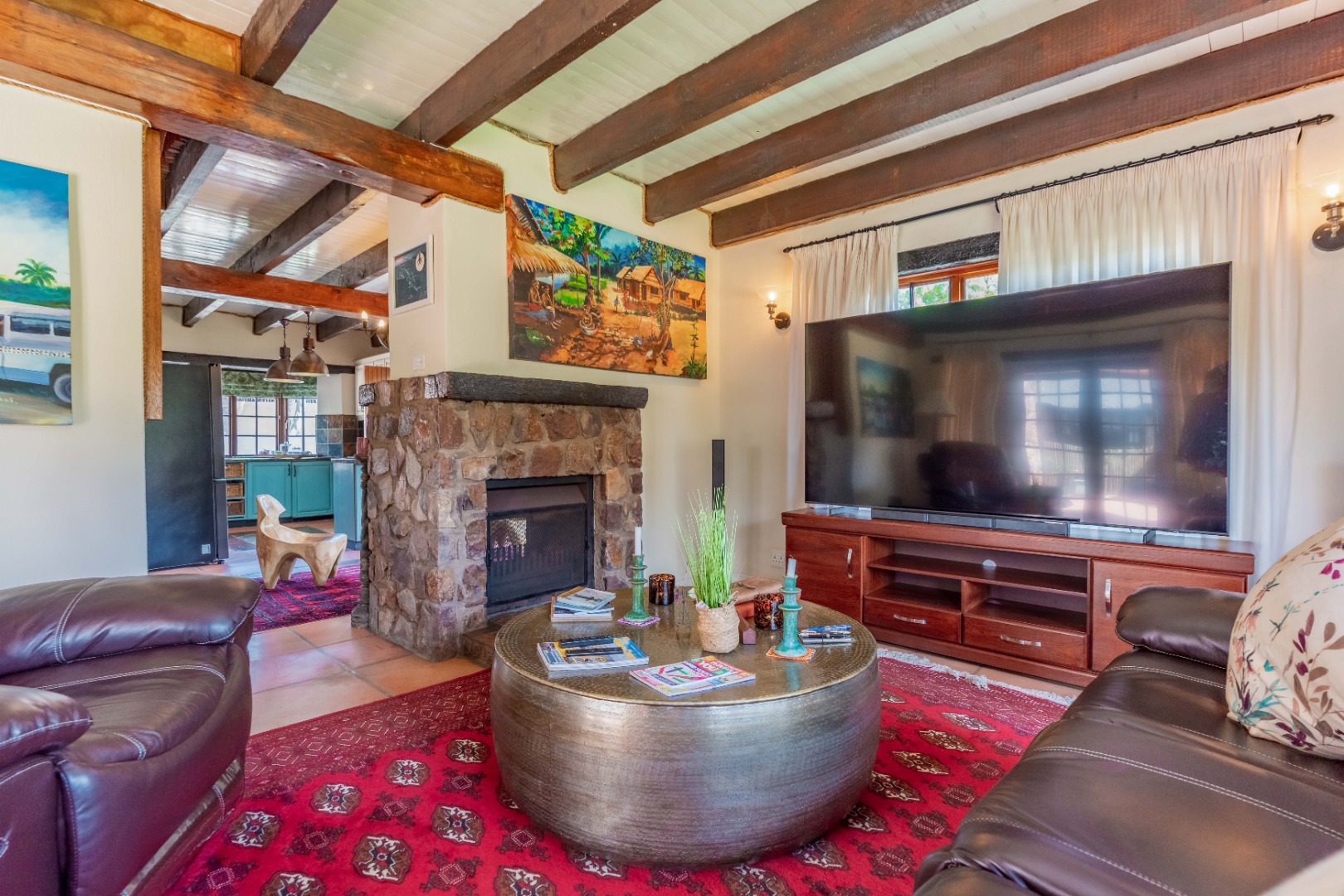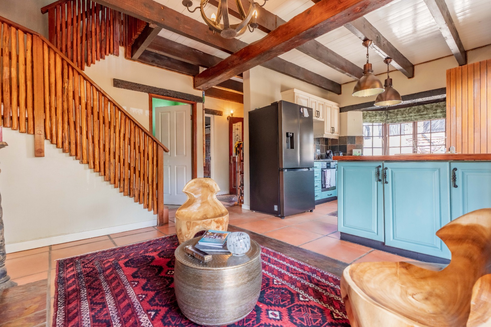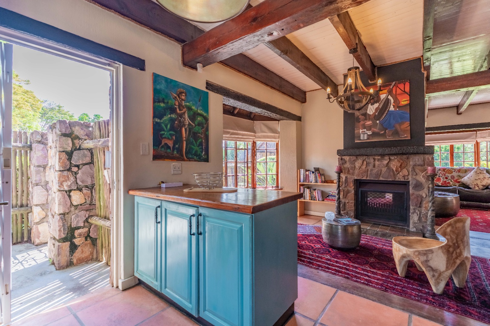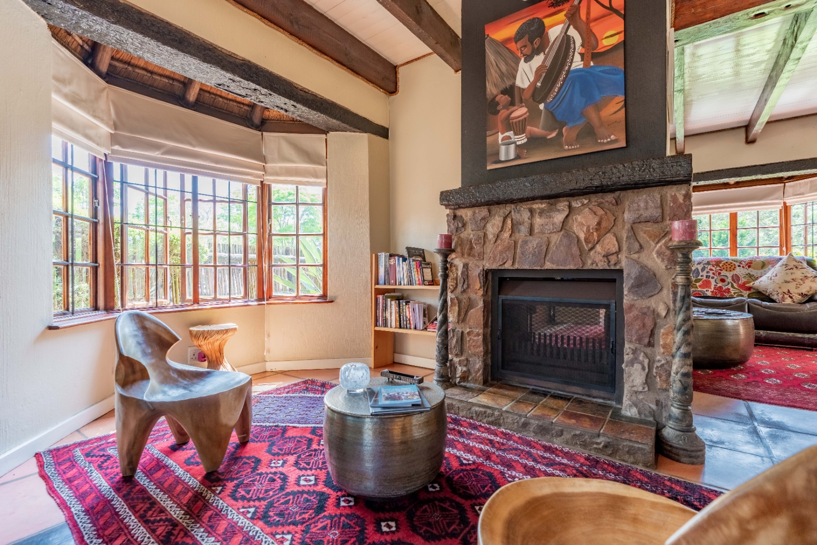 A centrally located fireplace warms both the lounge and dining room, creating a cozy atmosphere throughout the ground level on chilly winter nights. The spacious lounge opens onto a beautifully maintained garden with a small lapa, swimming pool, and fire pit - perfect for entertaining or for children to enjoy outdoor play.