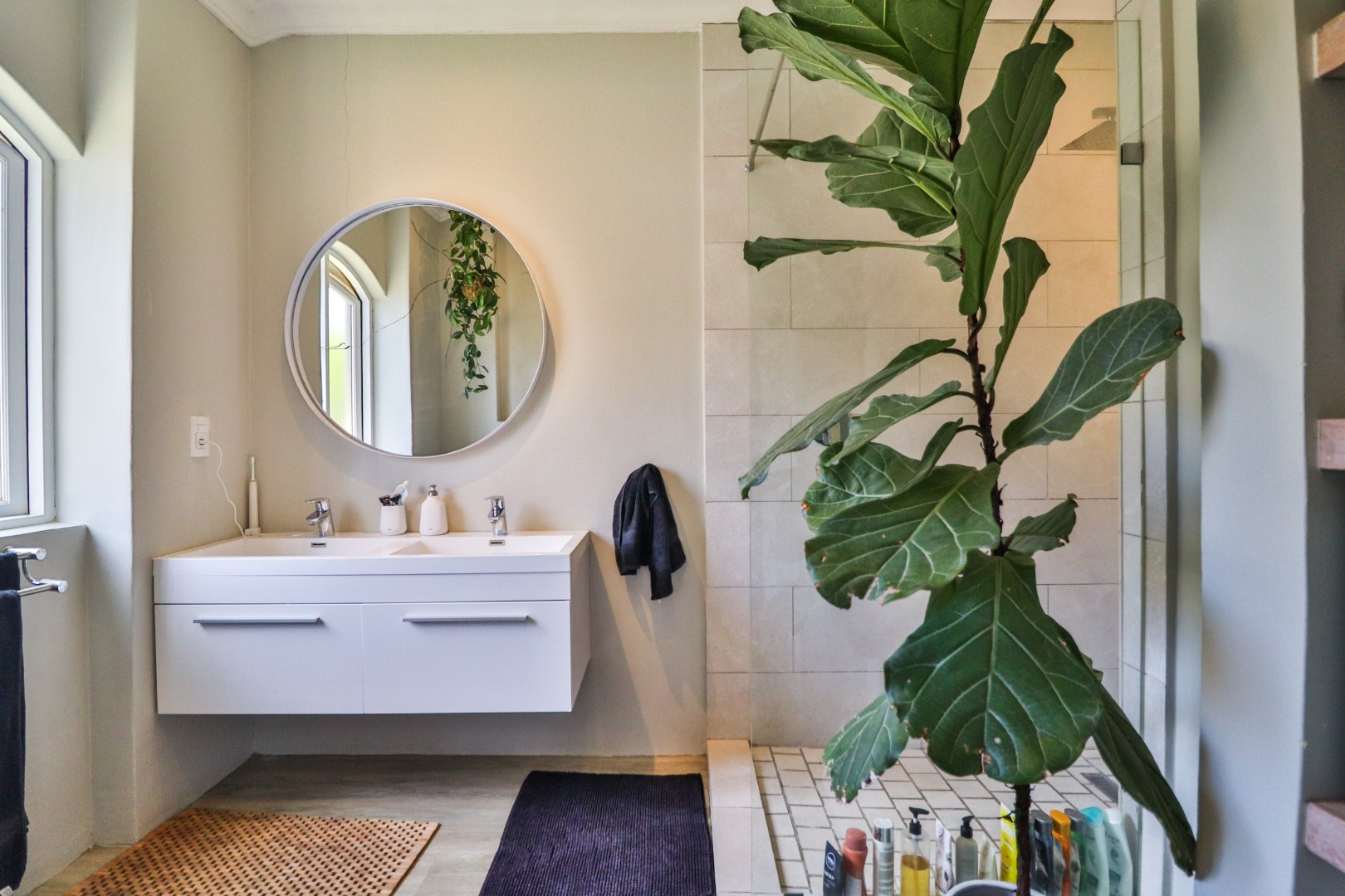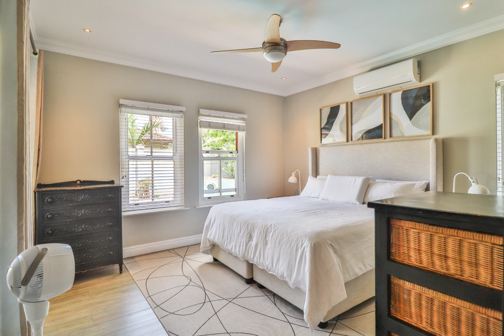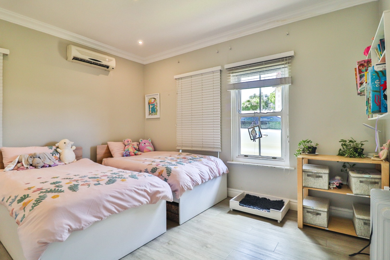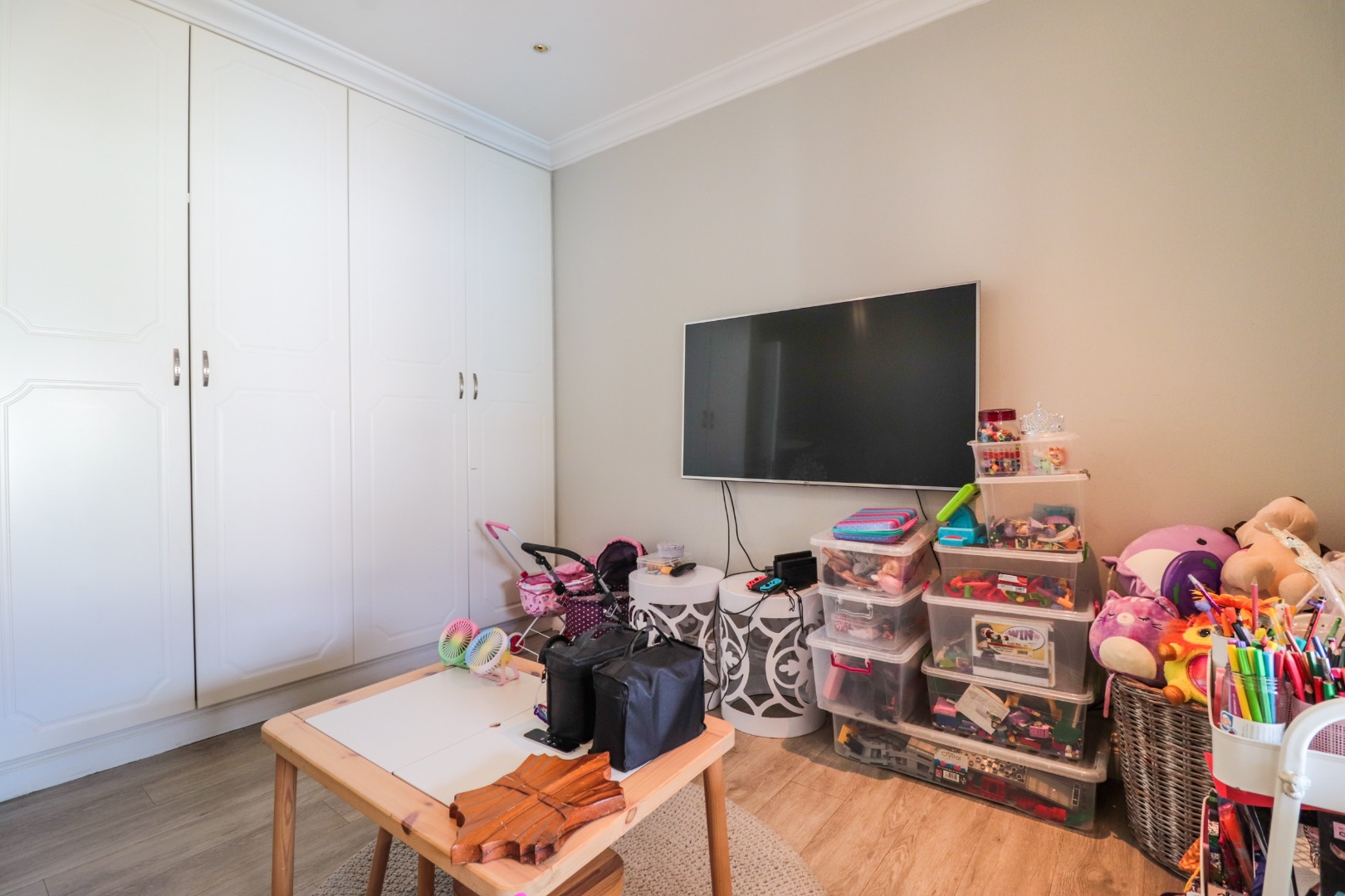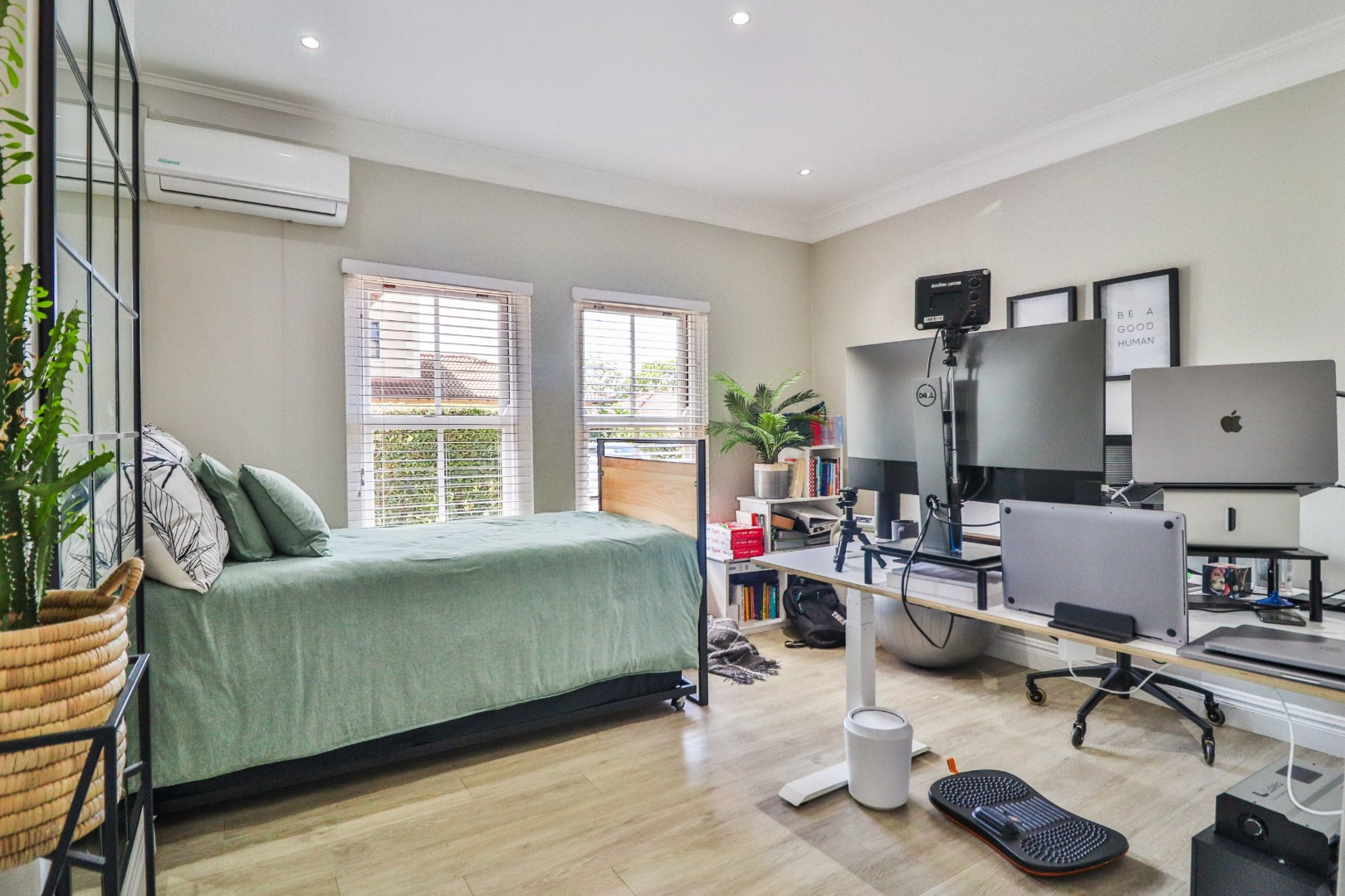 The open-plan living spaces extend to a covered patio with built-in braai overlooking the sparkling pool — perfect for year-round entertaining. A cosy lounge with a feature fireplace makes for warm family evenings, while the master suite enjoys direct access to the patio for quiet relaxation.