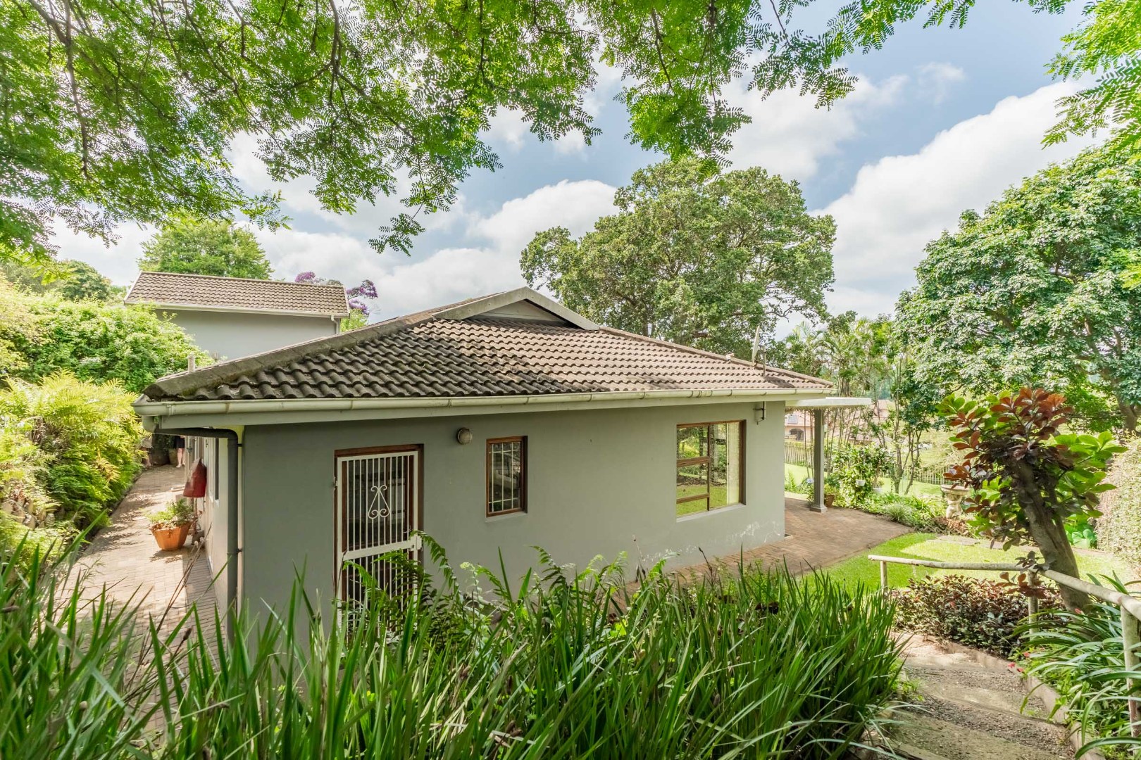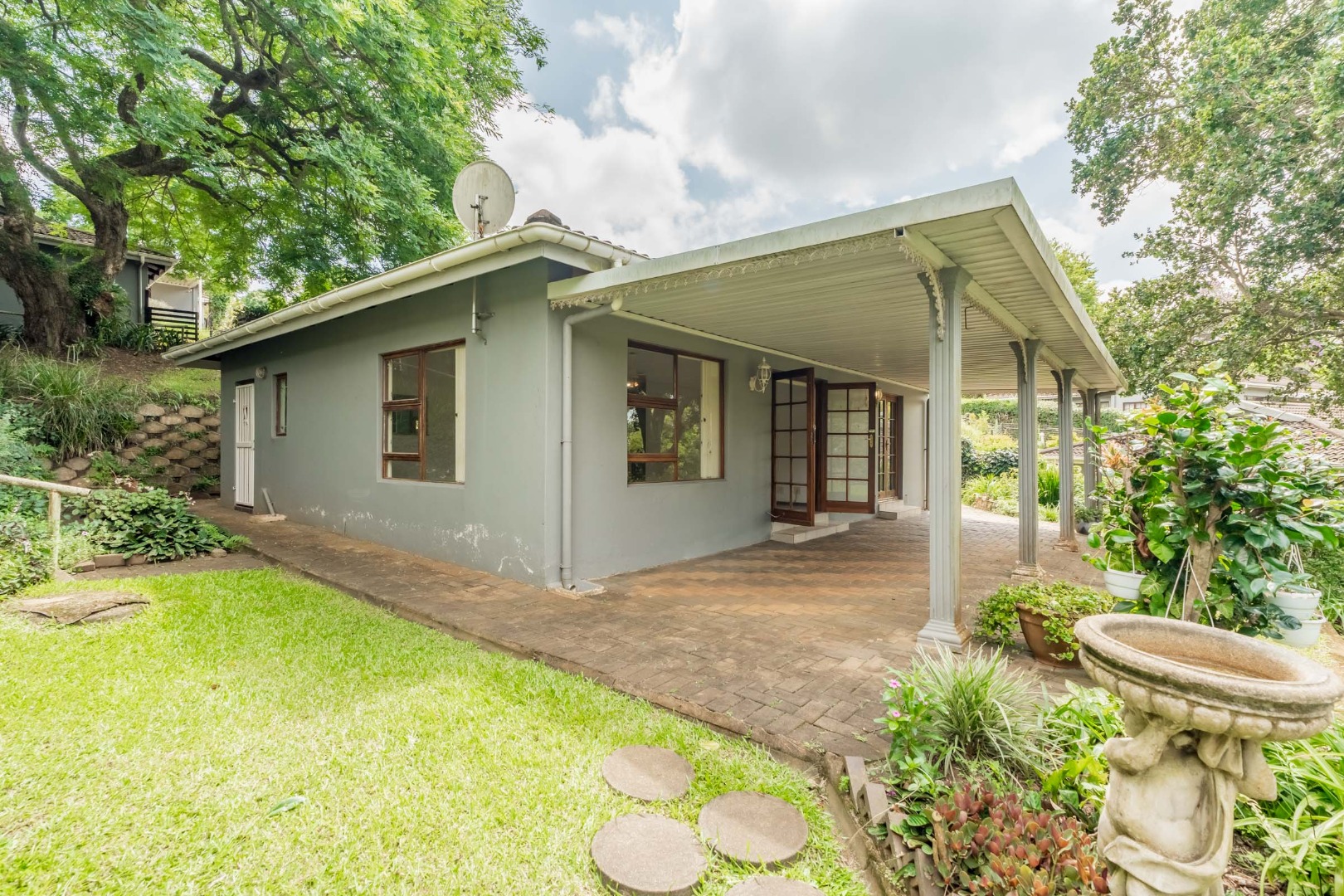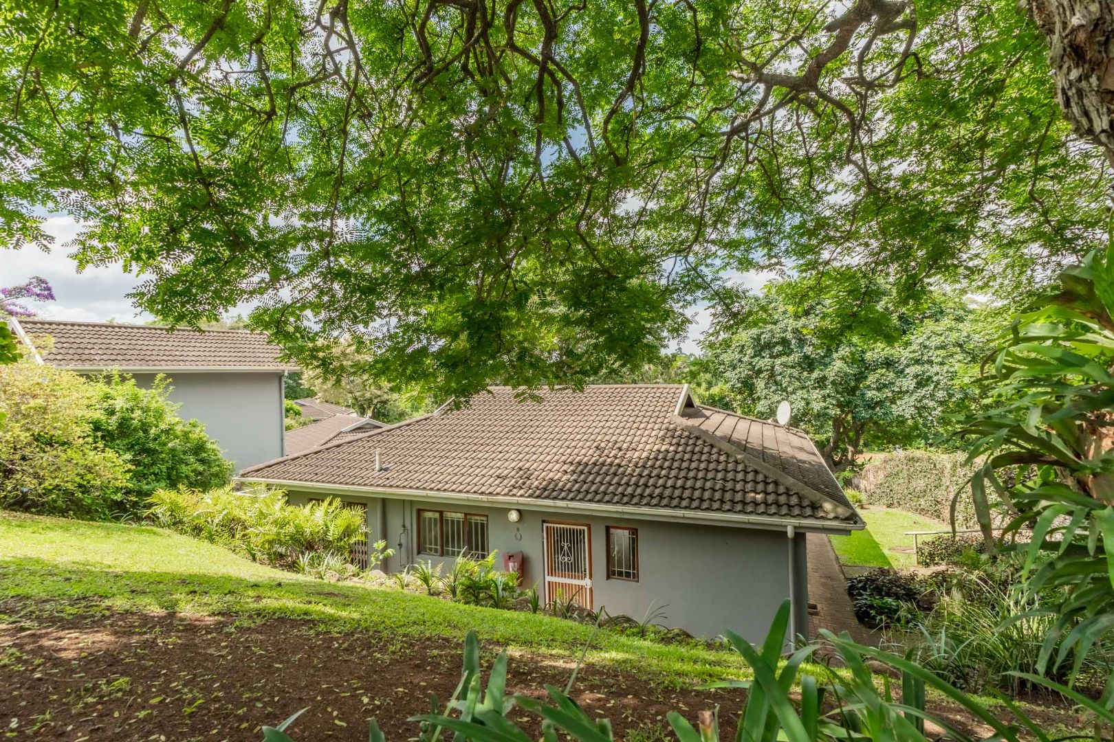 This 2 bedroom unit overlooks the communal pool and communal gardens but has it's own pet-friendly garden.