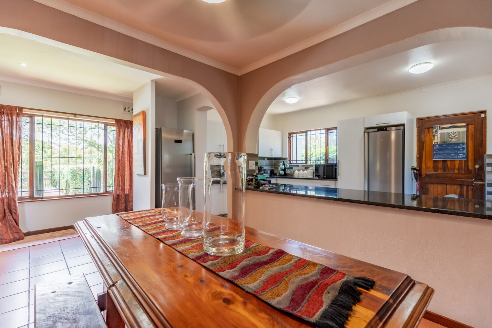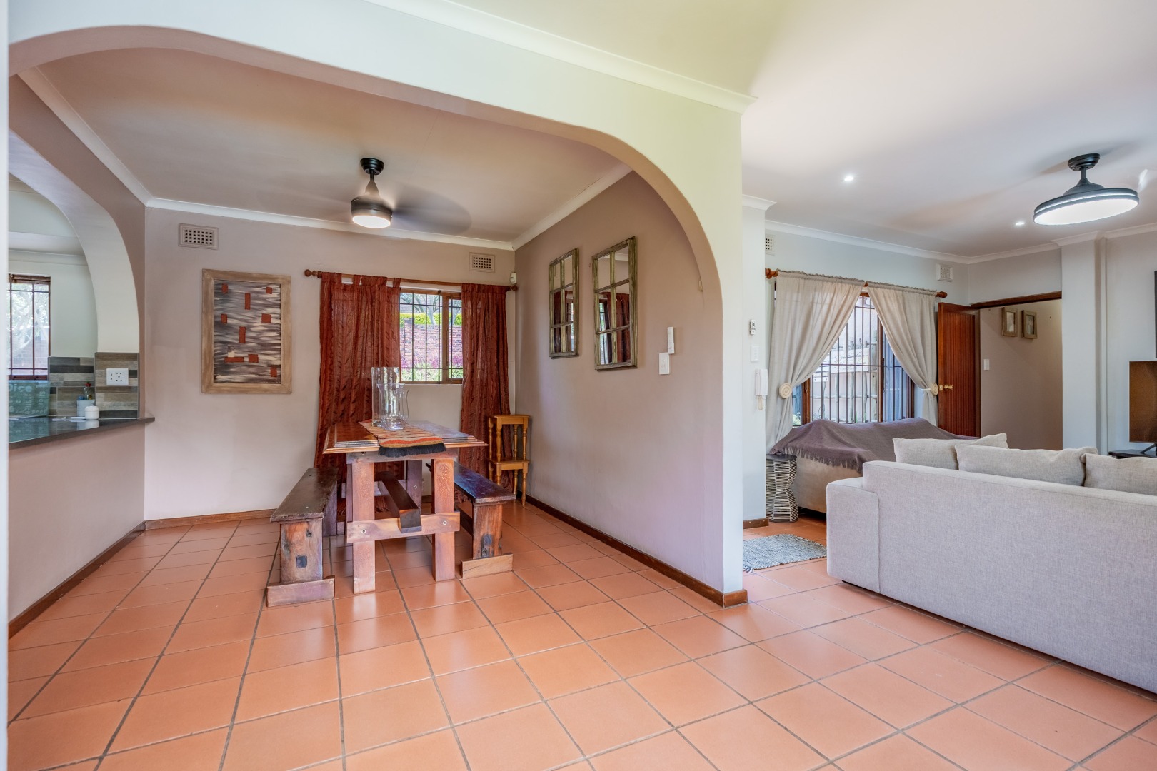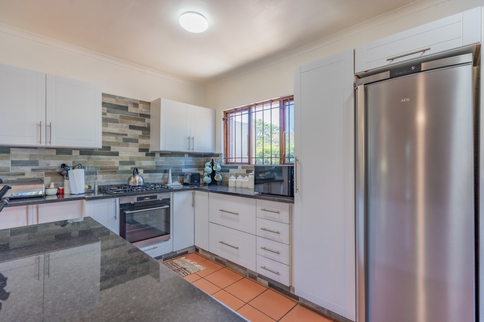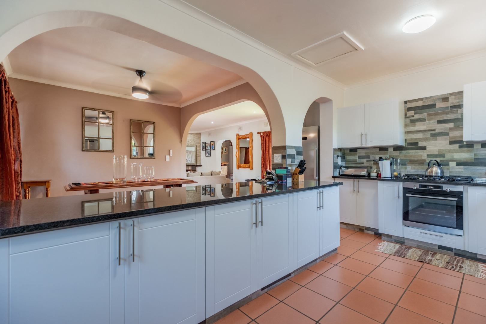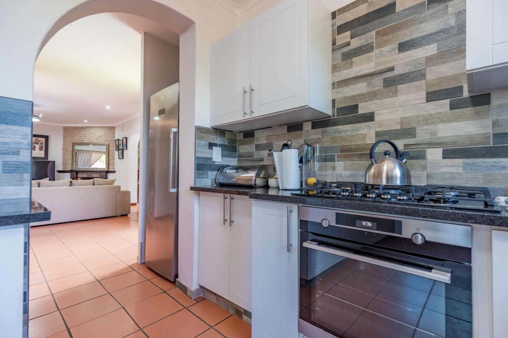Flowing from the lounge is a well-designed open-plan dining area, which connects seamlessly to a modern granite-topped kitchen fitted with a gas stove, making the space both practical and ideal for entertaining.