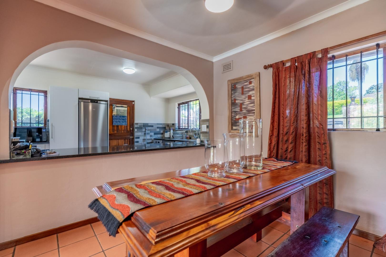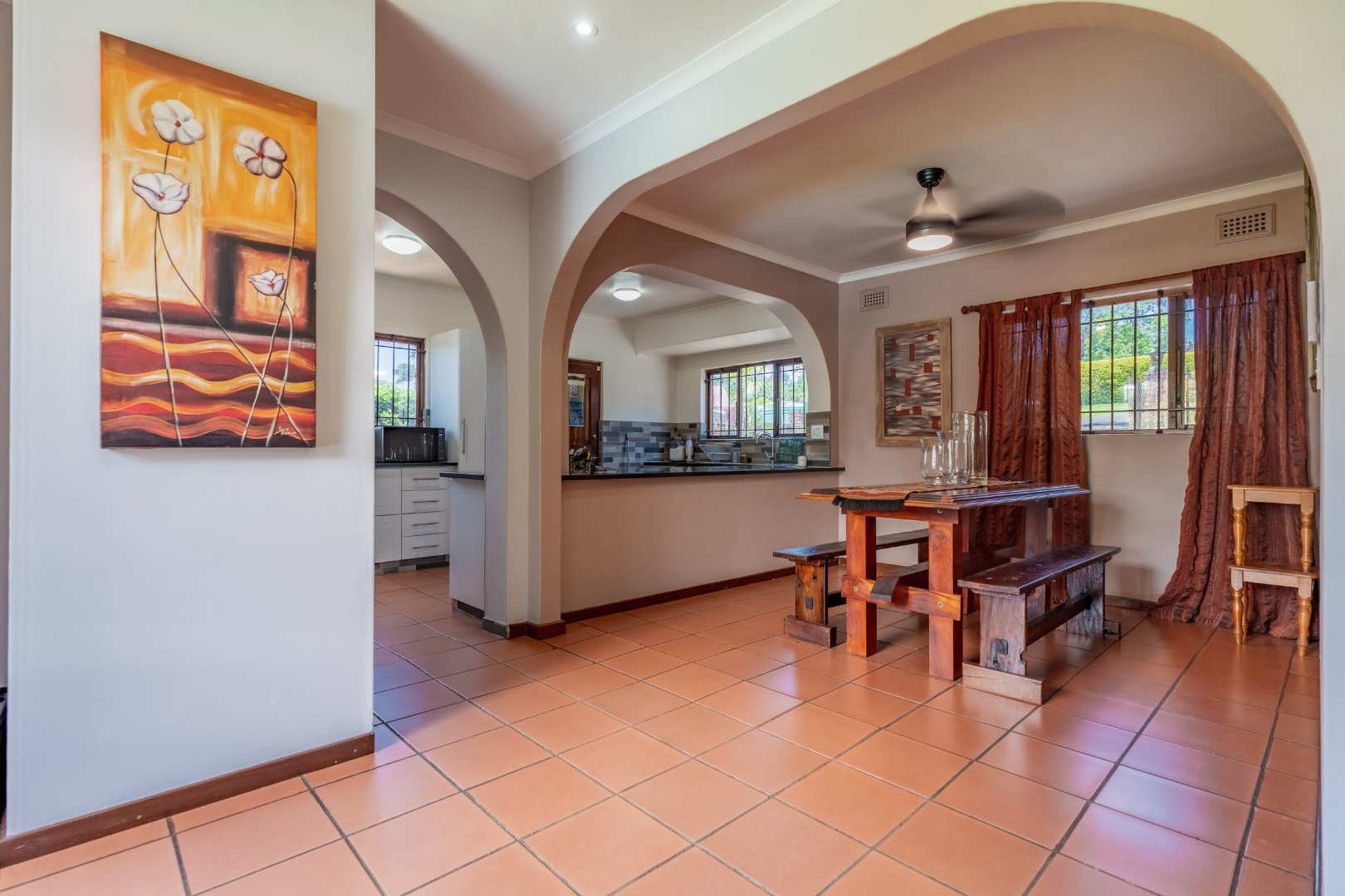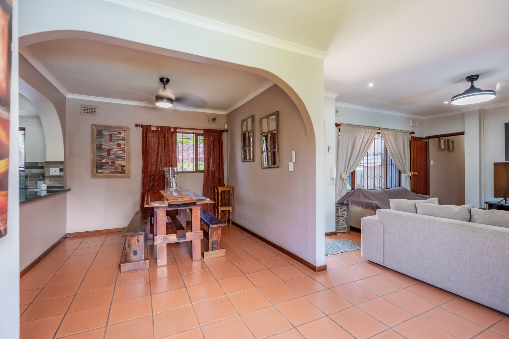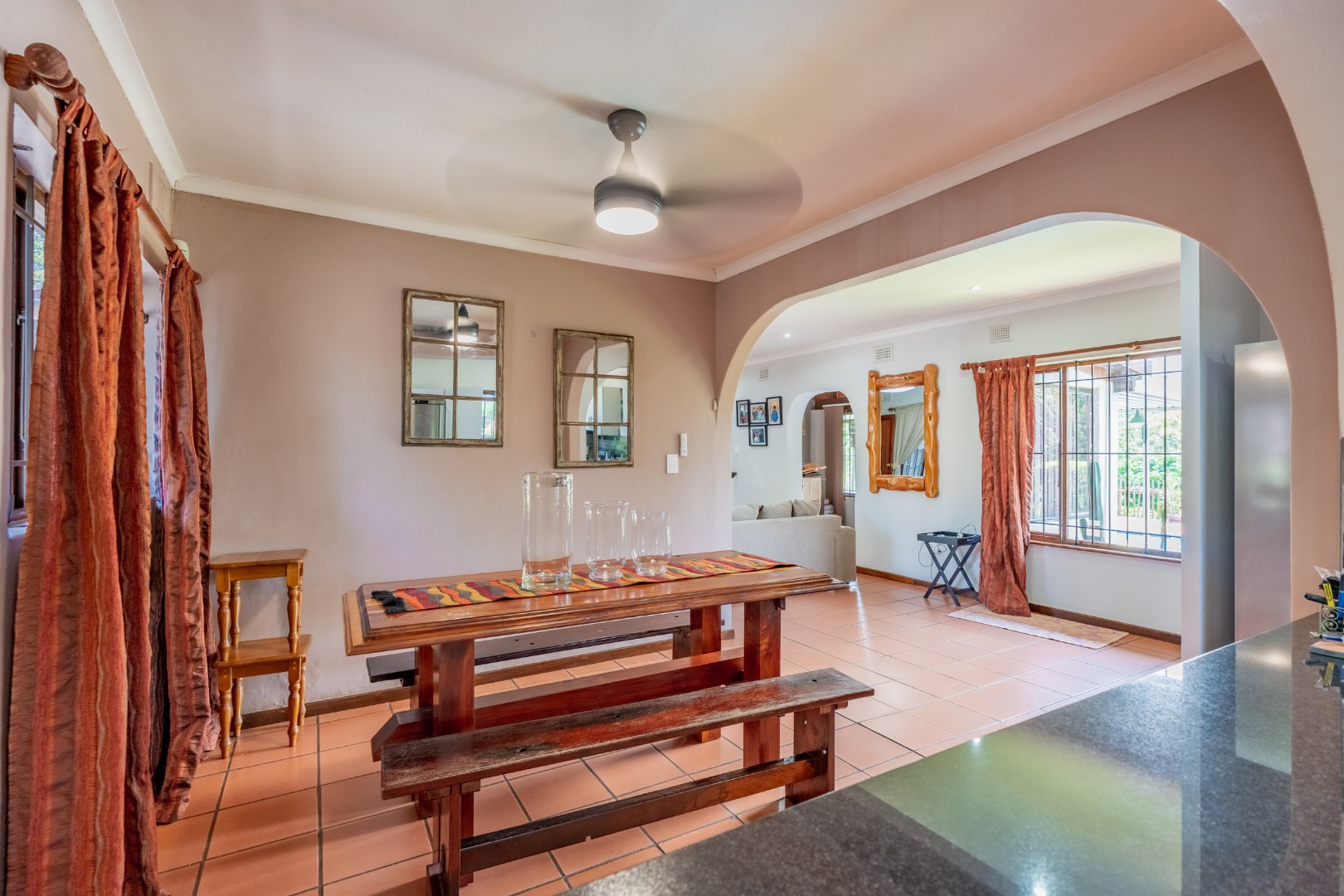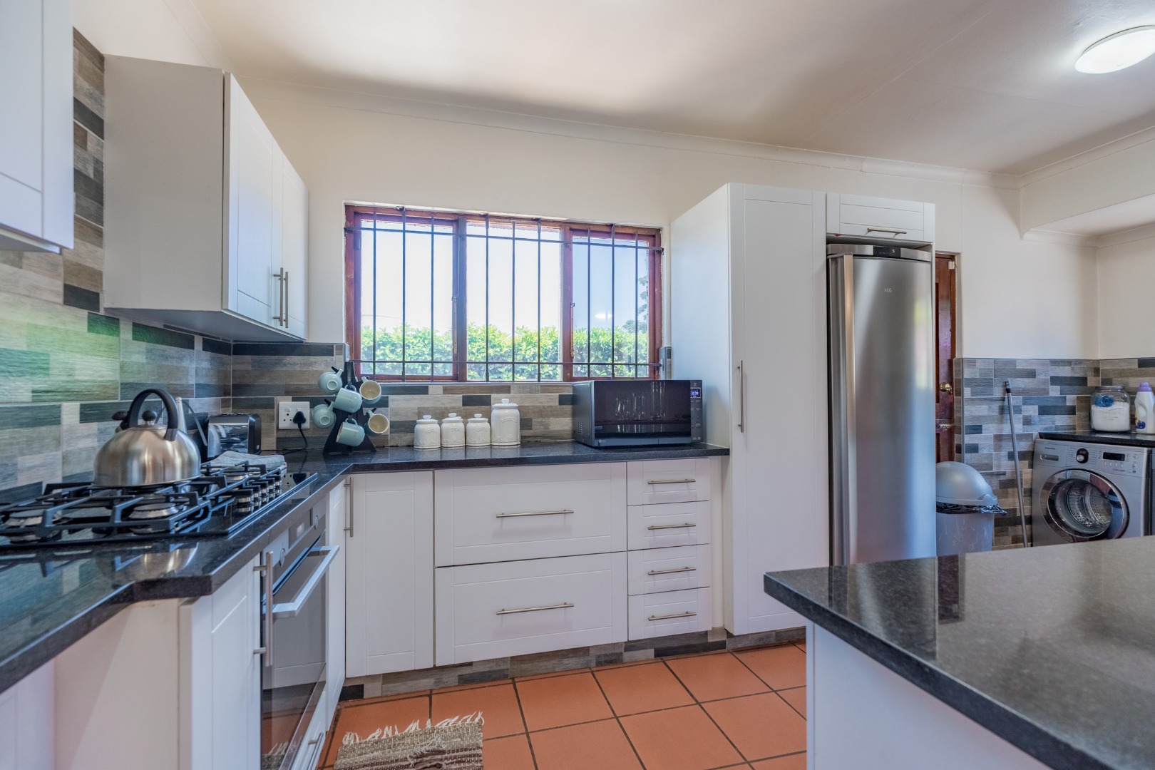 Flowing from the lounge is a well-designed open-plan dining area, which connects seamlessly to a modern granite-topped kitchen fitted with a gas stove, making the space both practical and ideal for entertaining.