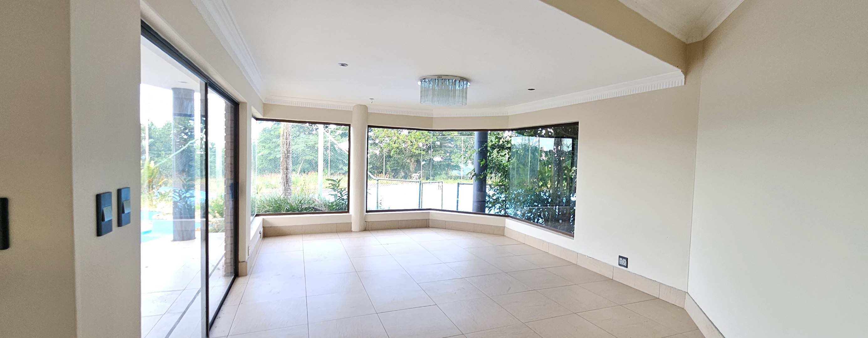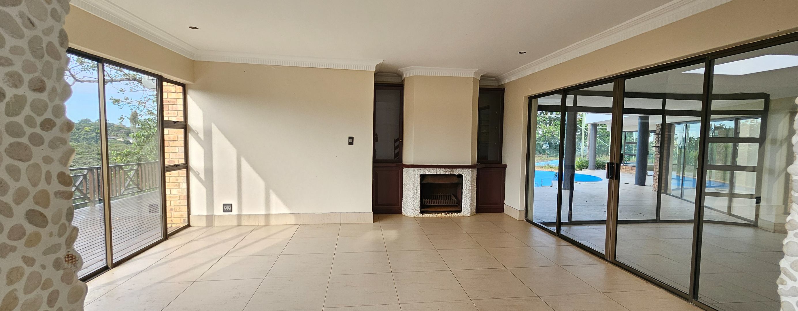 Nestled within the esteemed enclave of Everton H C, Kloof, this magnificent residential offering presents an extraordinary opportunity for discerning homeowners. Spanning an expansive 8000 square metres of meticulously landscaped grounds, this property commands attention with its impressive 555 square metre floor plan, promising a lifestyle of unparalleled luxury and serene privacy. A grand entrance and sweeping driveway set a distinguished tone. Inside, discover refined comfort with two sophisticated lounges, an inviting family TV room, and two impeccably appointed kitchens. An open-plan design with elegant sliding doors seamlessly connects interior spaces, bathing them in natural light. Modern comforts include air conditioning, a charming fireplace, and high-speed fibre connectivity.