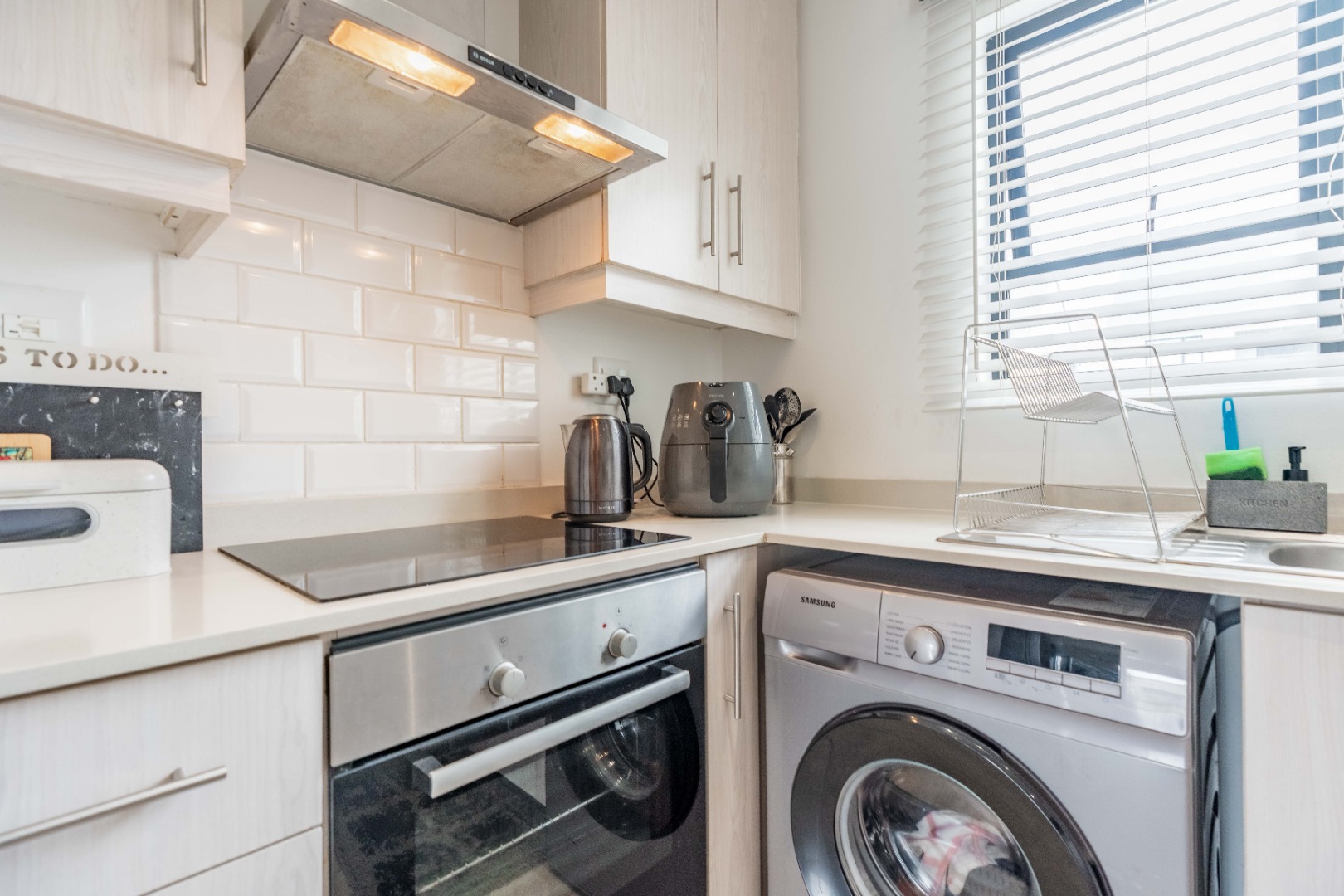Step into a bright and inviting first-floor apartment designed with comfort and contemporary living in mind. The open-plan lounge flows effortlessly into a sleek, modern kitchen fitted with a built-in