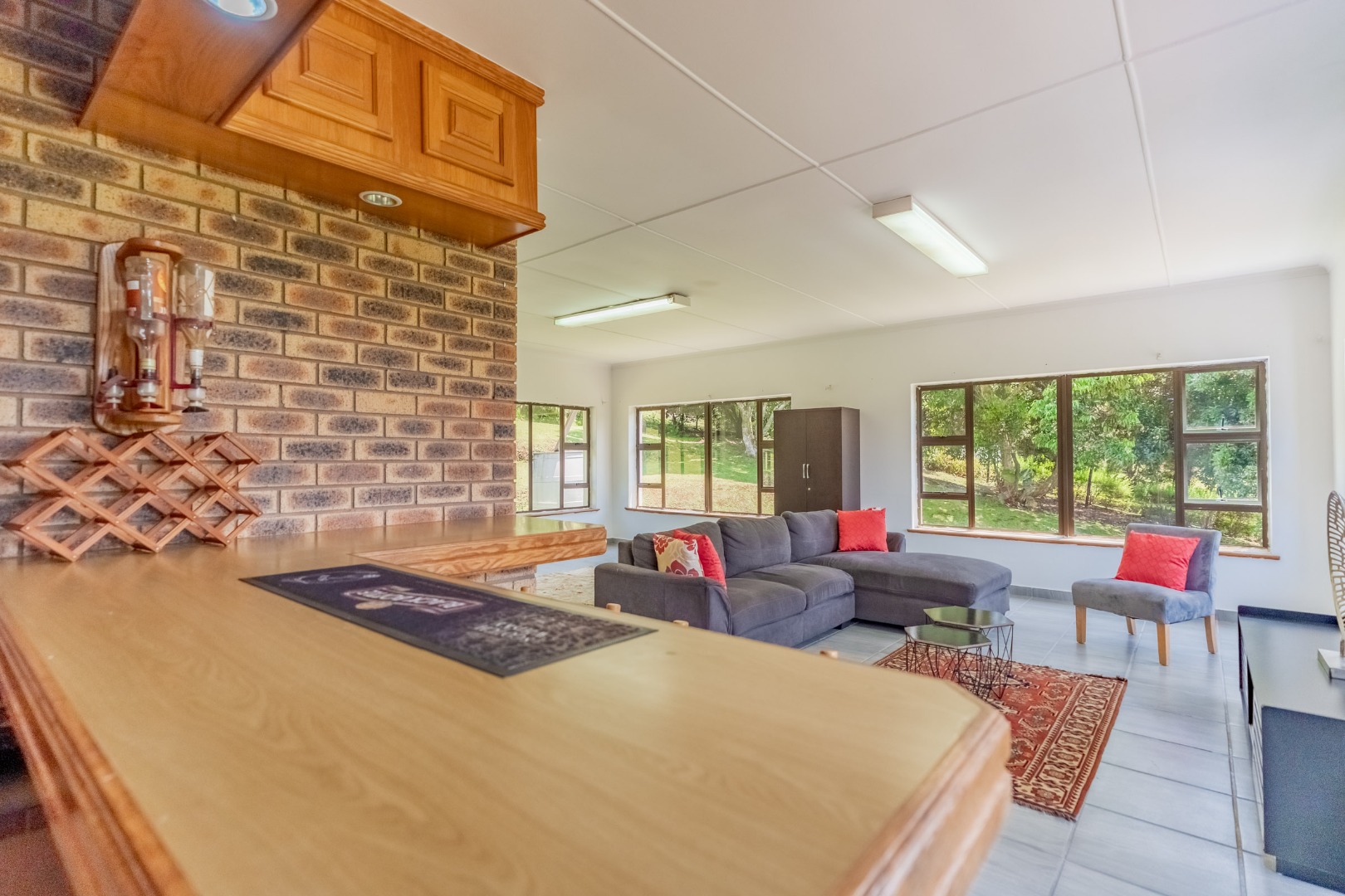 As you step into this stunning ultra-modern home, you are welcomed by two spacious lounges, one of which features a cosy fireplace, creating the perfect setting for relaxed family living.