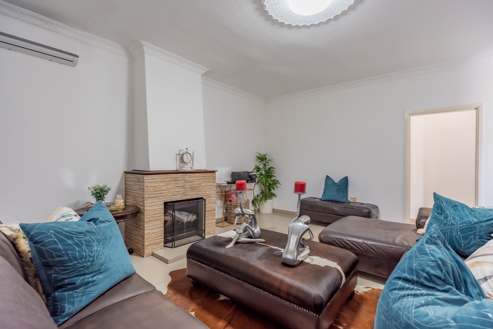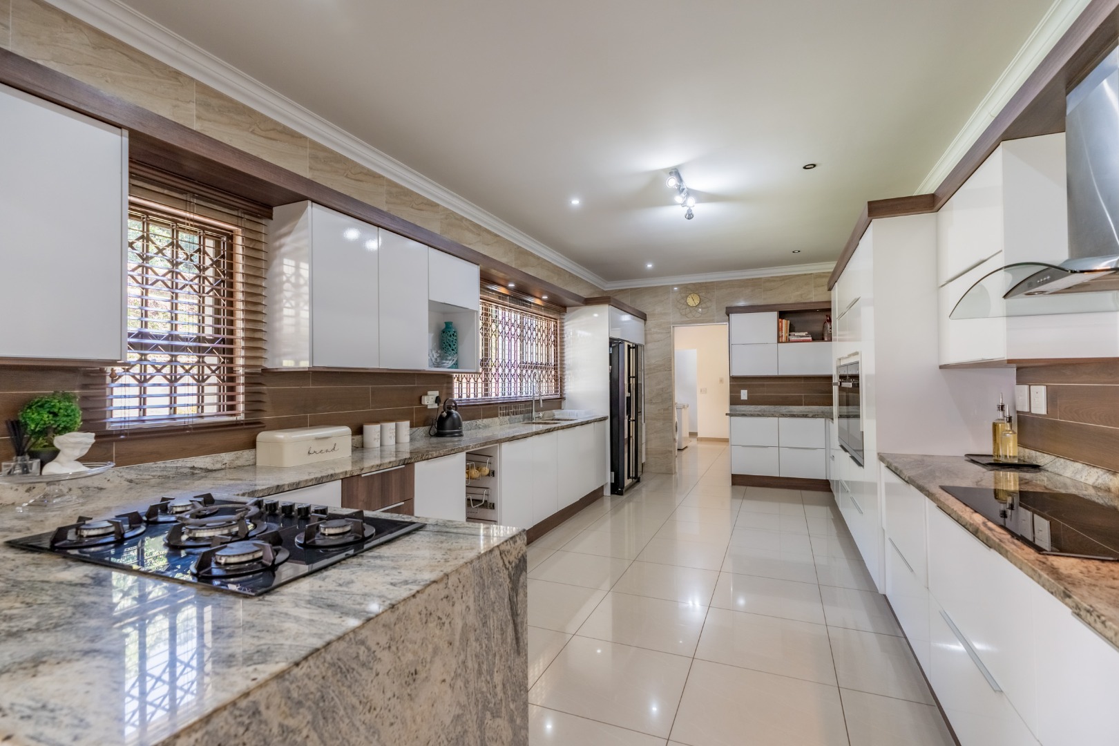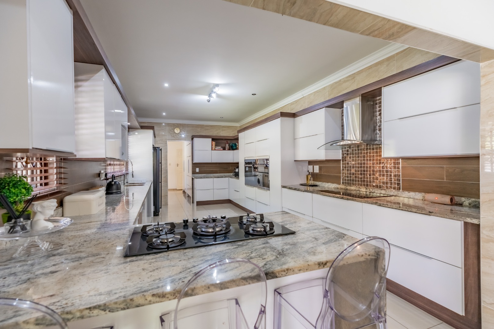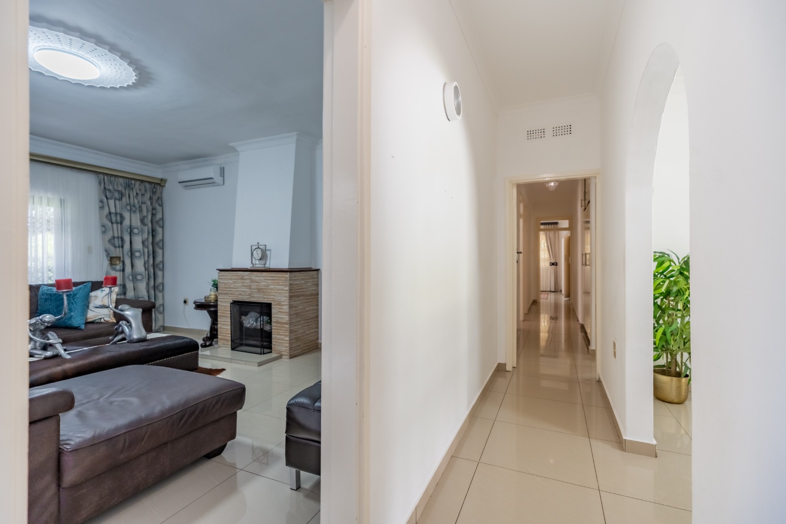 As you step into this stunning ultra-modern home, you are welcomed by two spacious lounges, one of which features a cosy fireplace, creating the perfect setting for relaxed family living.